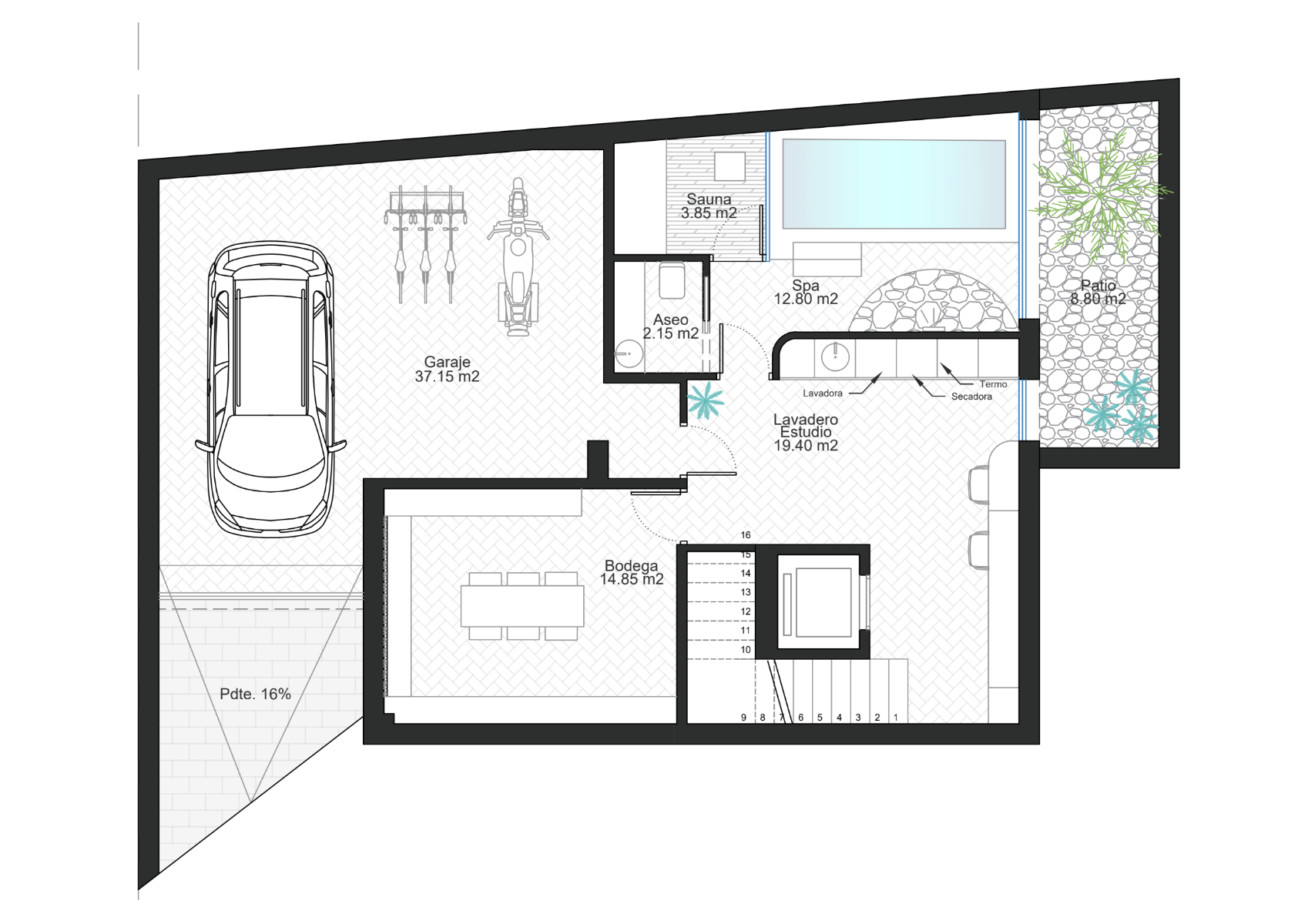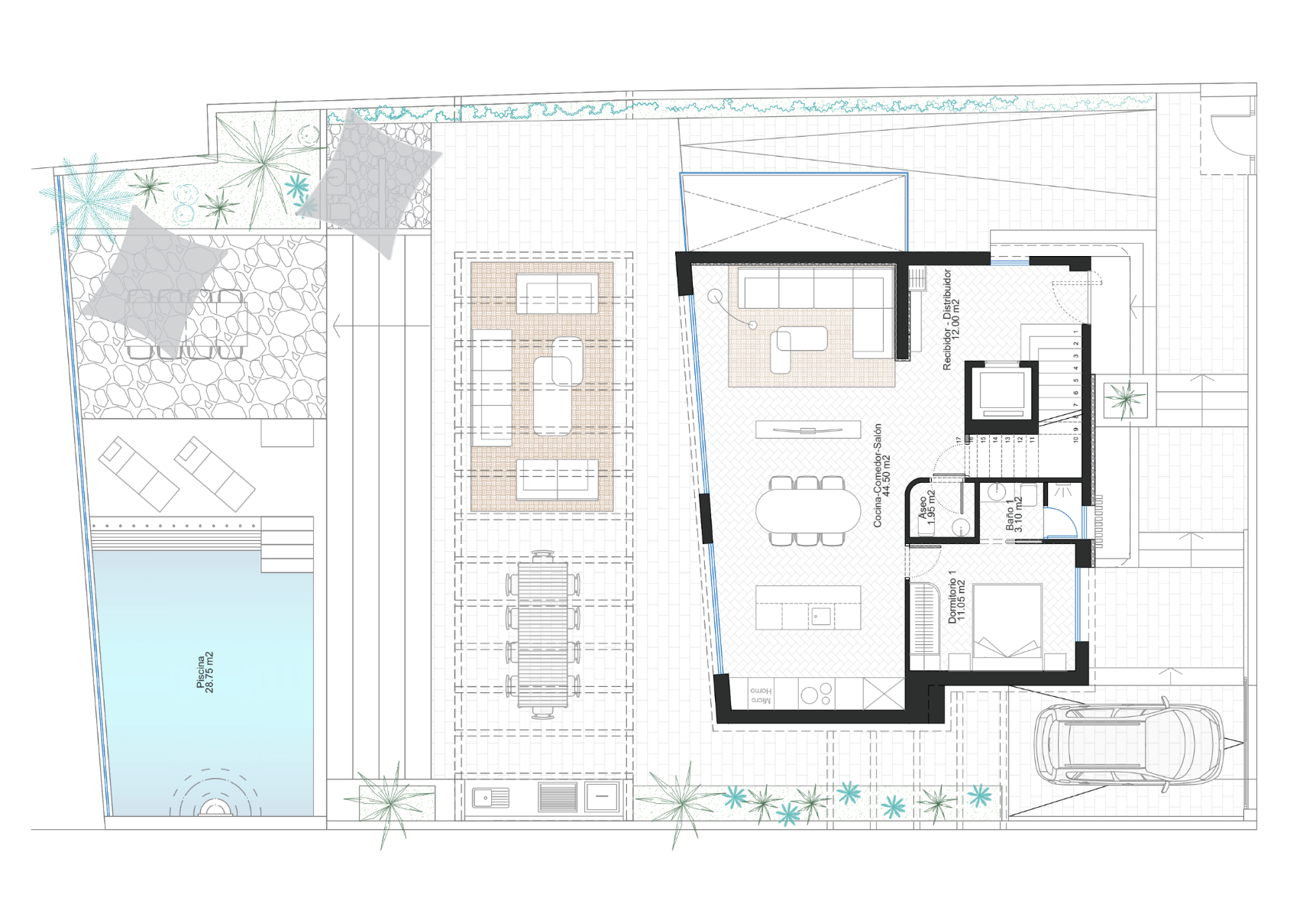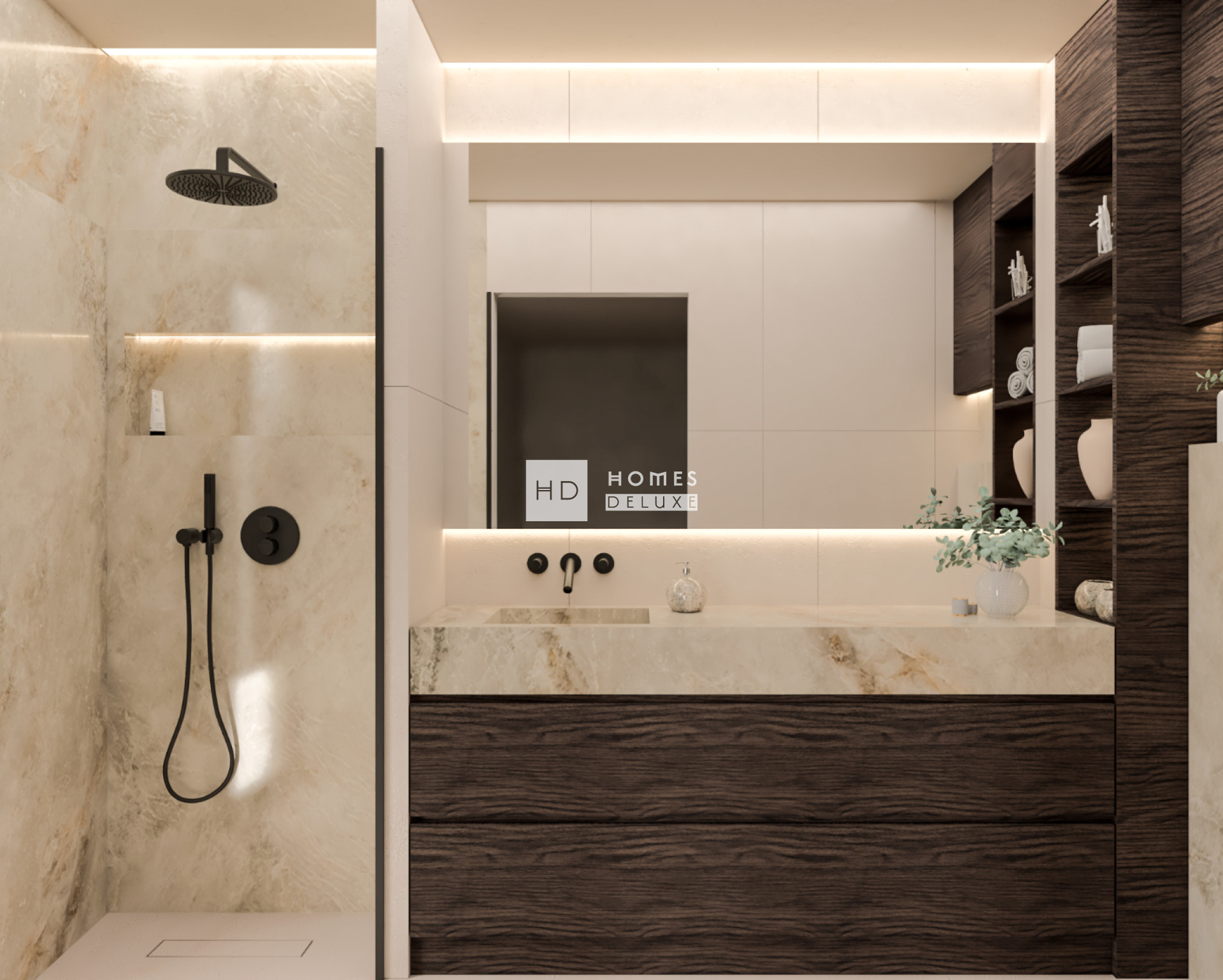 Elke villa is een meesterwerk van modern design en biedt een naadloze overgang tussen luxe binnen en ontspanning buiten. De woning heeft een totale bebouwde oppervlakte van 280 m² en is zuidoostelijk georiënteerd, waardoor het interieur baadt in natuurlijk licht. Hoewel de woning drie ruime slaapkamers heeft, is er een veelzijdige mogelijkheid om een vierde slaapkamer te creëren in de enorme kelder van 120 m². Dit ondergrondse niveau, dat al is voorzien van een complete badkamer, dient als een leeg canvas voor een privé-spa, wijnkelder, bioscoopzaal, fitnessruimte of een grote entertainmentlounge.