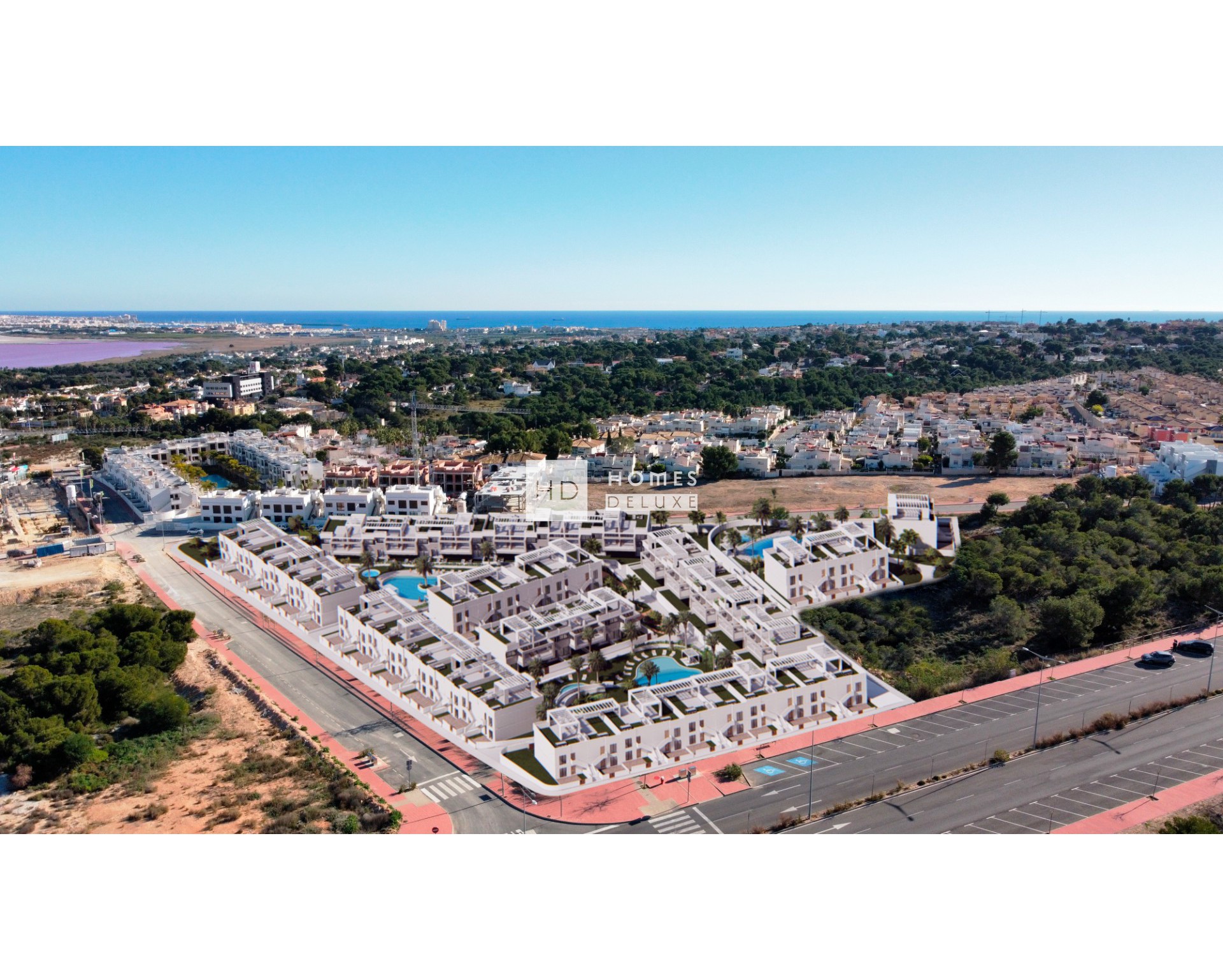 De woningen worden geleverd inclusief pre-installatie voor airconditioning via leidingen, ingebouwde kasten in alle slaapkamers, elektrische rolluiken, LED-buitenverlichting en video-intercom.