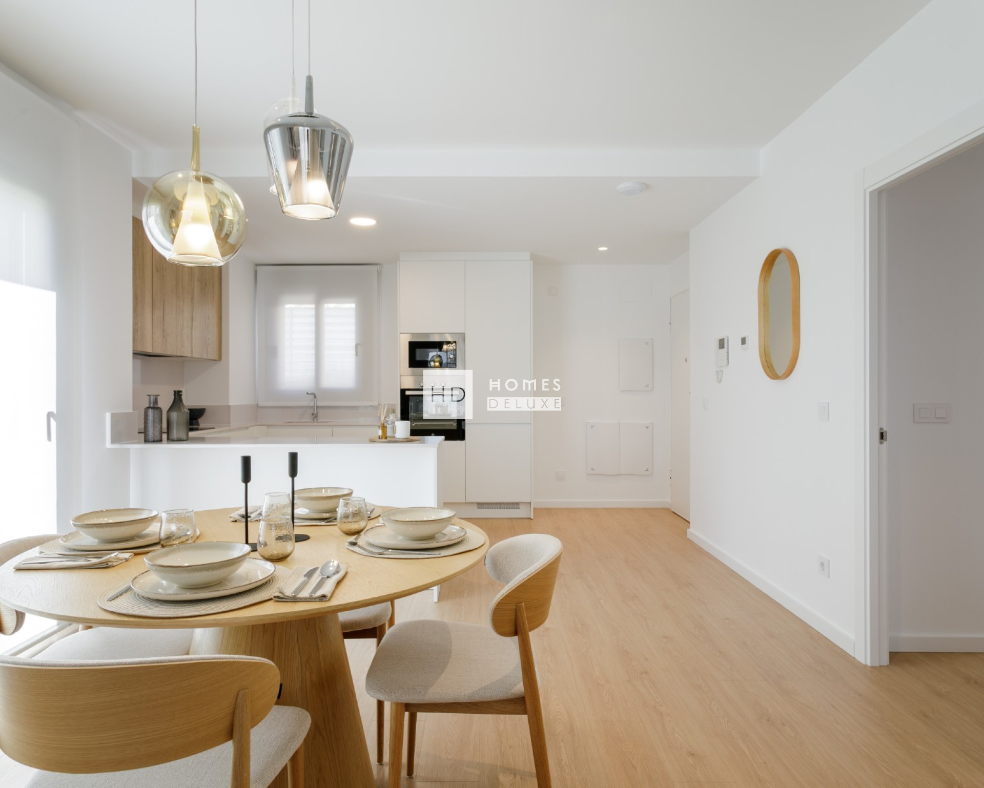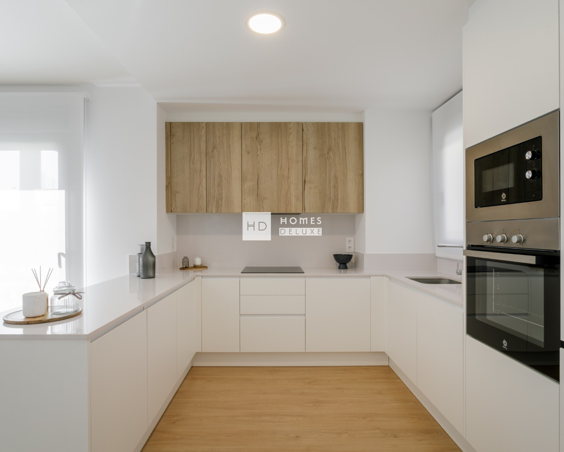 Het interieur bestaat uit een open lounge en eetkamer met openslaande deuren naar het privé terras, moderne Amerikaanse keuken met de keuze uit verschillende kleuren voor het keukenmeubilair en aanrecht, hoofdslaapkamer met en-suite badkamer, nog een tweepersoons slaapkamer en een aparte gastenbadkamer. Het privé terras heeft een opslagruimte voor de wasmachine en boiler. De appartementen zijn inclusief pre-installatie voor airconditioning, keukenapparatuur (oven, keramische kookplaat, afzuigkap, magnetron, koelkast met vriesvak, vaatwasser, wasmachine en droger), ingebouwde kasten in alle slaapkamers, elektrische rolluiken in de woonkamer en slaapkamers, en een toegewezen parkeerplaats.