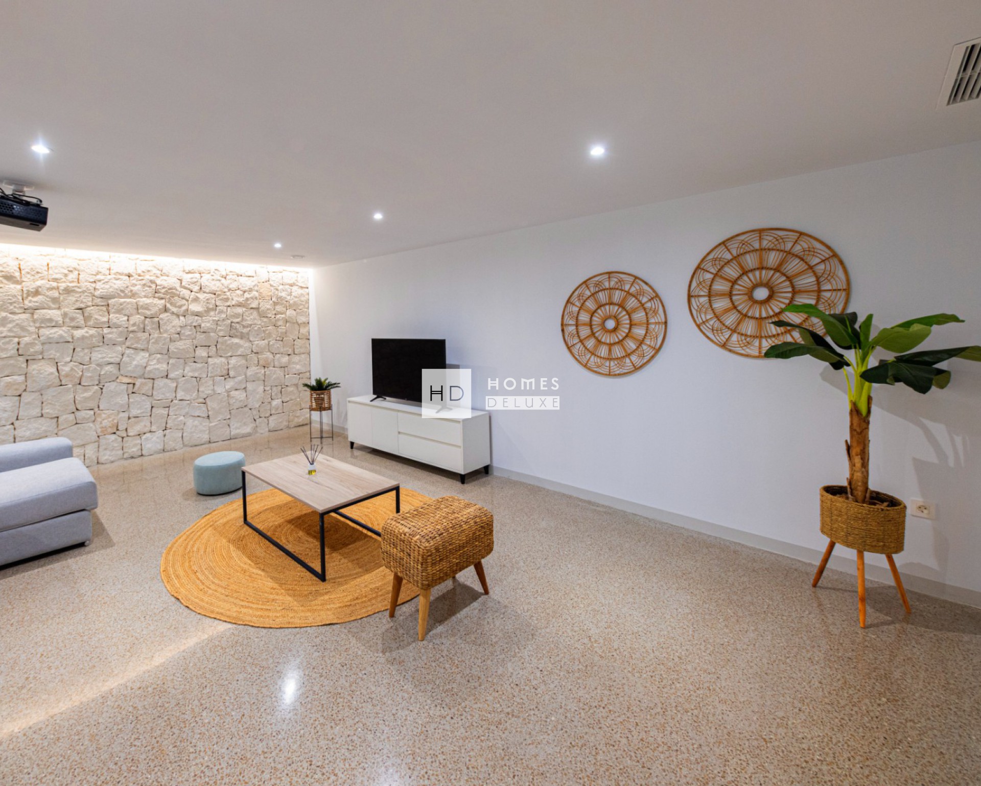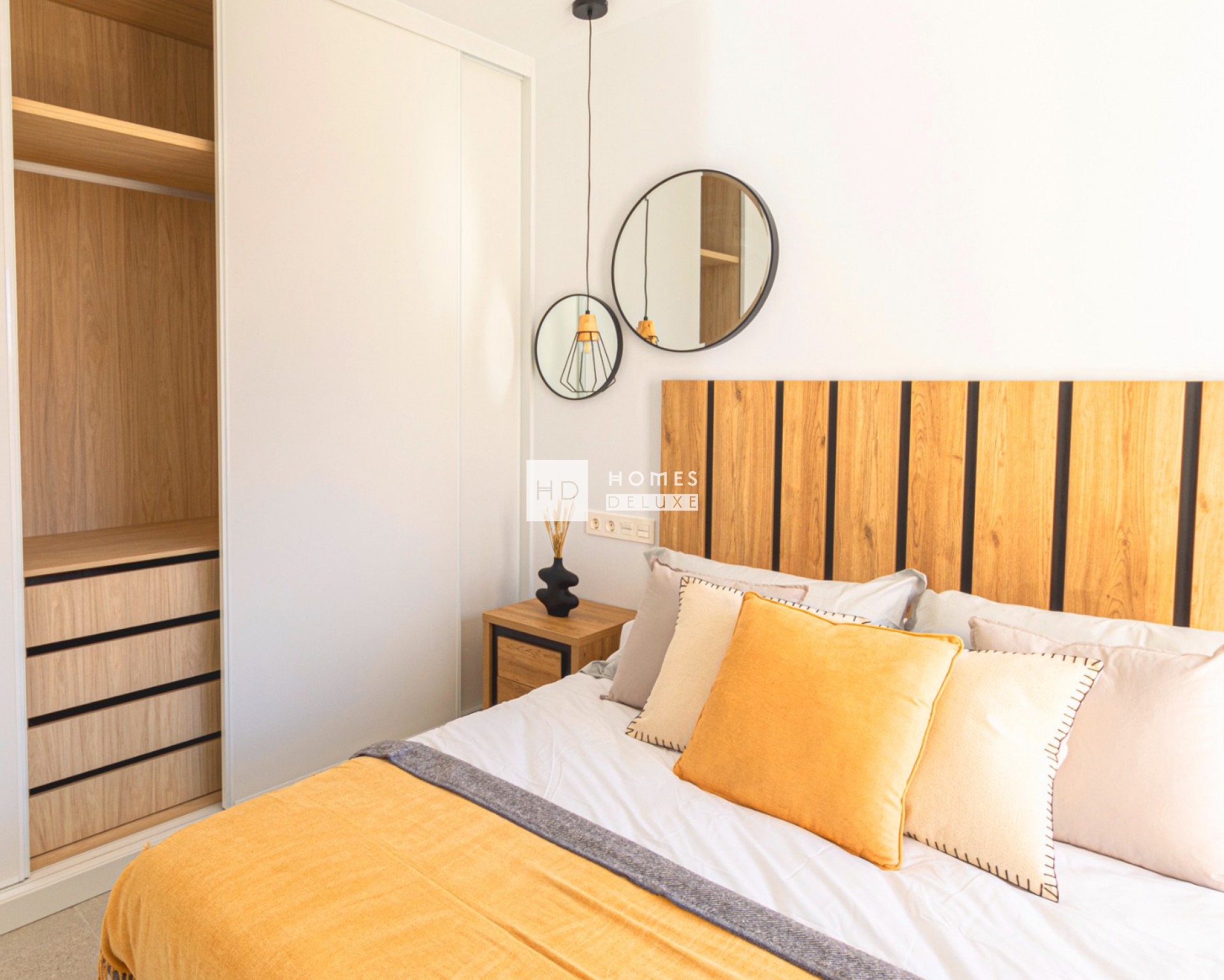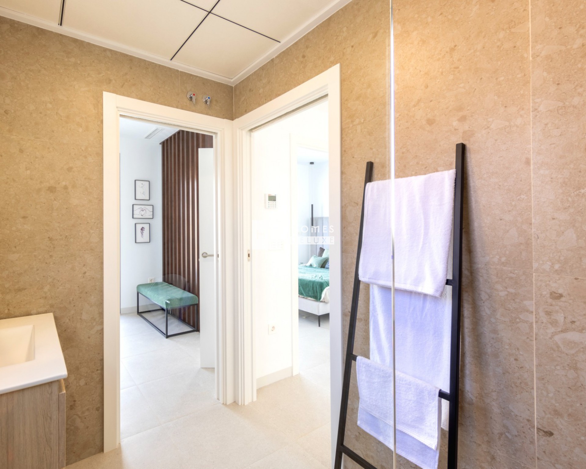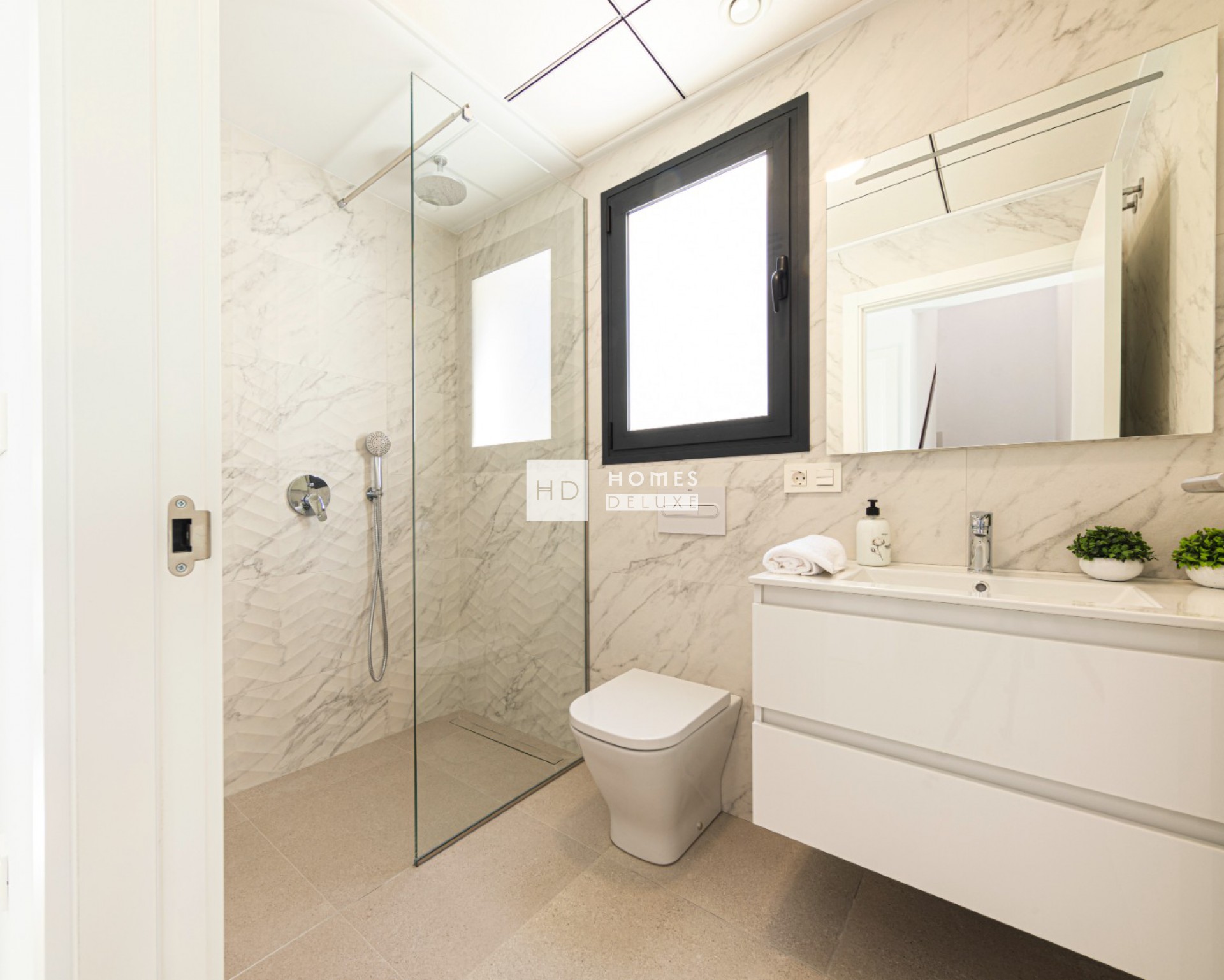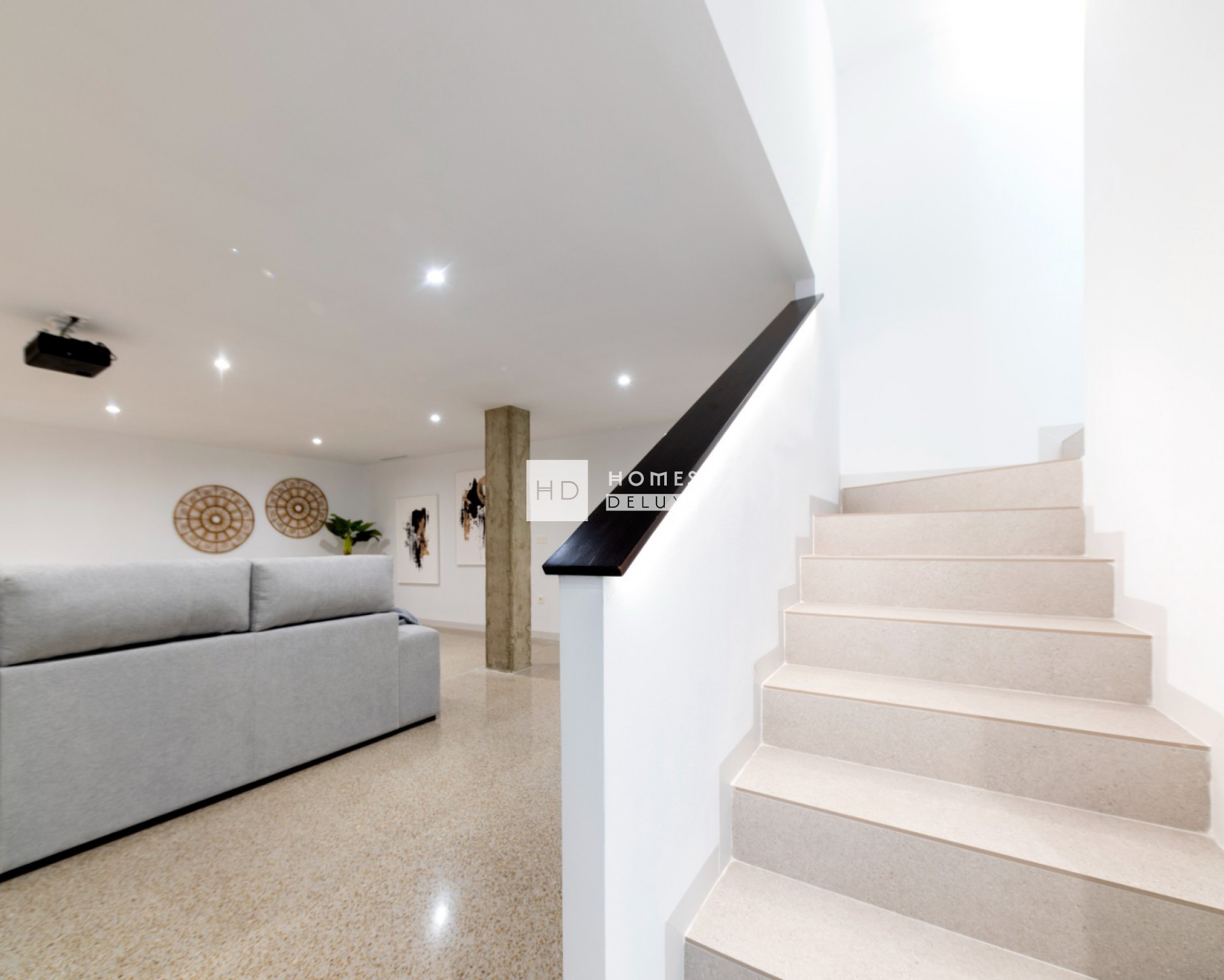 Het interieur bestaat uit een ruime open lounge en eetkamer met grote ramen die veel natuurlijk licht door het pand laten stromen en de openslaande deuren naar het terras, volledig ingerichte moderne Amerikaanse keuken, de begane grond heeft ook een tweepersoons slaapkamer met openslaande deur naar het terras aan de zijkant en een aparte badkamer voor gasten. De interne trap leidt u naar de eerste verdieping met de prachtige grote slaapkamer met inloopkast / kleedruimte en openslaande deuren naar een eigen zonneterras van 19m2, nog een tweepersoons slaapkamer en een tweede badkamer die openslaande deuren heeft vanuit de grote slaapkamer en de hal. Er is de optionele extra om een solarium op het dak toe te voegen aan de woning.