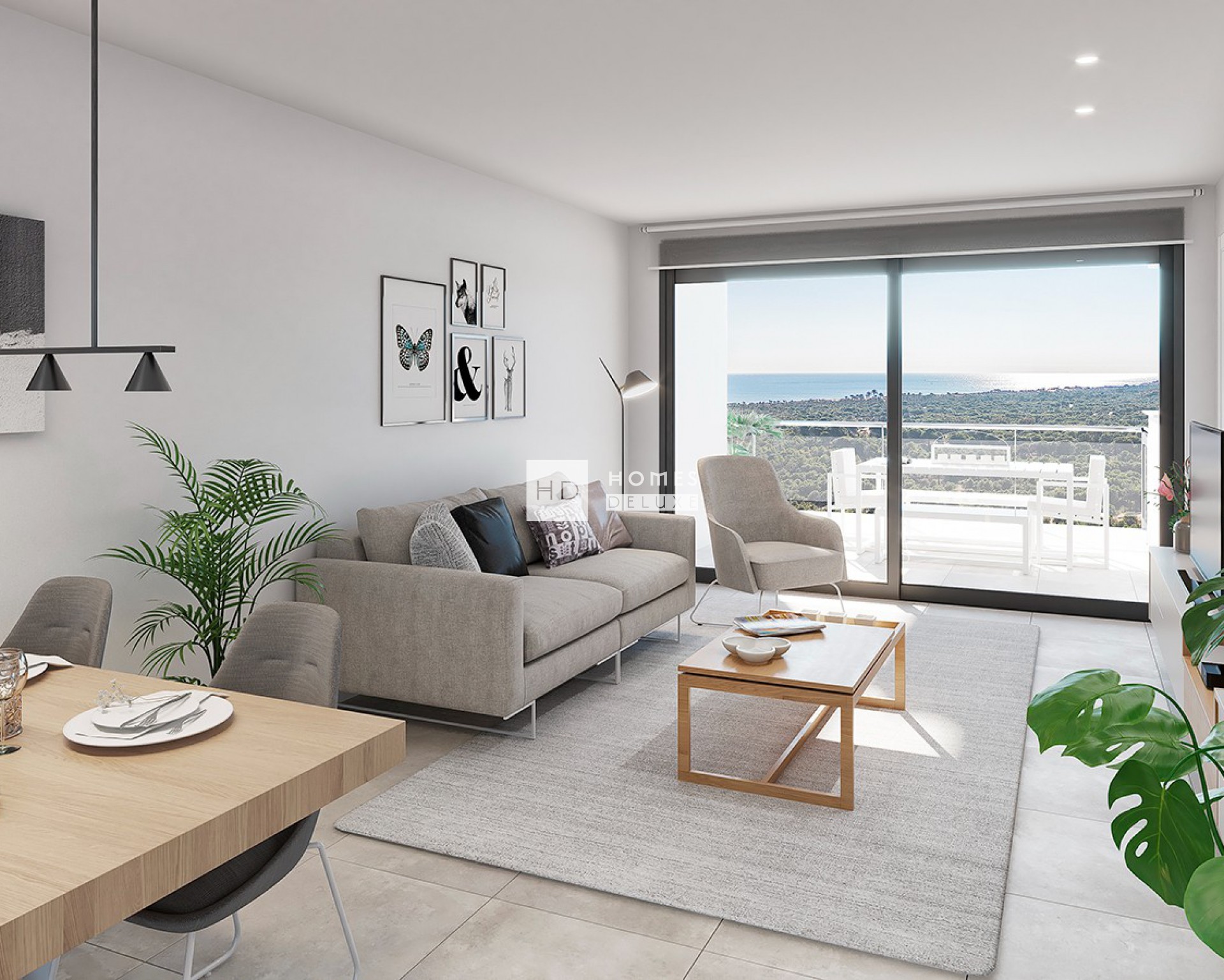 The interior layout comprises of an entrance hallway leading to the open plan lounge and dining area with patio doors giving access to the terrace, fully fitted modern American style kitchen with a separate utility room, three double bedrooms and two separate guest bathrooms. There is also a different model of apartment offering 3 bedrooms and 3 bathrooms which is a duplex style apartment over two levels, there are two bedrooms on the ground floor level (one with en-suite bathroom) and a separate guest bathroom. The interior staircase leads you to the first floor level with another double bedroom, separate guest bathroom and access to a private sun terrace.