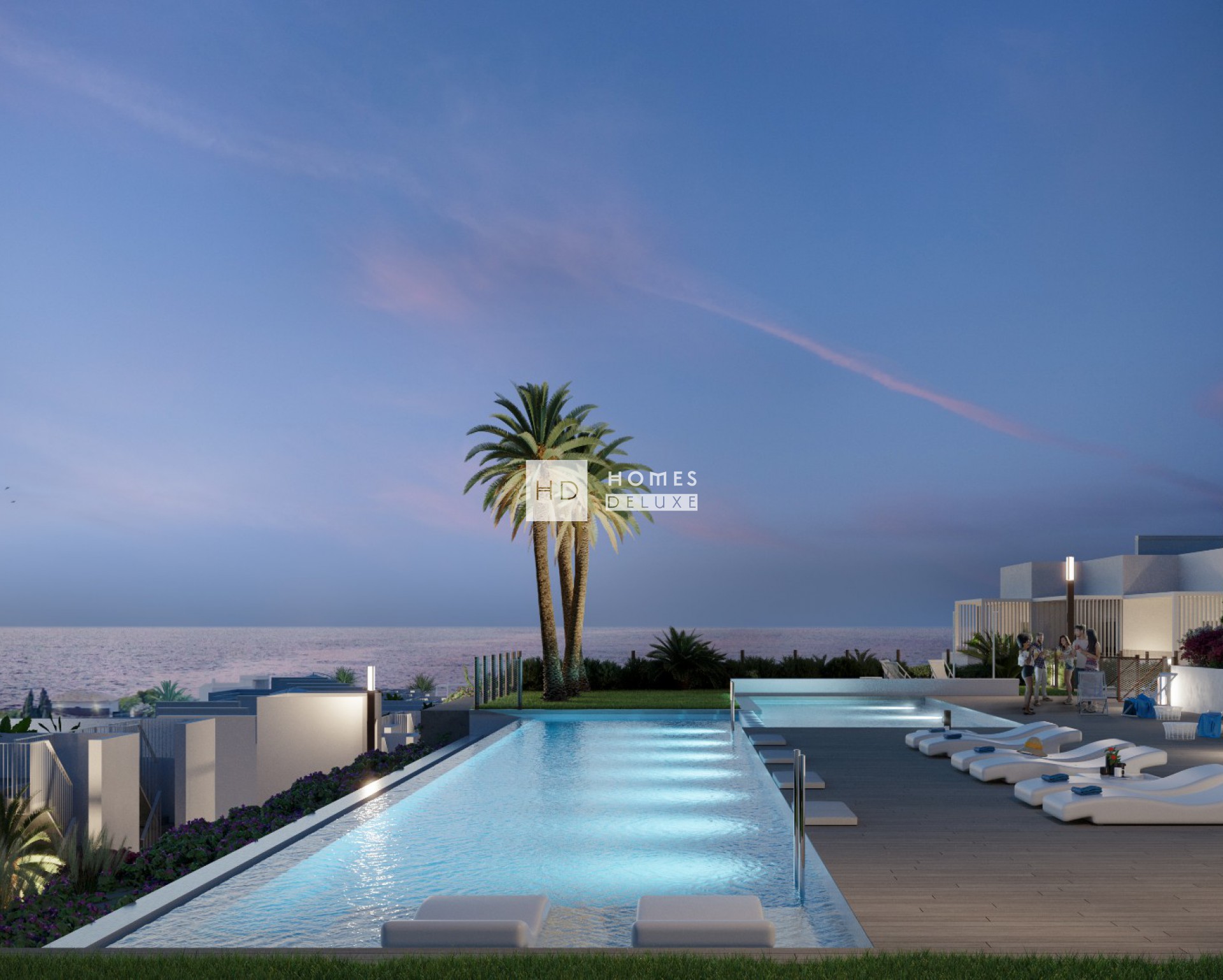 The complex comprises of 5 terraced buildings that adapt to a steep slope topography allowing each home to have unbeatable views. The complex boasts beautiful communal swimming pools that blend with the sea, pleasant outdoor gardens, leisure areas and promenades. The heated infinity swimming pool has a separate children’s play area and a swimming lane. Or if you prefer, you can relax in one of the two Jacuzzis overlooking the sea. The sun terrace around the pool area is equipped with sun loungers, grass area and an exclusive outdoor area reserved for yoga and Pilates overlooking the sea. The complex also offers a gym with a changing room, a padel court and a communal social room with sea views, located in the centre of the residential where you can celebrate events, watch projections or socialise with other residents, enriching your stay at the resort. Equipped with a large TV screen, seating area, kitchen bar and dining area.