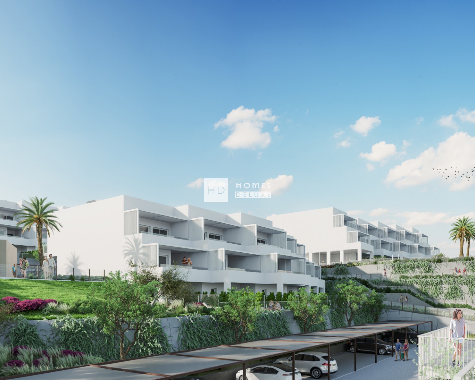 The interior layouts comprise of a bright and spacious lounge and dining area with large windows opening directly on to the terrace allowing the landscape to be enjoyed from the interior, fully fitted modern American style kitchen, Master bedroom with en-suite bathroom, a further two double bedrooms, and a separate guest bathroom which can also be accessed from one of the bedrooms. Depending on the model apartment you choose you will have a private solarium or a private garden and an open-plan under build.