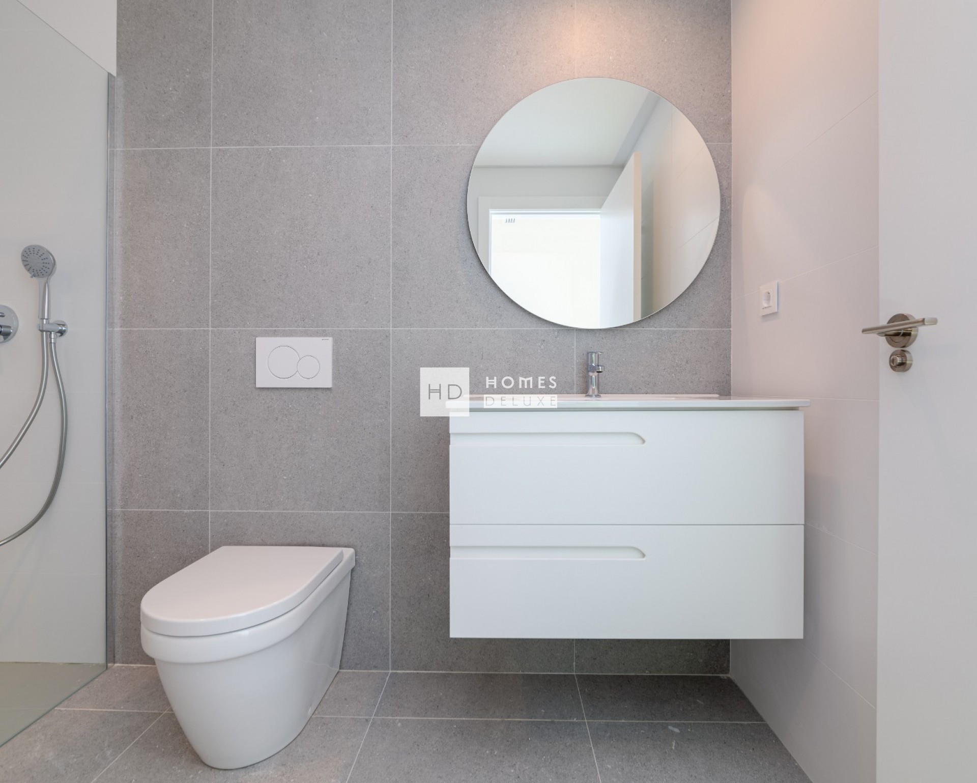 One of the project’s initial goals was to give the homes a large and private outdoor area. Therefore, a large terrace with sea views has been designed. All main interior rooms in the property are directly linked to the terrace, with plenty of natural light with the large glazed windows and blending the exterior with interior spaces. There is an exterior pergola which has been designed to filter and protect the home from sunlight during the day making greater flexibility when using the outdoor area all year round. A sustainable protection system, which guarantees shade during the hottest summer days, and allows sunlight to enter the home during winter. This provides a natural way of controlling the temperature, with clear energy benefits for the property.