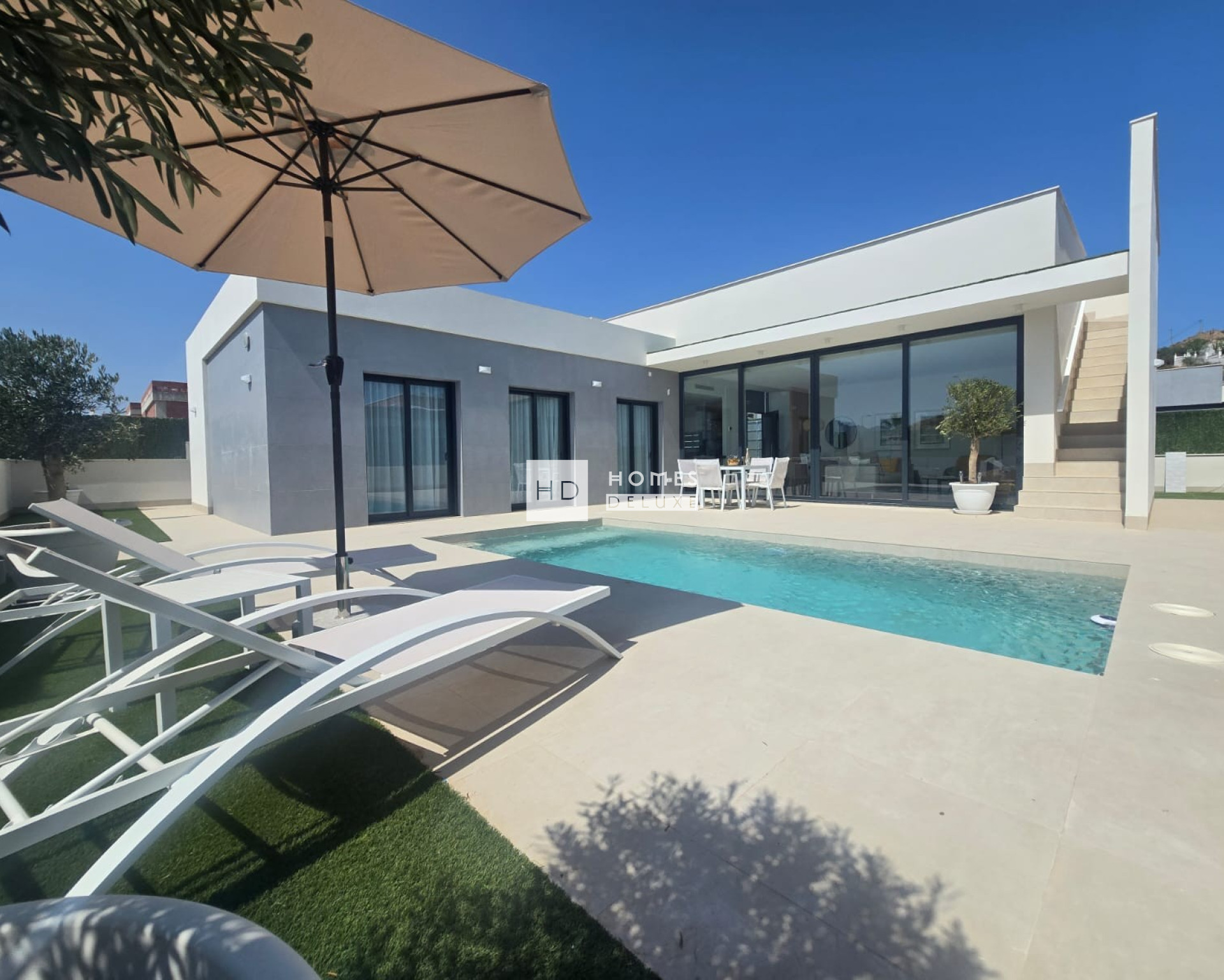 The properties come including pre-installation for ducted air conditioning, pre-installation for photovoltaic panels, kitchen electrical appliances (oven, hob, extractor fan, fridge-freezer, dishwasher and washing machine), built in wardrobes in all bedrooms, electric shutters in the bedrooms, interior and exterior LED lighting, intercom system, utility room under the exterior staircase, garden with artificial grass, private swimming pool, exterior shower, solarium with Summer kitchen, and private parking on the plot. While the villas are off plan there is also the choice of different tiling options.