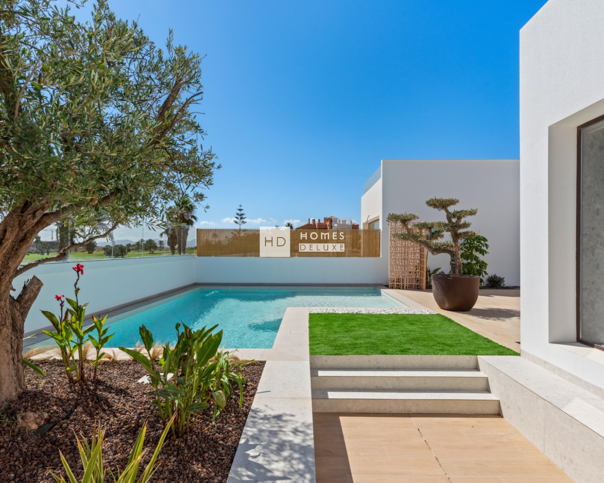 The properties combine modern design, quality and functionality, and the unbeatable location offers amazing views to golf and the Mar Menor sea. The villas are on plot sizes from 292m2 up to 400m2 with plenty of space to enjoy outdoor living in Spain, including a private swimming pool and parking space. There is the optional extra of adding basement level and private rooftop solarium to the property.