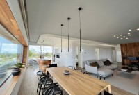 The sky villa apartment with its avant-garde design is built with pure luxury in mind with high end quality standards including some unique features. The apartment was built in 2022 and has about 140 m² of constructed area and large terraces. The interior layout comprises of an bright open plan lounge and dining area with several patio doors throughout the living space giving access to the front and rear terraces and the spectacular feature window maximises its integration into the environment, a uniquely designed sleek kitchen with all high end appliances, Master bedroom with en-suite bathroom and walk-in wardrobe / dressing area, a further two double bedrooms, all bedrooms have patio door access on the terrace area, and a separate guest bathroom. The spacious terraces allow you to make the most of outdoor living and take in the incredible views.