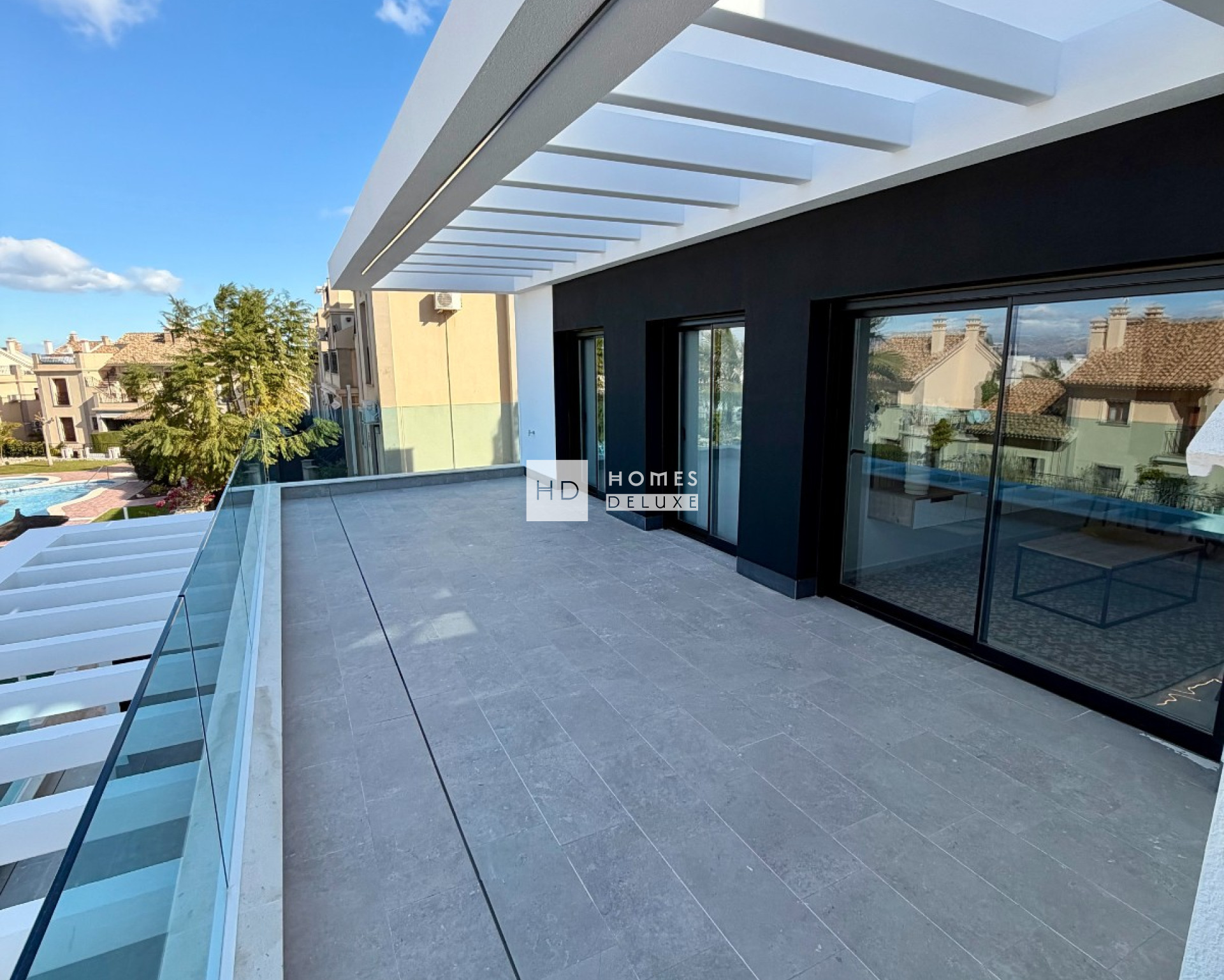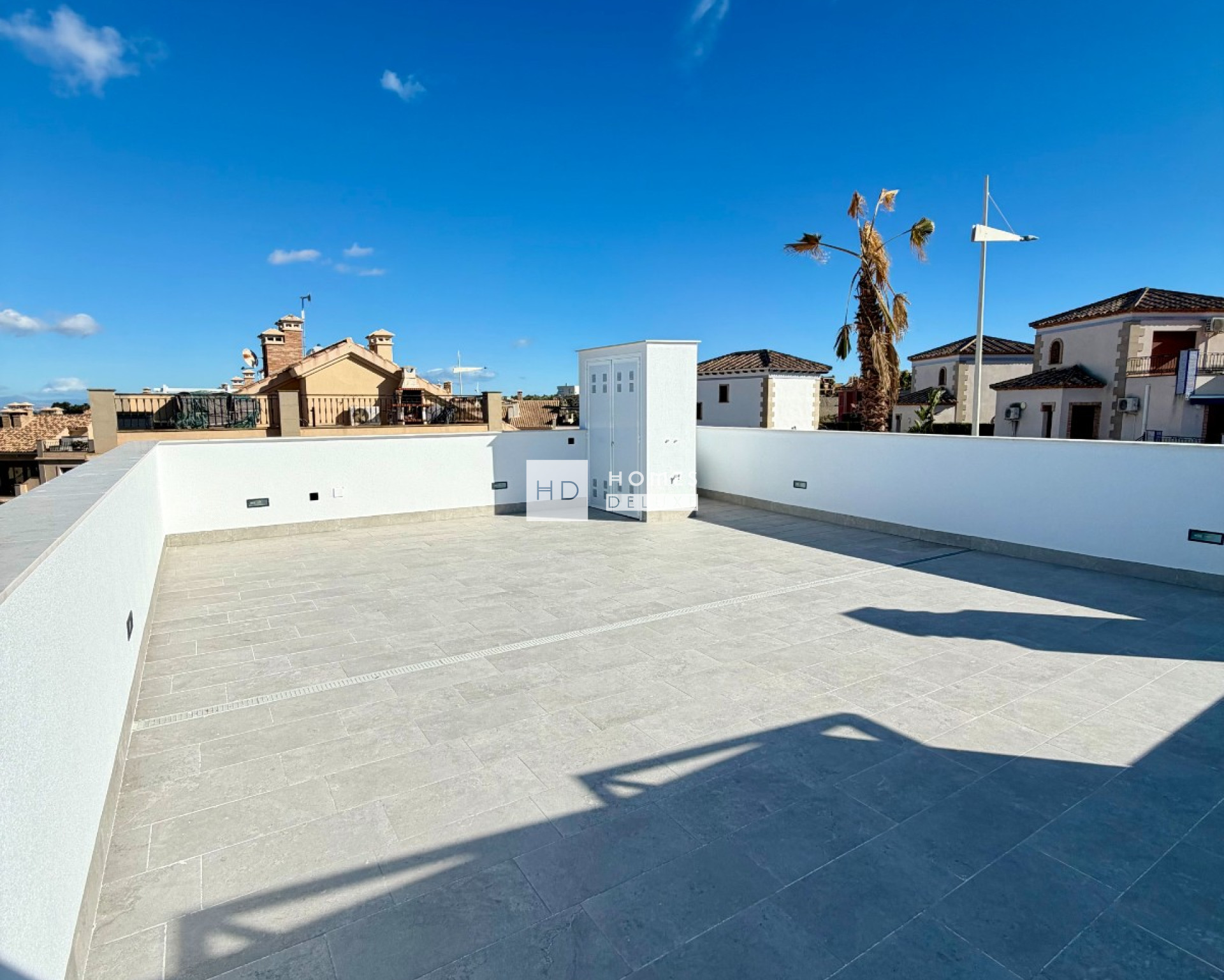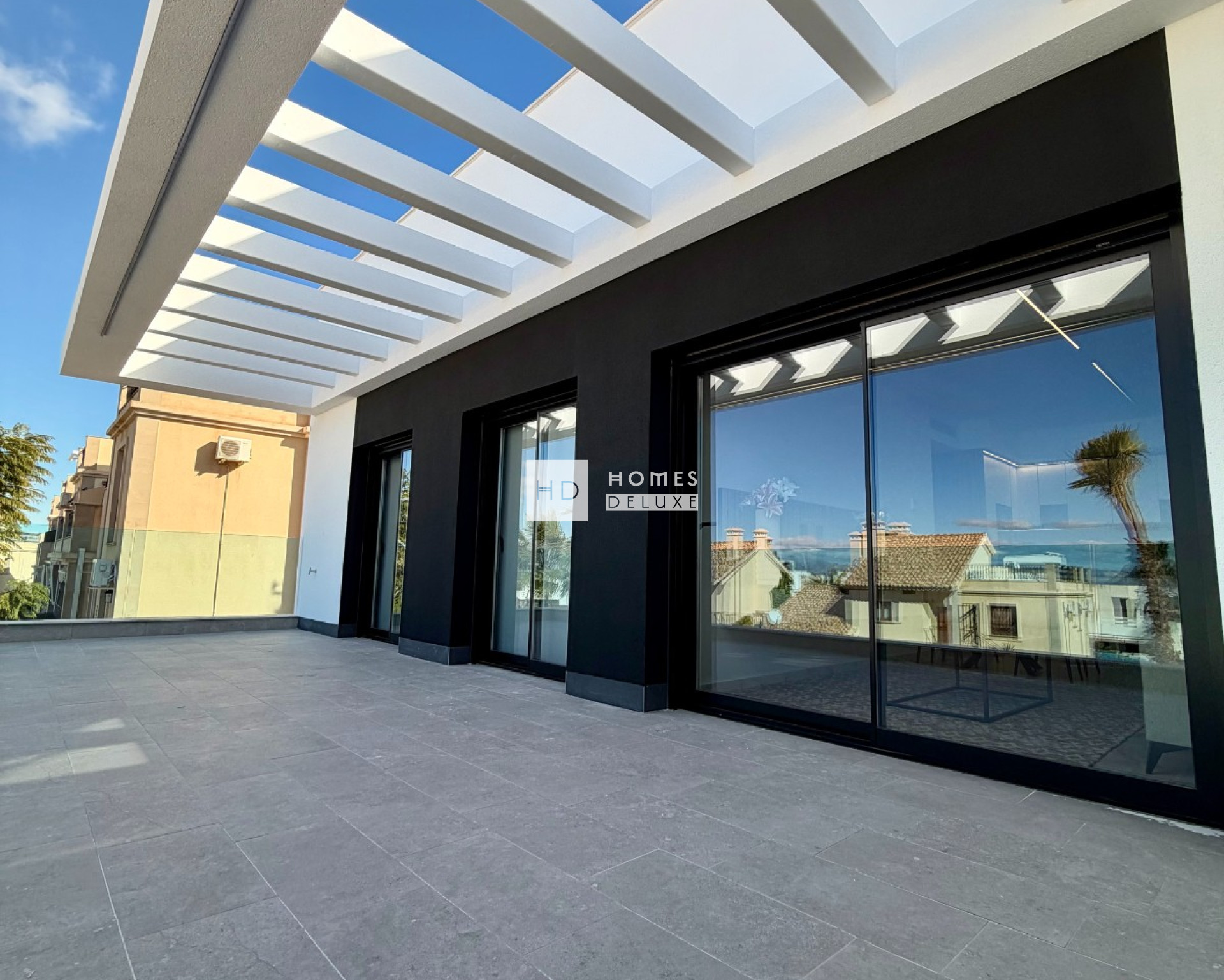 The project offers the choice of ground floor apartments with a large terrace / private garden or top floor apartments with a private rooftop solarium. The interior layouts comprise of a spacious open plan lounge and dining area with patio doors opening on to the private terrace, also within the main living space is a fully fitted modern American style kitchen. The large Primary bedroom includes an en-suite bathroom and dressing area. There is also another good sized double bedroom and a separate guest bathroom. Both bedrooms have patio doors opening on to the terrace. The top floor apartments have an exterior staircase leading up to the extensive rooftop solarium over 67m2 to enjoy the sun all day long.