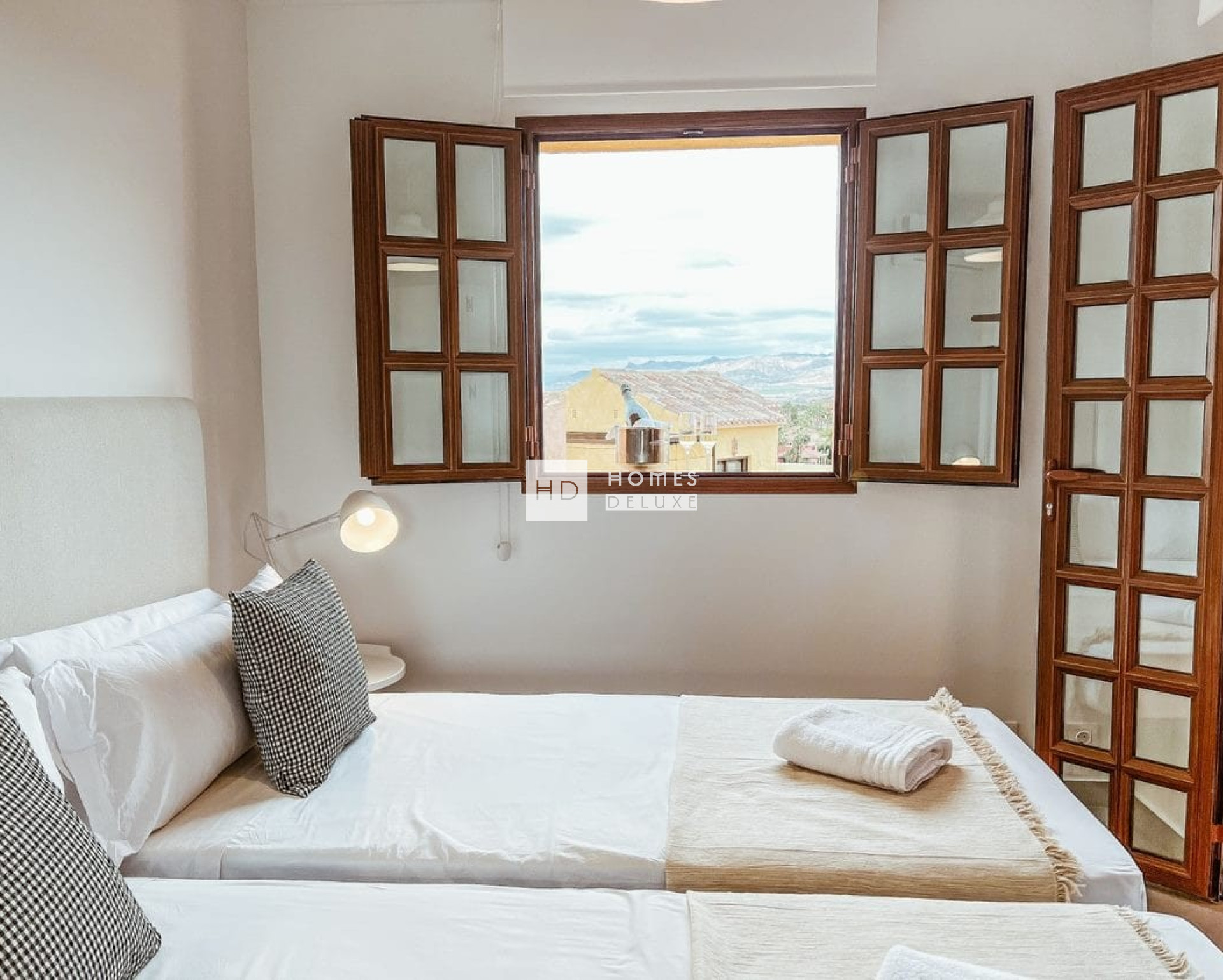 This stunning three-bedroom apartment is located within a charming Spanish-style courtyard, surrounded by beautifully landscaped communal gardens and offering access to a refreshing communal swimming pool. The exterior of the property preserves the rich tradition of Spanish architecture, with wooden and iron verandas and balconies that enhance the character of the home, while the interior is a showcase of modern elegance and comfort. The apartment boasts three well-appointed bedrooms, including an en-suite bathroom, both featuring mirrored wardrobes and high-quality sanitary fittings throughout. The spacious living and dining area opens onto a sun terrace, creating a seamless flow between indoor and outdoor spaces, perfect for both relaxation and entertaining. The open-plan kitchen comes fully equipped with integrated appliances, including a fridge/freezer, washing machine, ceramic hob, microwave, and cooker hood, ensuring that both form and function are beautifully combined. The apartment also includes air conditioning and double glazing for year-round comfort, and an allocated car parking space for added convenience. Situated within a secure, gated community with 24/7 security, this residence provides peace of mind in a prestigious and exclusive environment. Whether you are looking for a full-time residence or a holiday getaway, this property at Desert Springs is the perfect place to experience a luxurious lifestyle in the sun. Don't miss the chance to make this extraordinary apartment your home. Prices subject to availability. Contact us for more information.