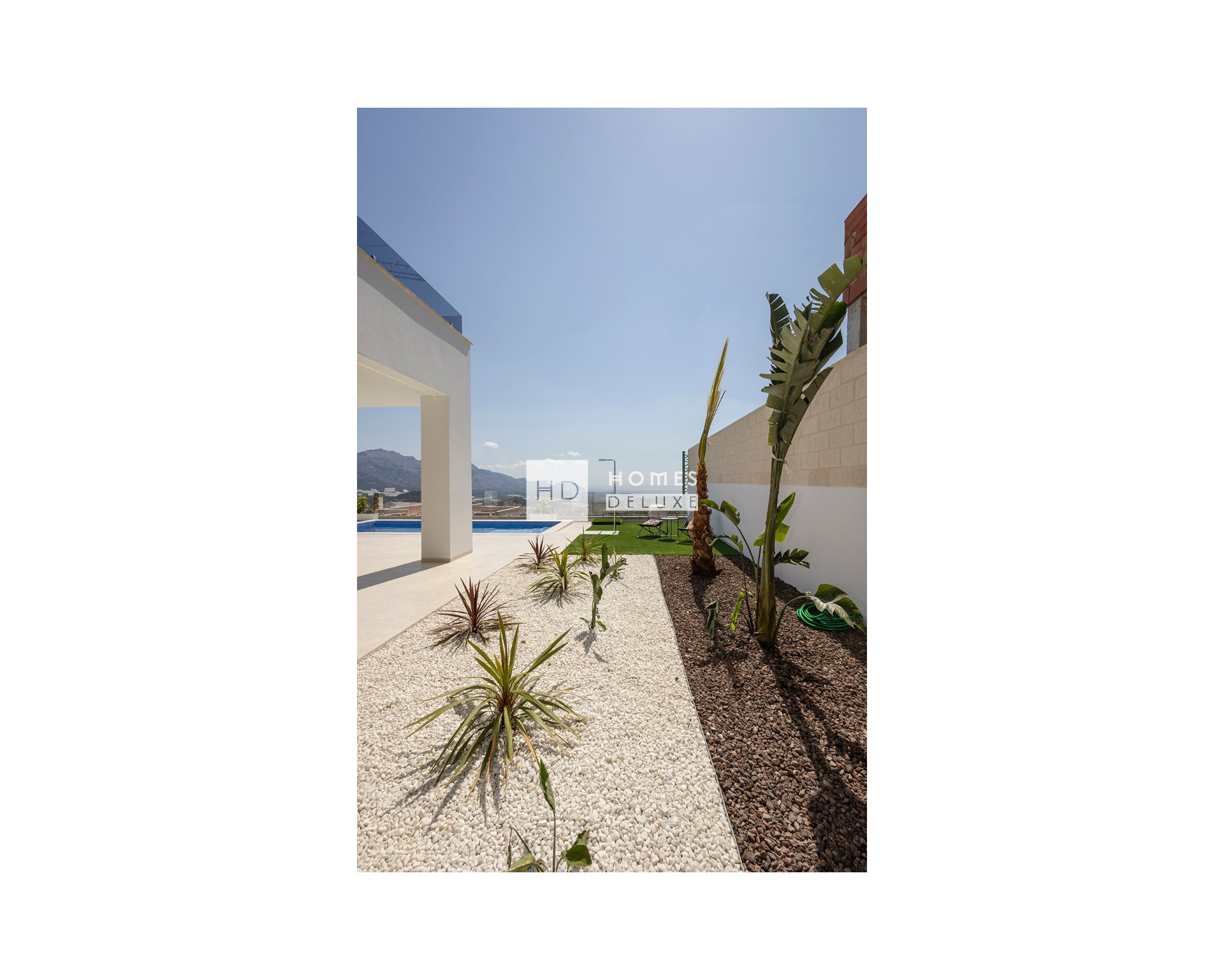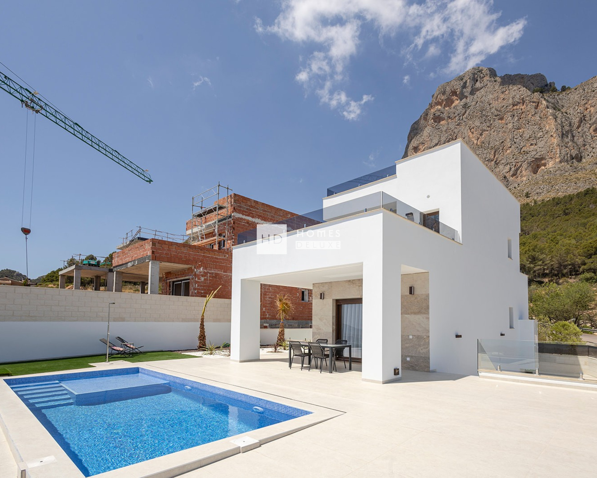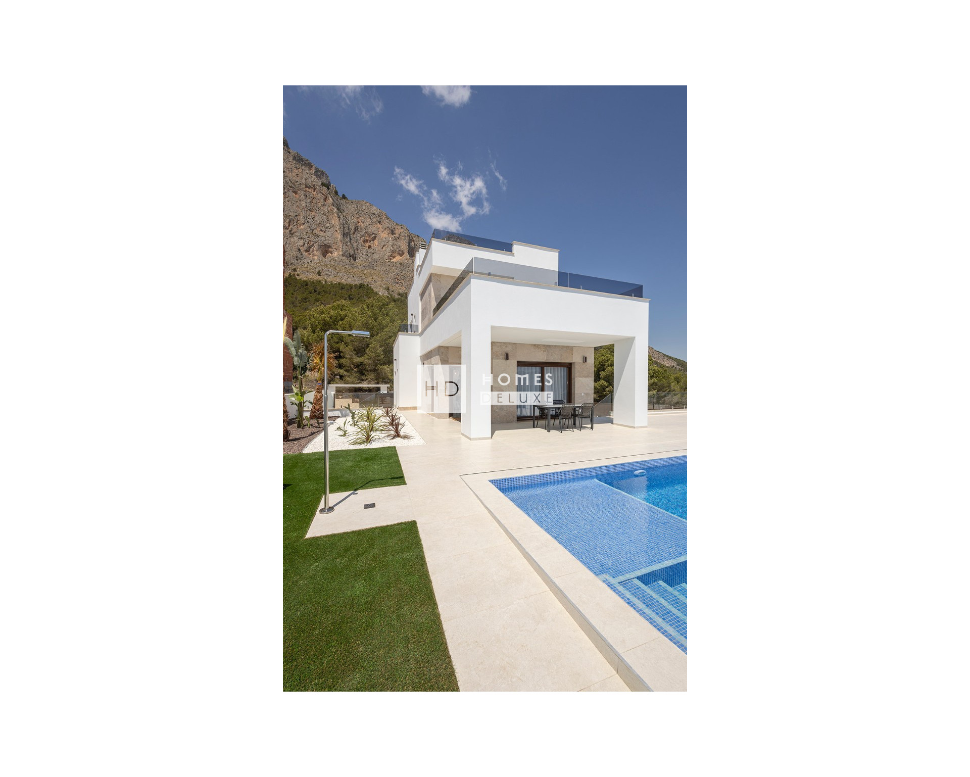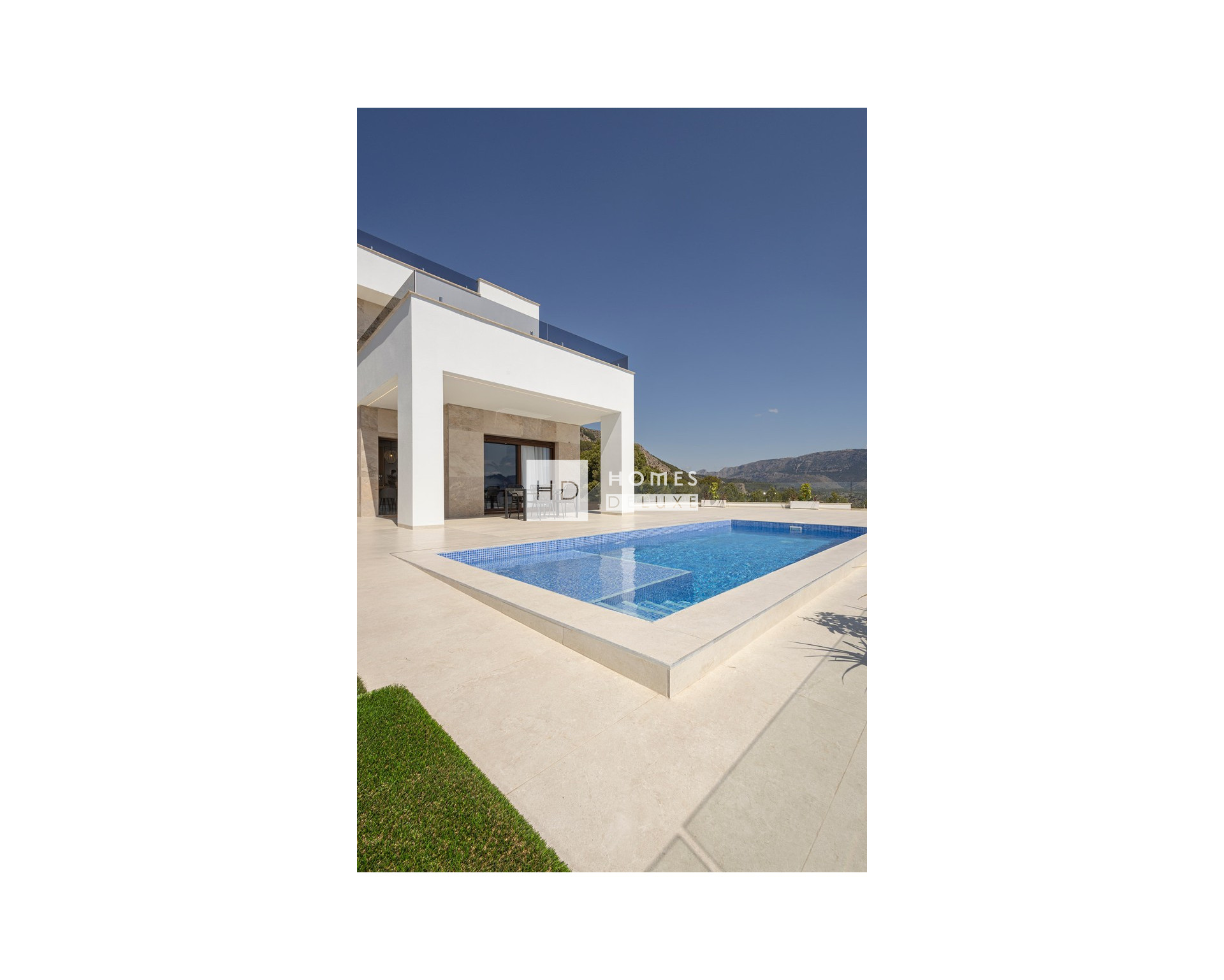 A brand new project of 36 contemporary style detached villas with 3 bedrooms 3 bathrooms and private swimming pool located on highest plot in the spectacular surroundings of Monte Ponoig in Polop (Alicante), with stunning sea and mountain views.