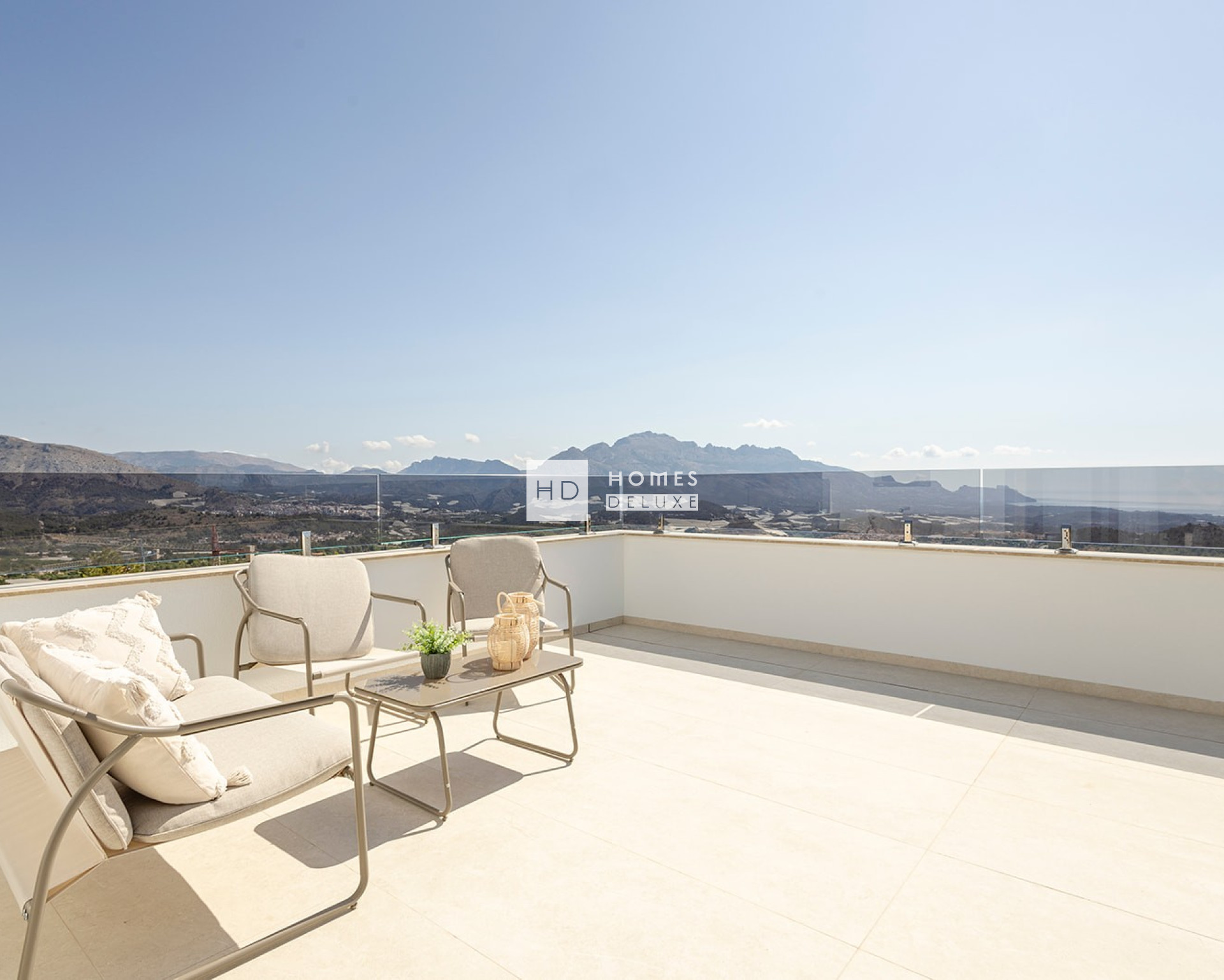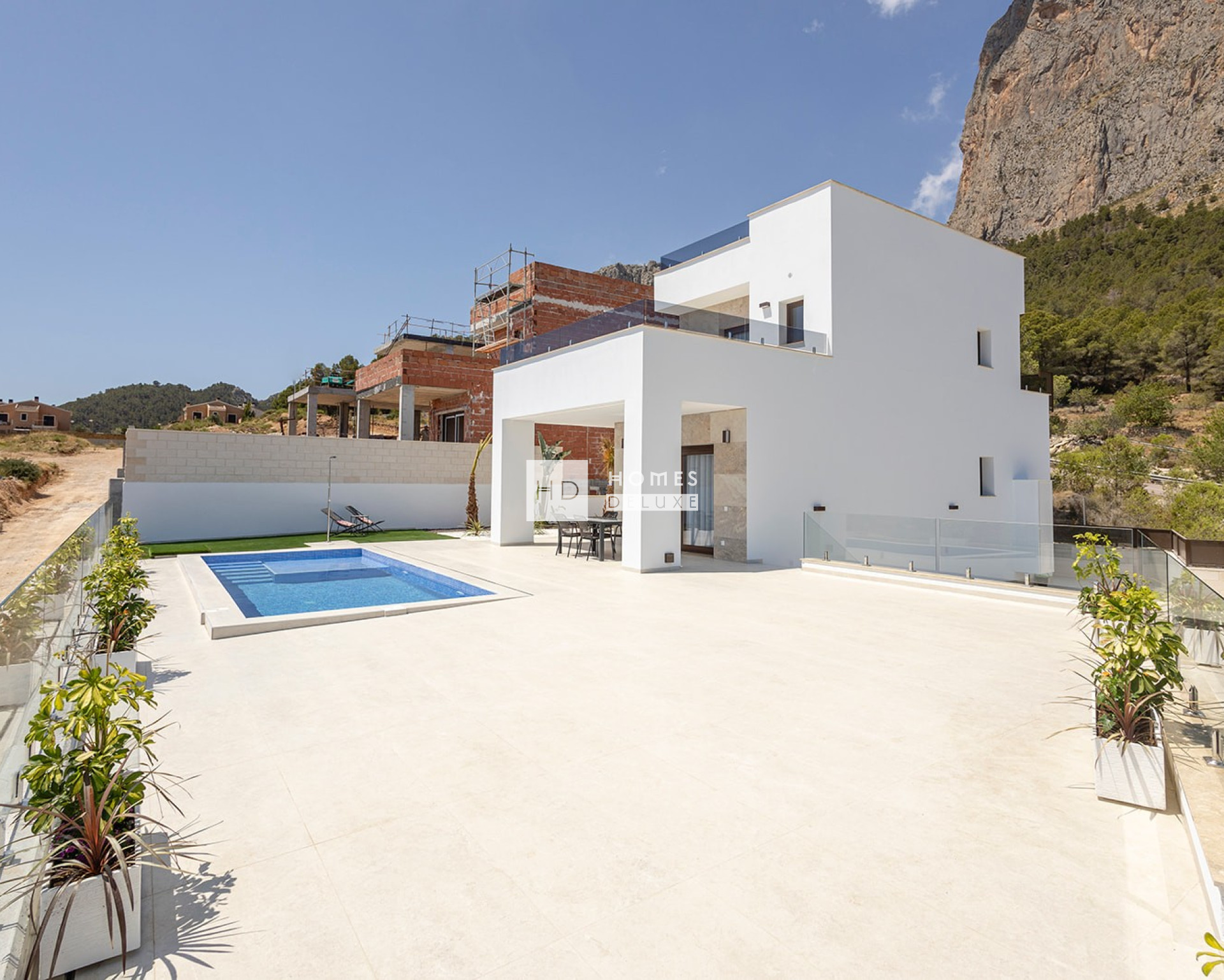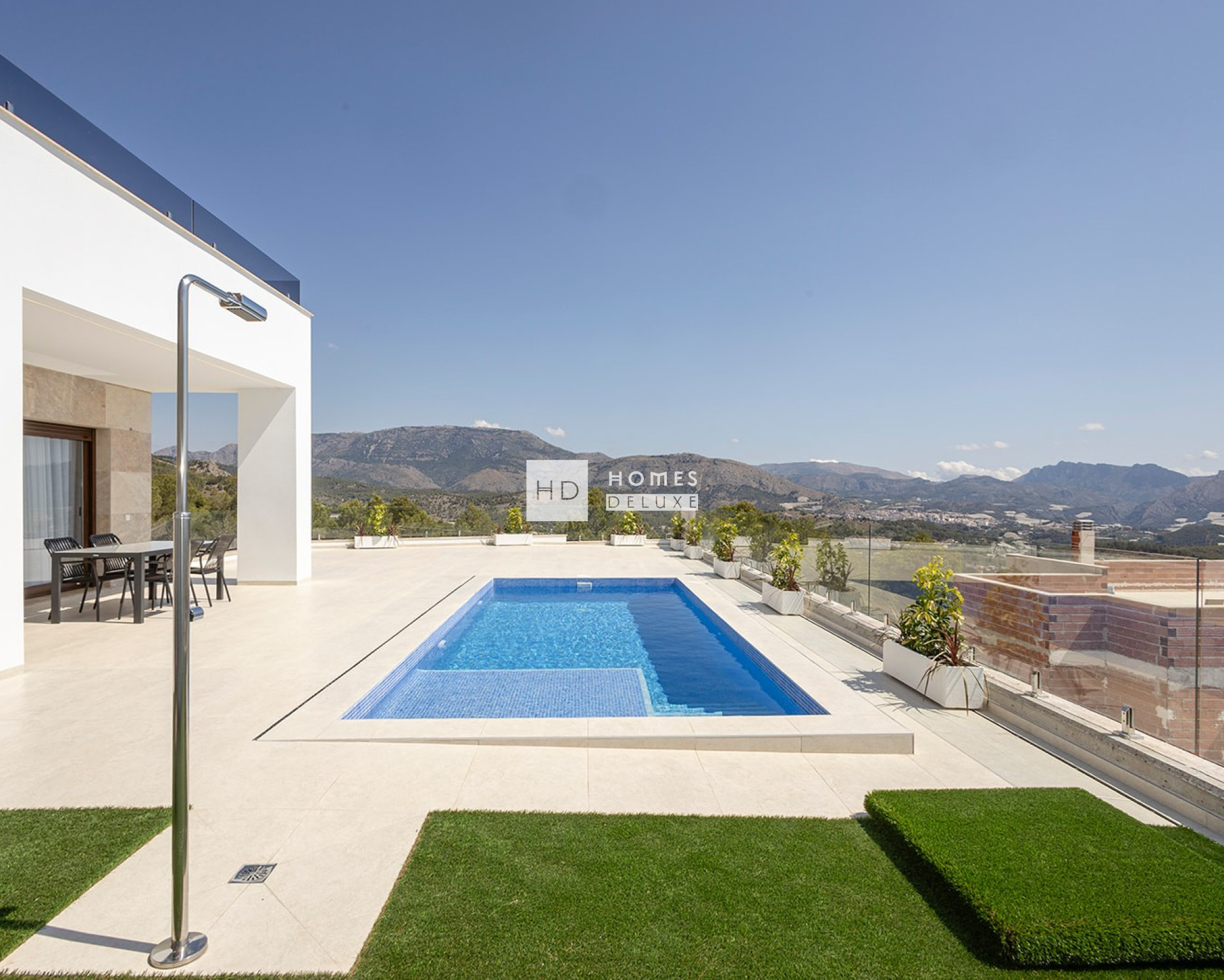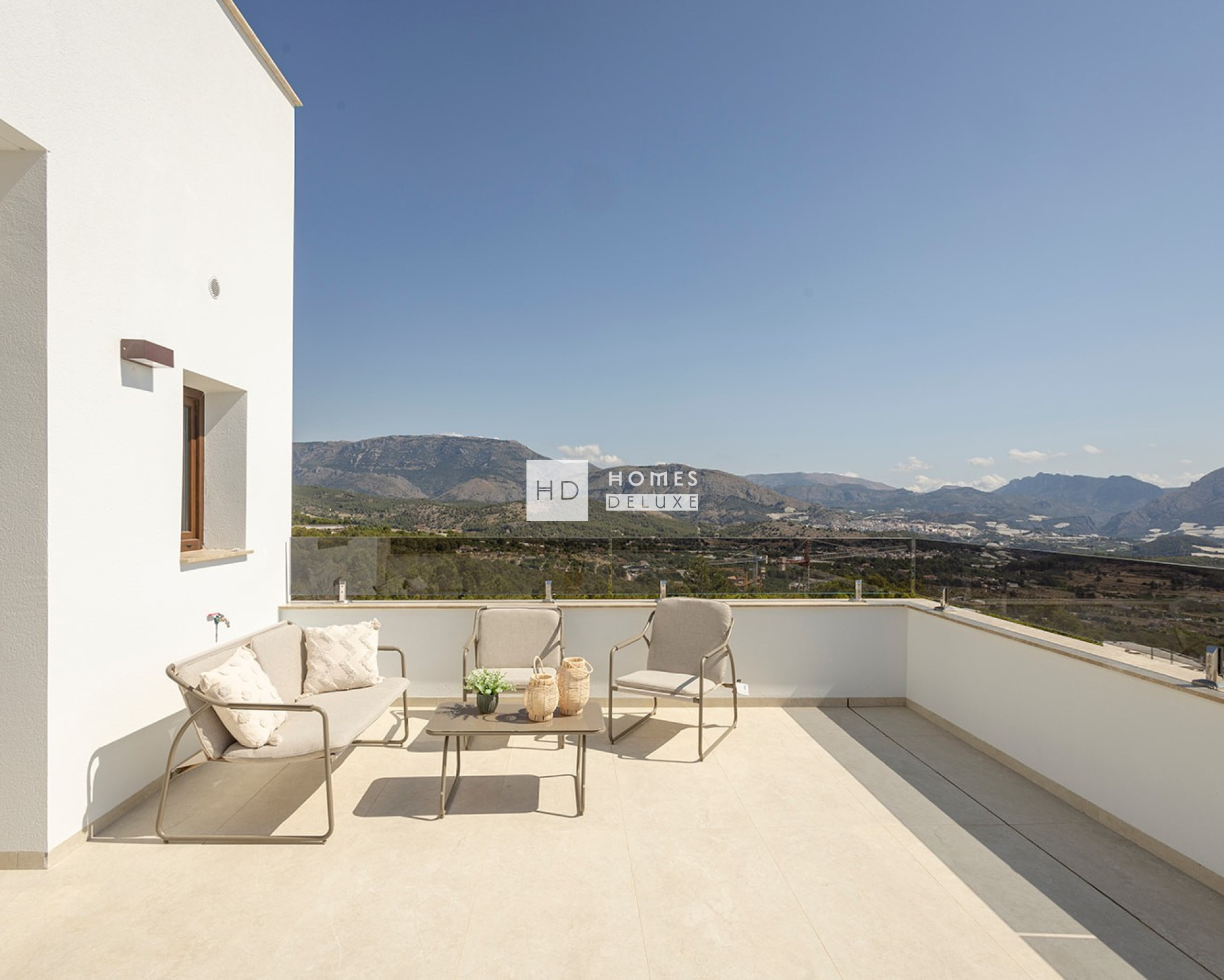 A brand new project of 36 contemporary style detached villas with 3 bedrooms 3 bathrooms and private swimming pool located on highest plot in the spectacular surroundings of Monte Ponoig in Polop (Alicante), with stunning sea and mountain views.