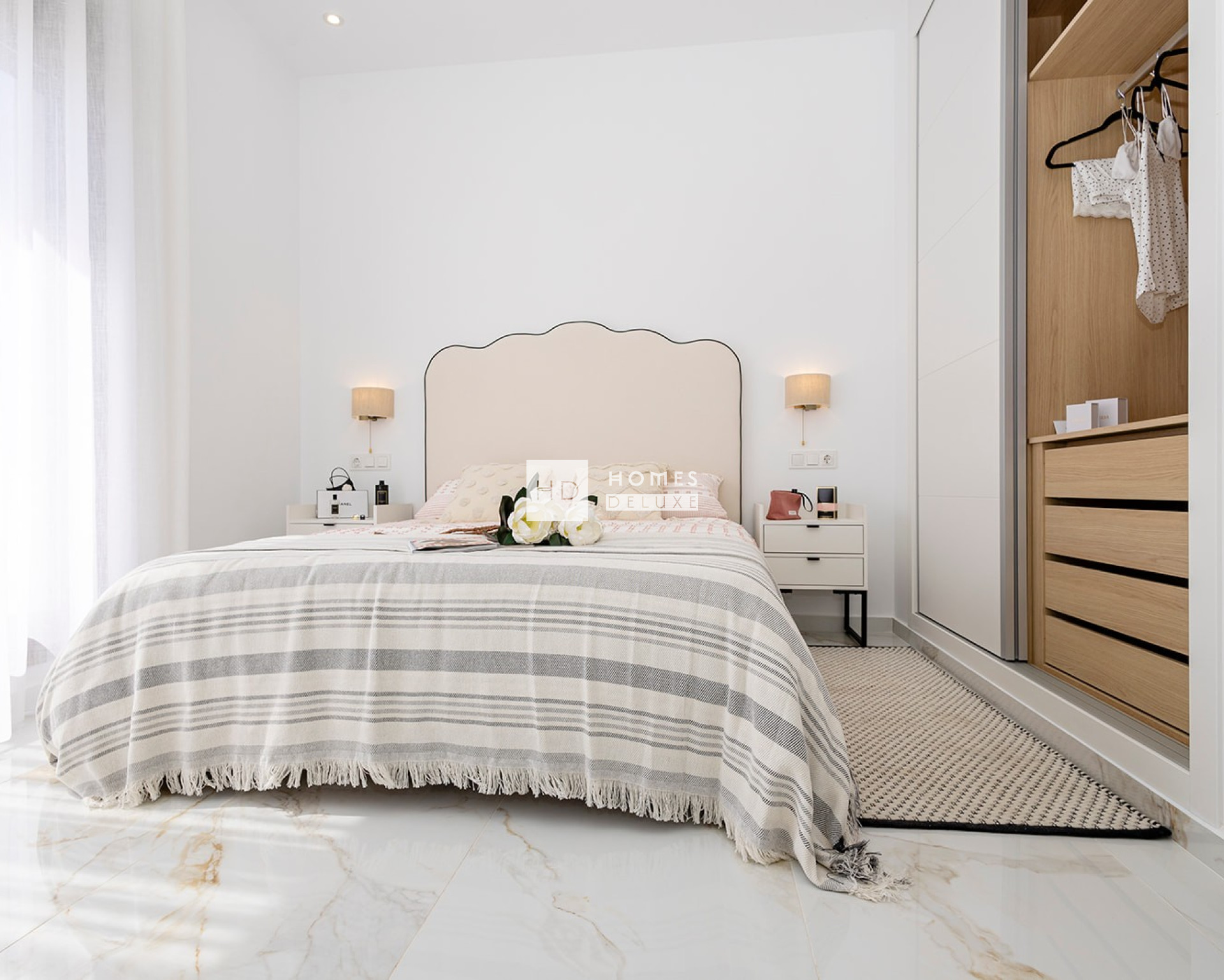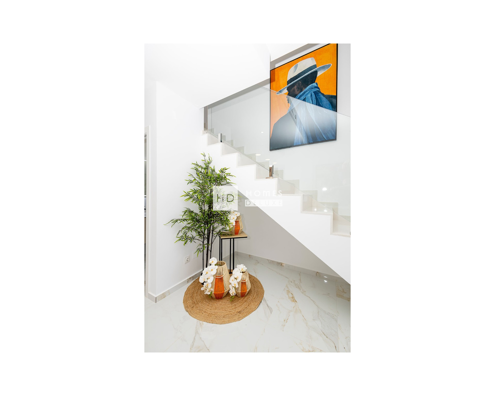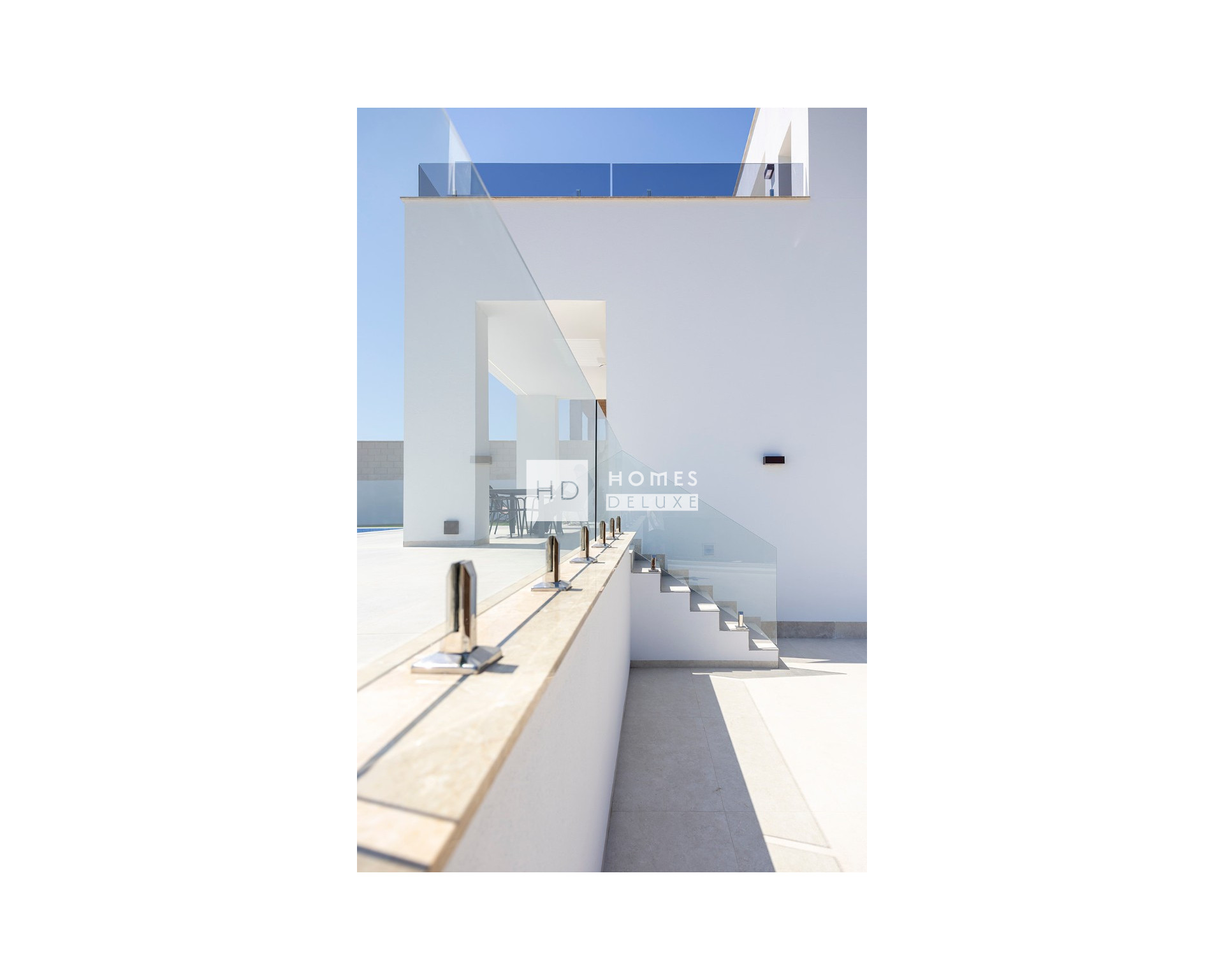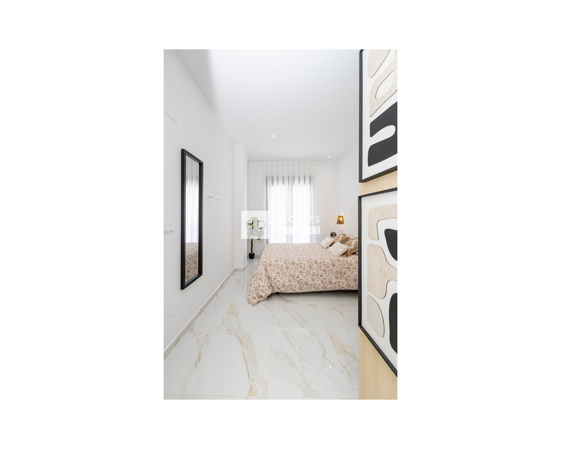 The properties come including pre-installation for ducted air conditioning, 3 photovoltaic panels on the roof to produce electricity, underfloor heating in the bathrooms, built in wardrobes in all bedrooms, electric blinds in living room, kitchen and bedrooms, video intercom system, Mediterranean style landscaped garden with artificial grass, gravel, palm trees and vegetation, a private swimming pool of 7x3 with bench area, exterior shower, and private parking on the plot.