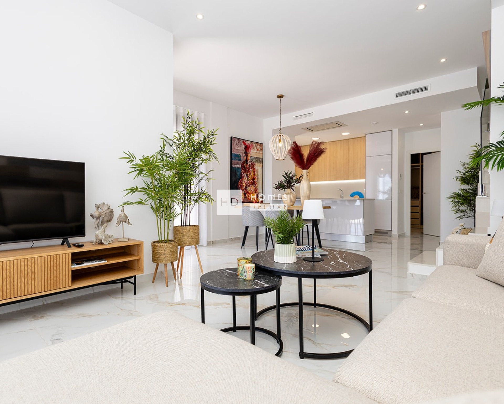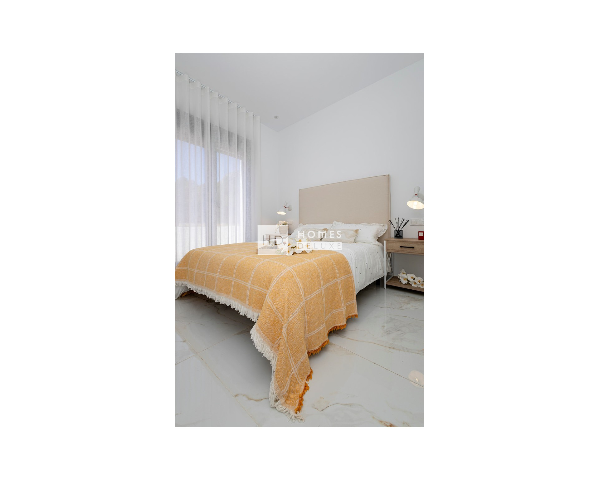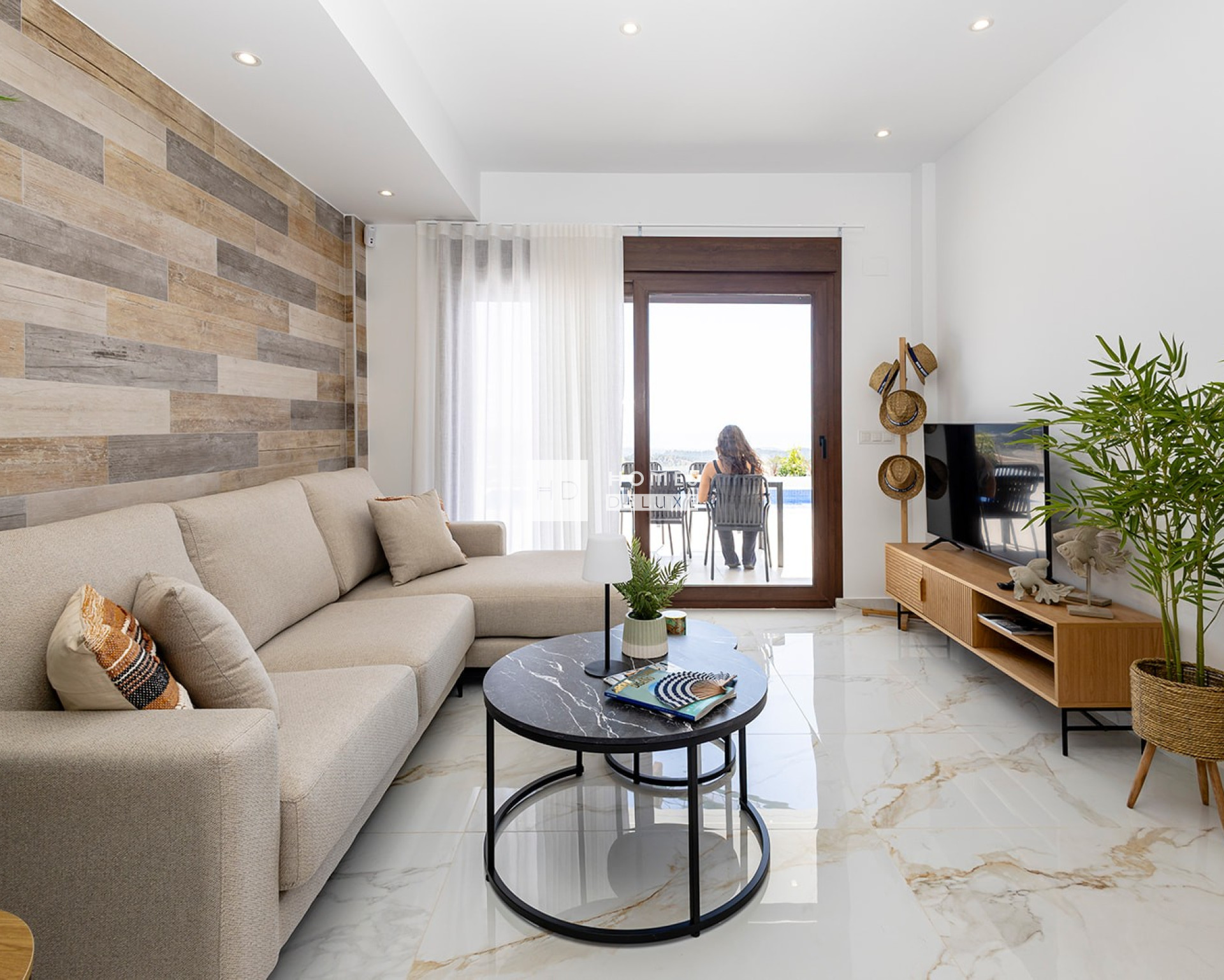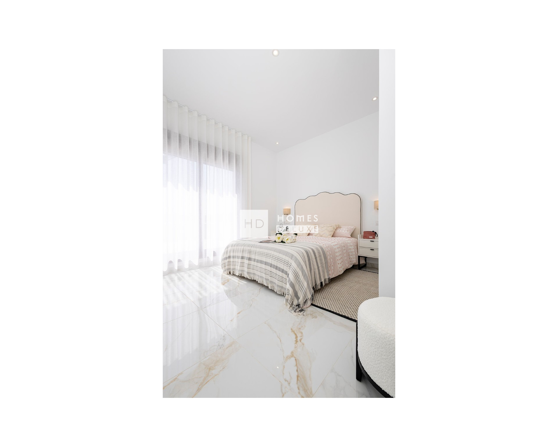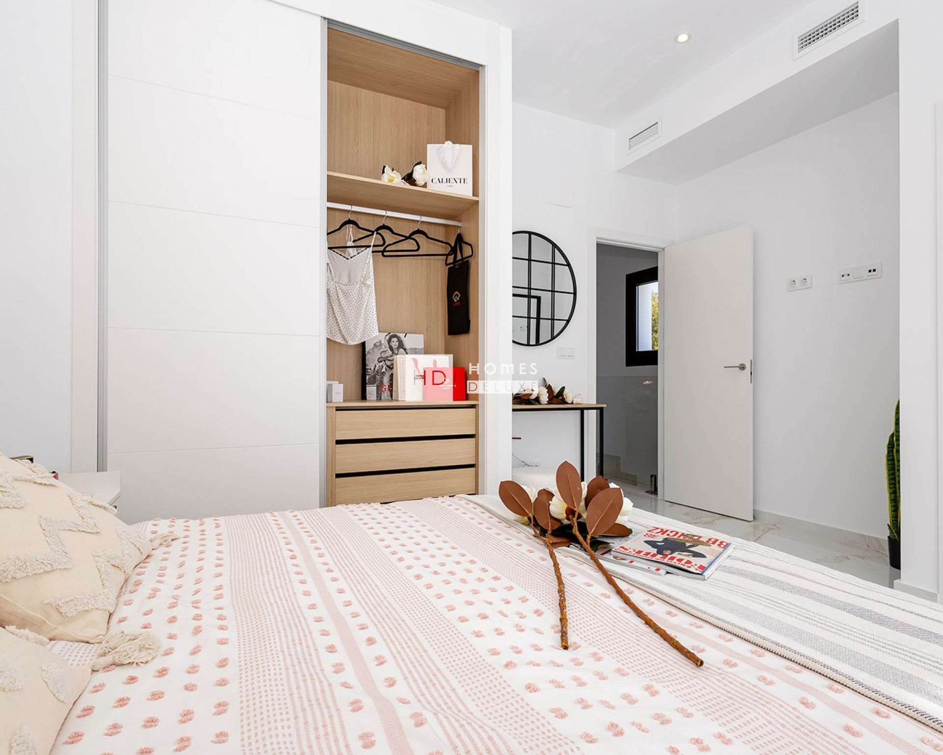 The properties come including pre-installation for ducted air conditioning, 3 photovoltaic panels on the roof to produce electricity, underfloor heating in the bathrooms, built in wardrobes in all bedrooms, electric blinds in living room, kitchen and bedrooms, video intercom system, Mediterranean style landscaped garden with artificial grass, gravel, palm trees and vegetation, a private swimming pool of 7x3 with bench area, exterior shower, and private parking on the plot.