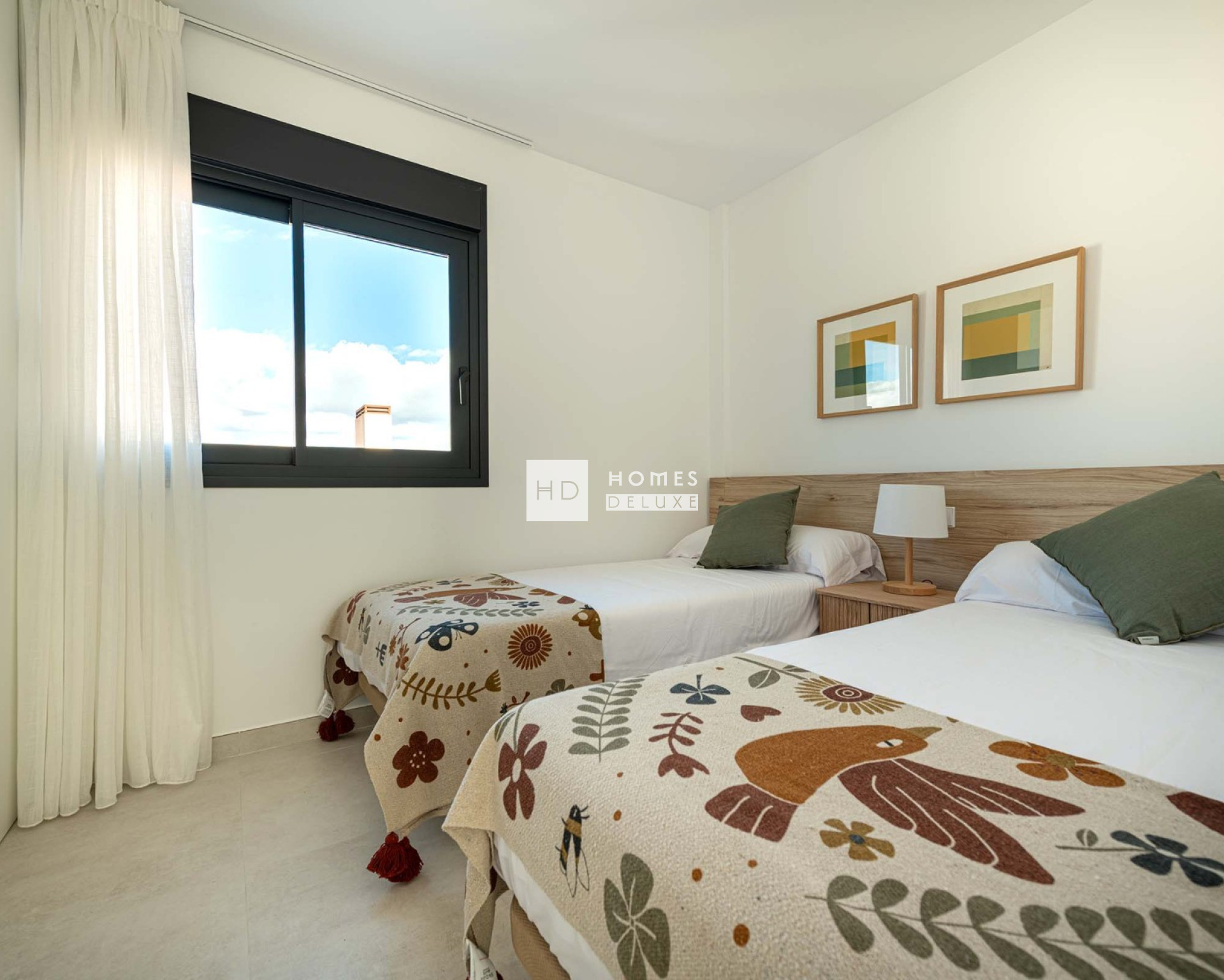 The property is over two levels with a rooftop solarium. The interior layouts comprise of a spacious open plan lounge and dining area with large windows opening on to the front terrace. Within the main living space is a fully fitted American style kitchen with Silestone worktop, the kitchen has an access door to the rear patio of 19m2. The ground floor level also includes a double bedroom and a separate guest bathroom. The interior staircase leads you to the first floor level with the large Primary bedroom which has access to the first floor terrace. There is another good sized double bedroom and a second separate guest bathroom. The first floor terrace has an exterior staircase leading up to the extensive rooftop solarium of 32m2 including a Summer kitchen, perfect to enjoy al-fresco dining in the sun all day long.
