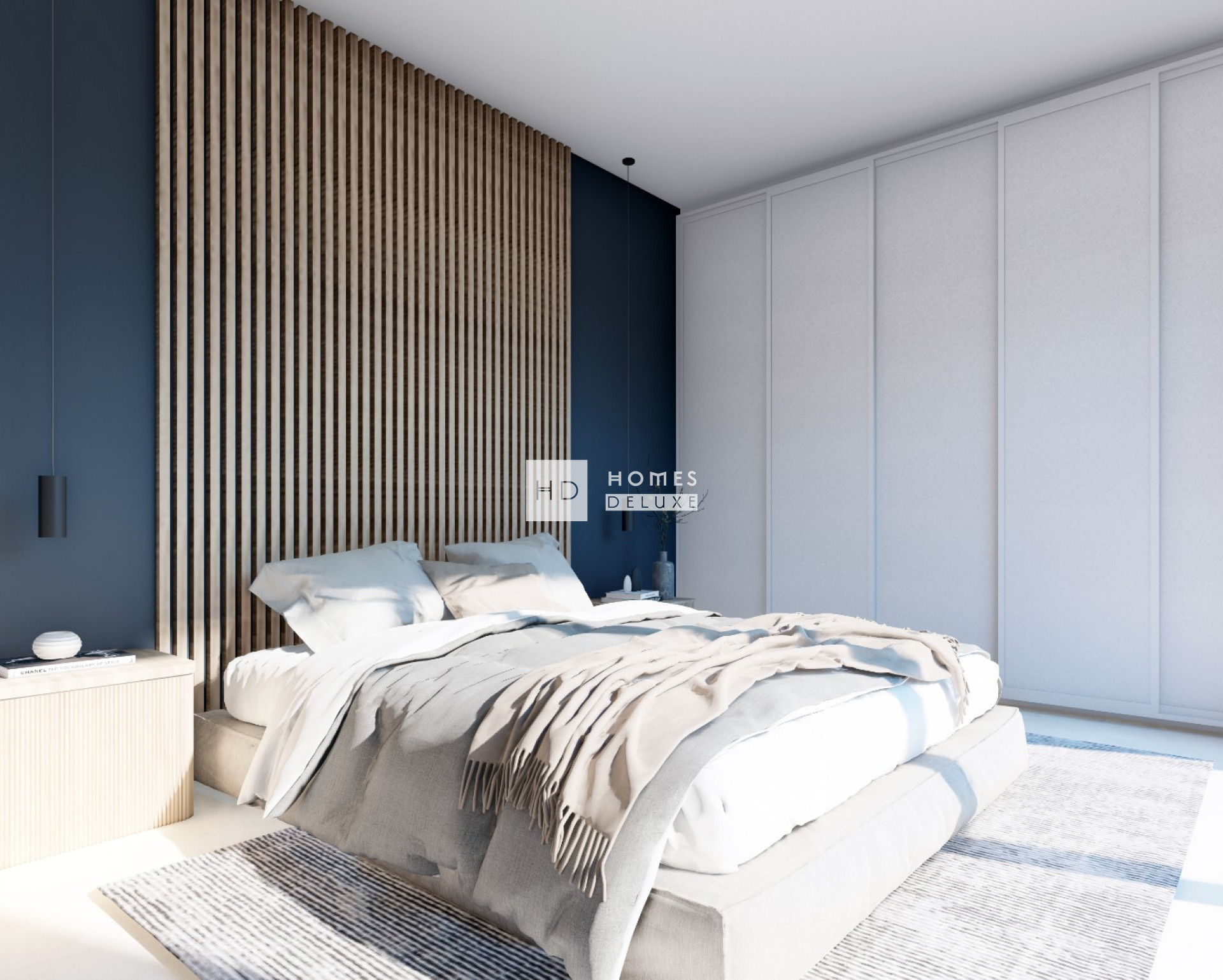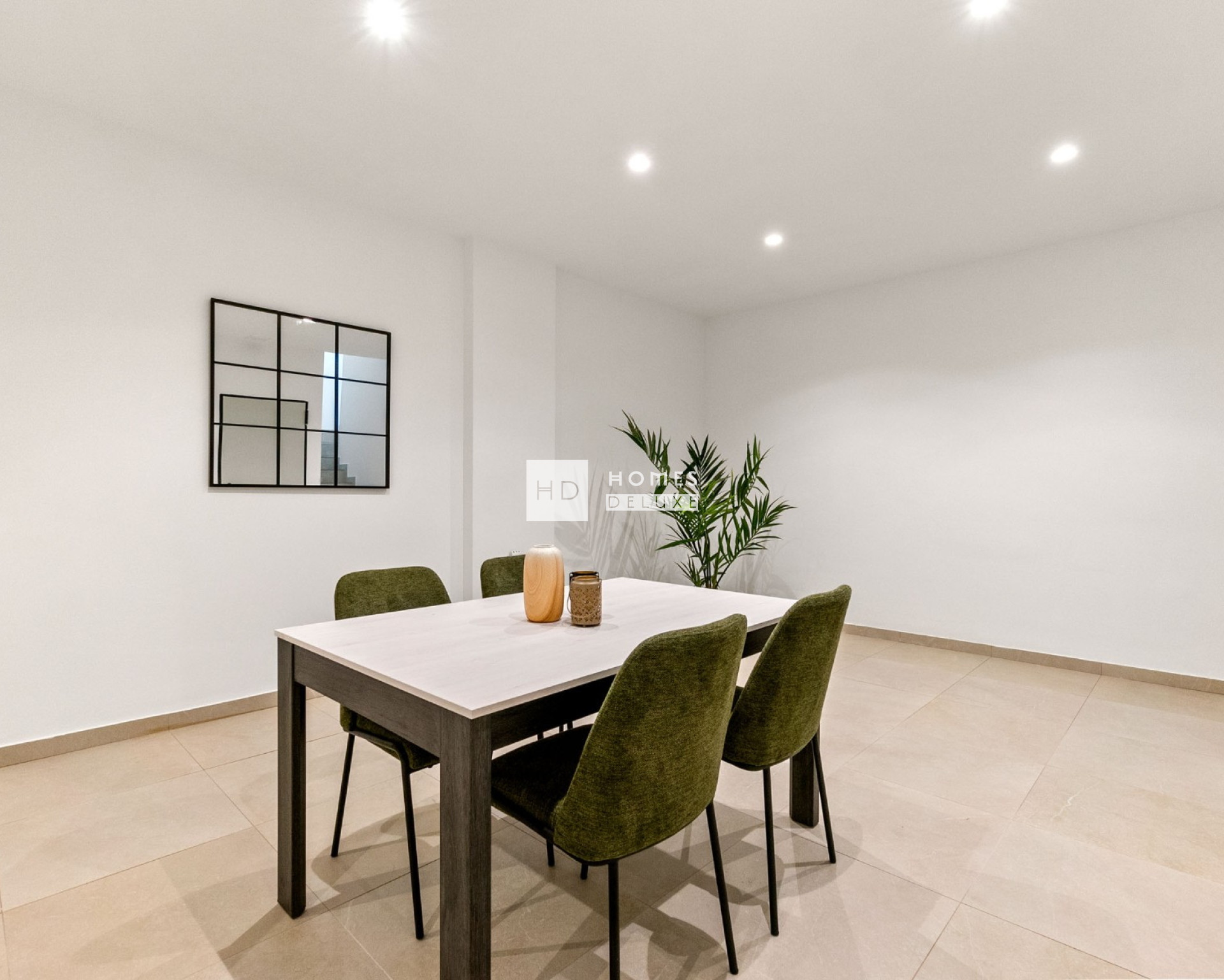 The villas are over two levels with a useful basement level over 75m2. The interior layout comprises of a spacious open plan lounge and dining area with large windows opening on to the terrace, within the main living space is a fully fitted modern American style kitchen with centre island. The ground floor level also includes a double bedroom and separate guest bathroom. The interior staircase leads you to the first floor level with the large Primary bedroom with en-suite bathroom and has access to a private terrace over 6m2. The first floor also includes another good sized double bedroom with en-suite bathroom and has access to a private terrace over 5m2. Both the basement level and rooftop solarium are accessed via the interior staircase of the property. The basement level allows you to create extra living space to the property to suit your needs and requirements.