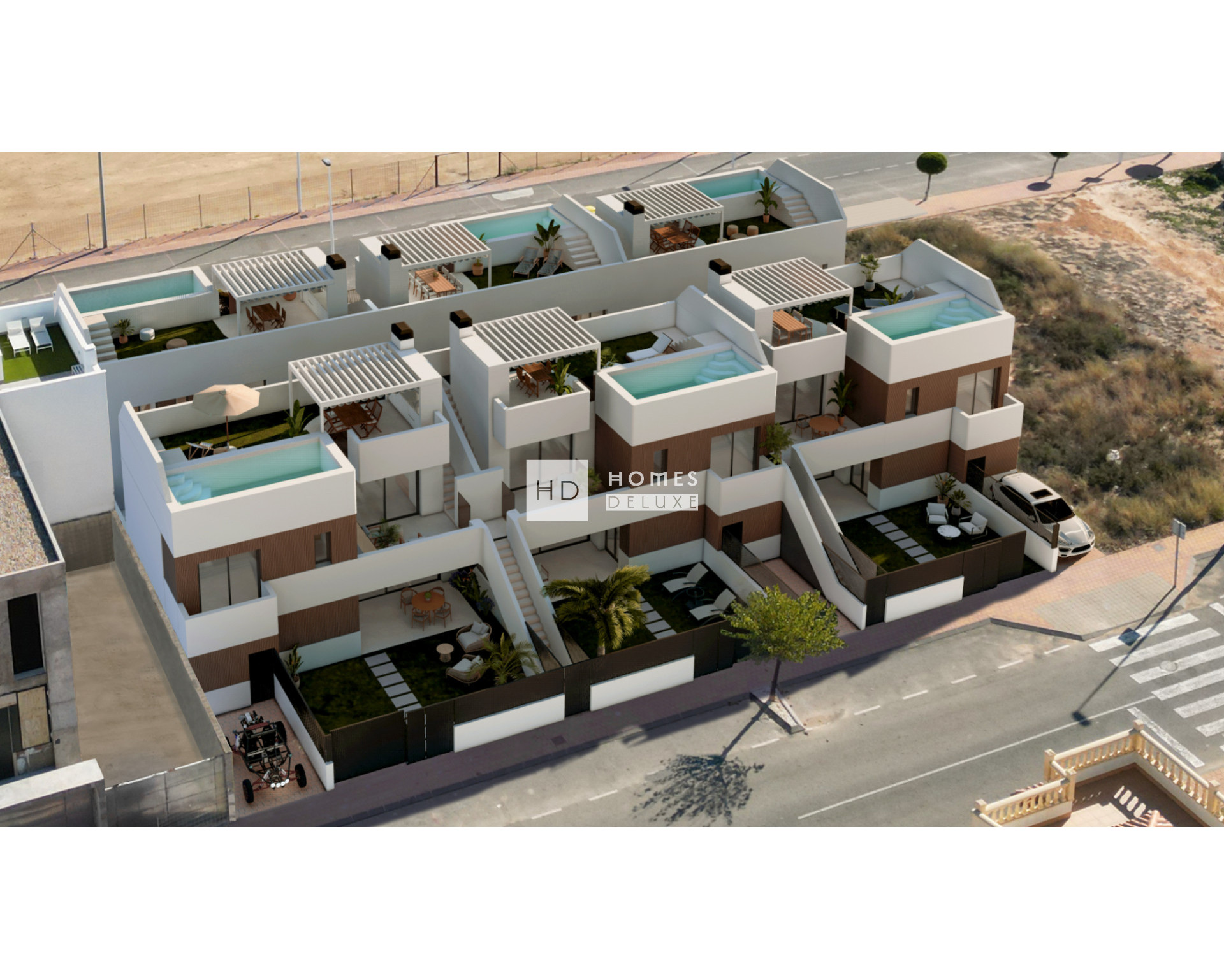 The project offers a boutique collection of two-bedroom homes with an Ibiza-inspired style aesthetic boasting clean lines, quality finishes, a superb indoor and outdoor flow... the ideal modern luxury design. There is the choice of two bedroom ground floor apartments which flow straight onto the private terrace, or top floor apartments with a large rooftop solarium. Each property crafted with designer precision and all including a private swimming pool for elevated living and perfect to entertain within your own space.