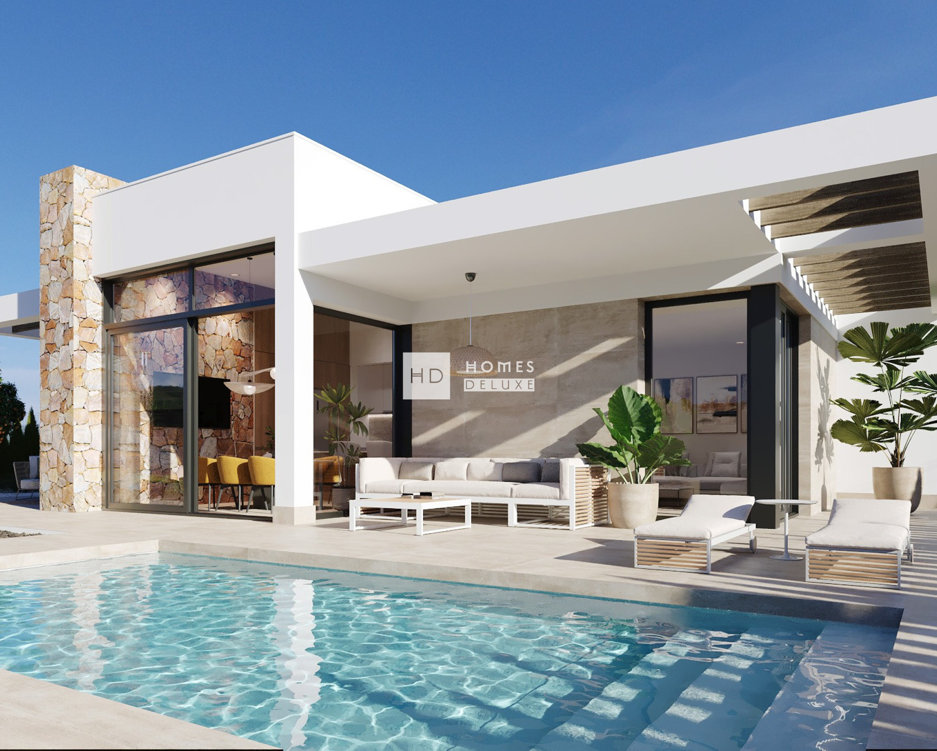 A brand new premium residential villa project offering 3 bedroom 2 bathroom detached villas with private swimming pool located in the heart of Hacienda del Álamo Golf Resort (Murcia), in a quiet and elevated part of the resort with mountain views and a great sense of space. Designed for comfort, privacy and high-quality living, these elegant homes combine spacious layouts, excellent finishes, and the peace of a fully serviced resort.