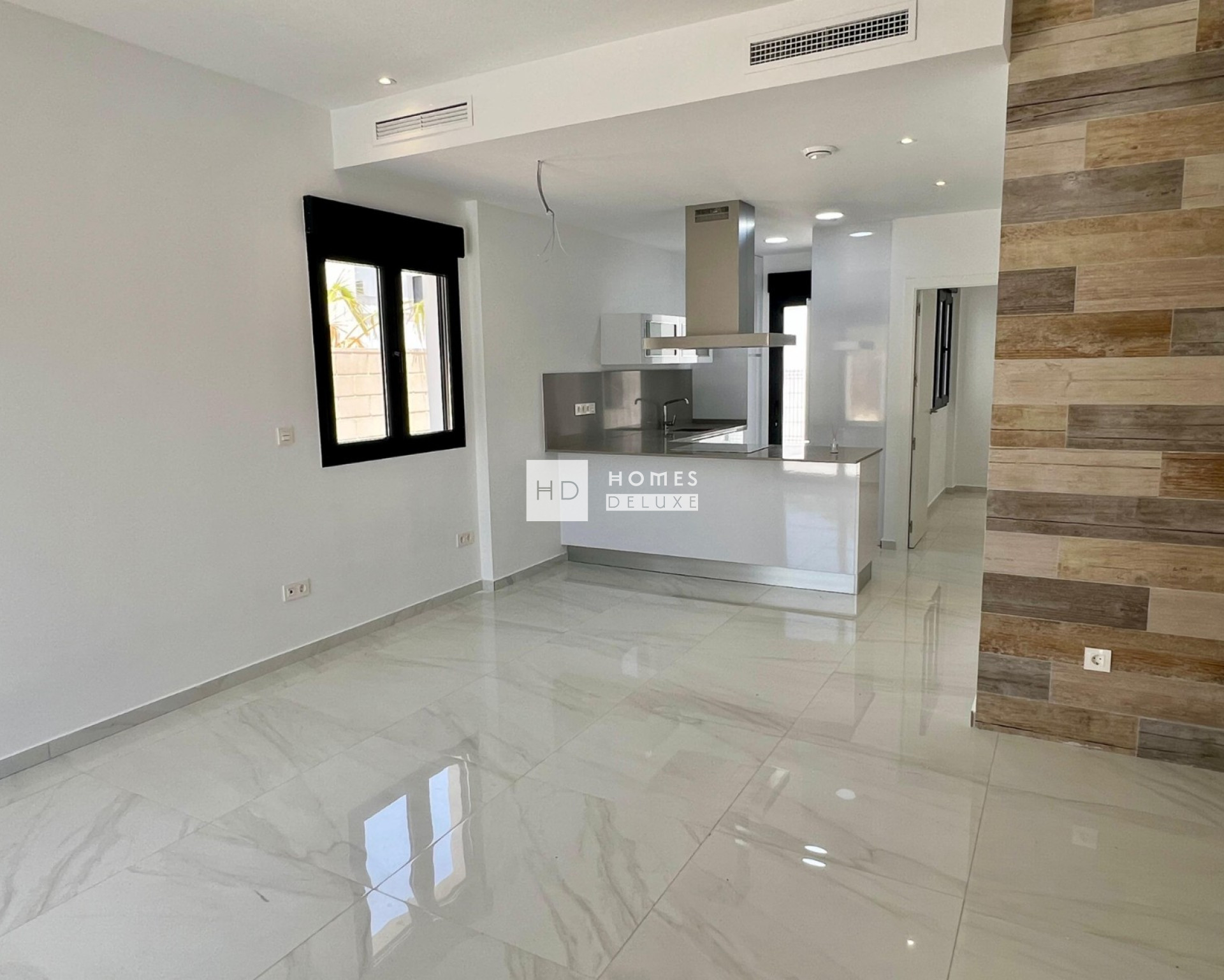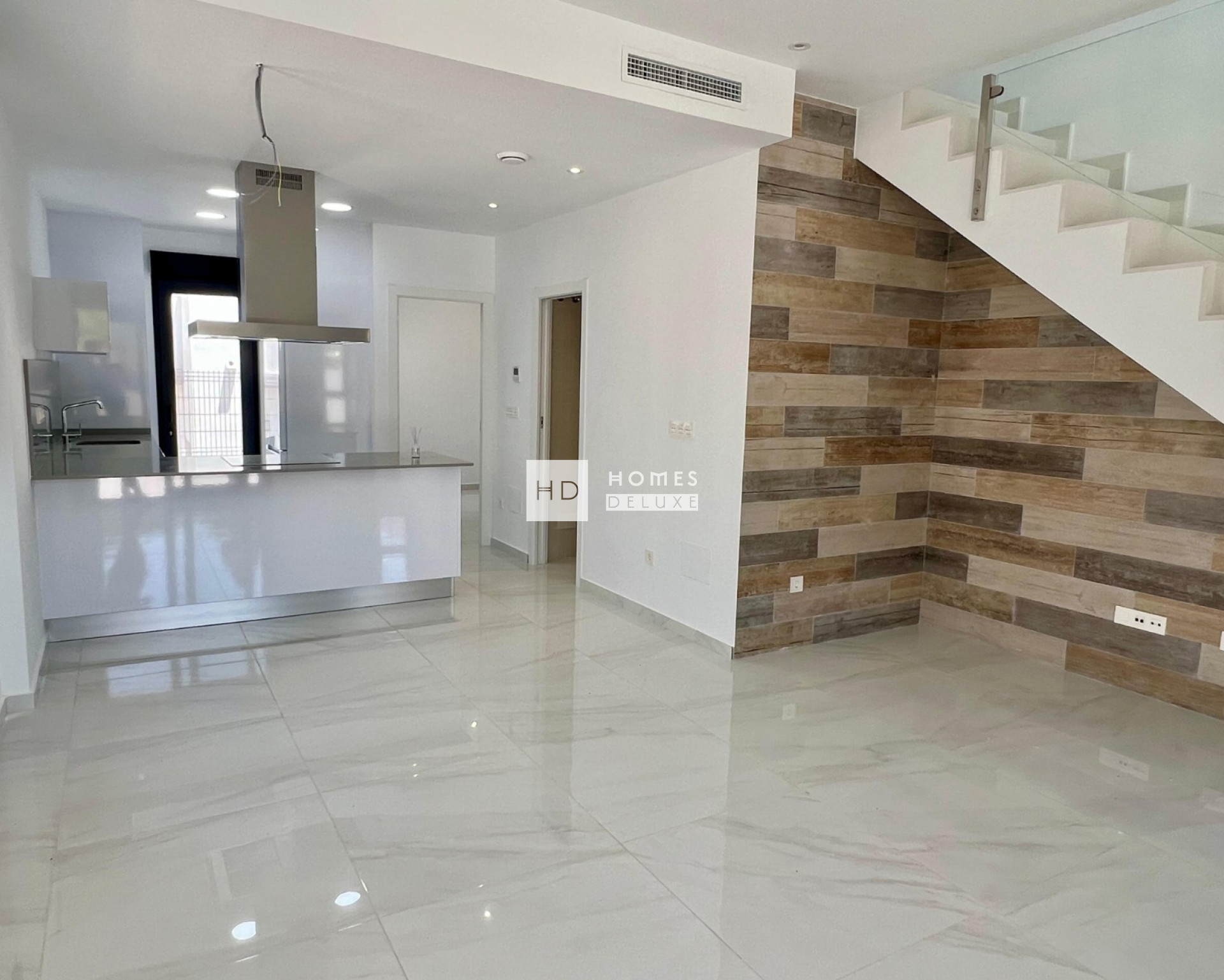The property is built with high quality materials and modern finishes, and also boasts an A-Class Energy Performance Certificate to enjoy maximum comfort and energy saving. The plot size of 167m2 boasts a private garden and terrace area with an inviting private swimming pool of 5 x 2.5m. Extending the exterior space further is the extensive rooftop solarium of 37m2, making the most of outdoor living in Spain.