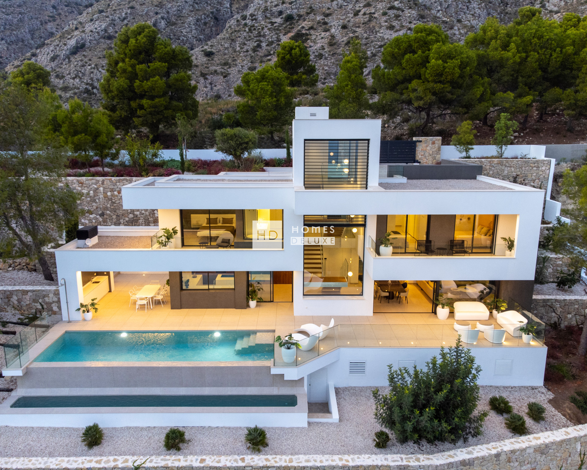 Villa Tempo, in Azure Altea Homes 2, is a home designed for you to enjoy time and share it with your loved ones. From the first step you take, a large picture window on the upper floor welcomes you with spectacular views of the Mediterranean, setting the tone for a house that exudes spaciousness, light, and elegance.