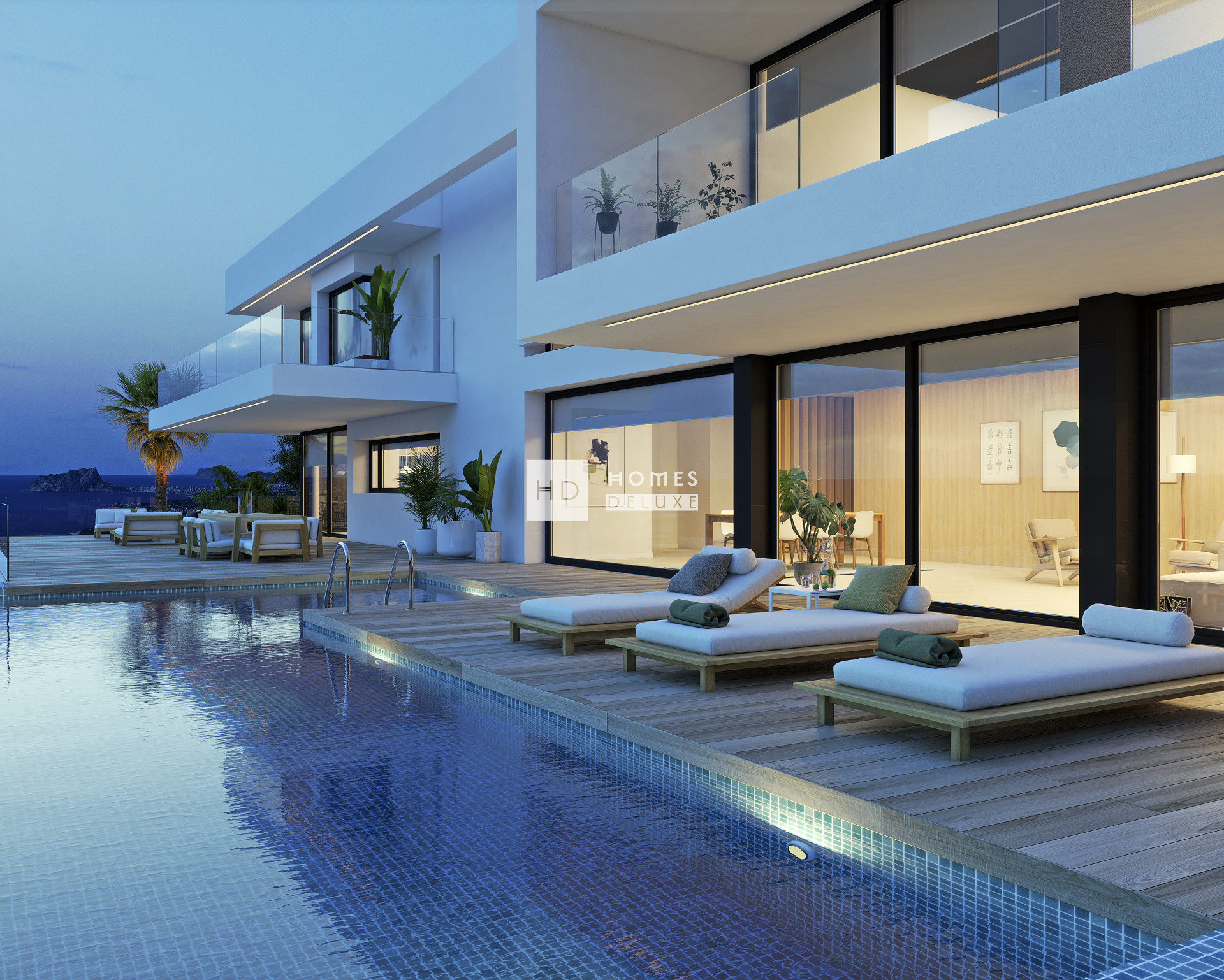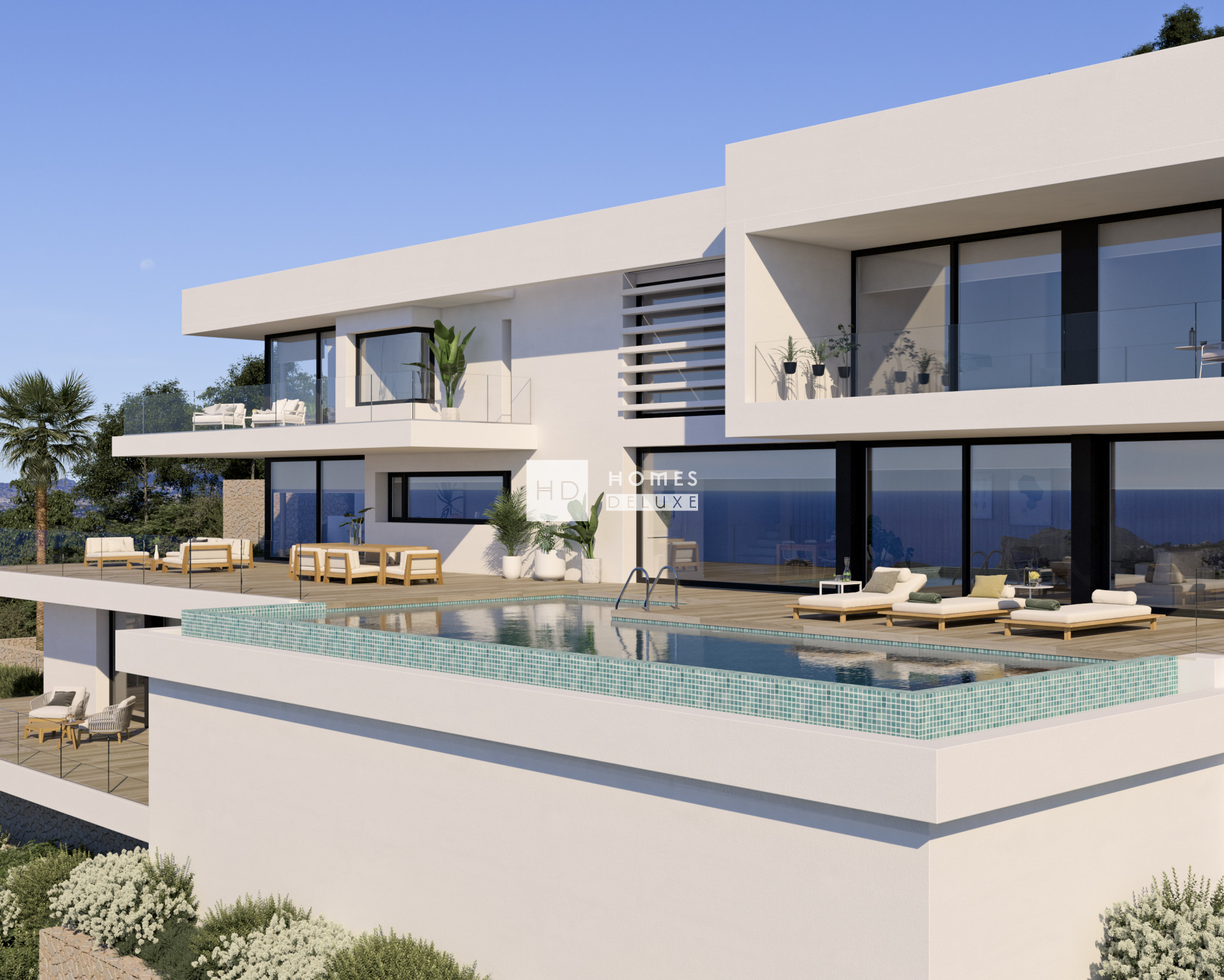 Villa Marblau is situated in a privileged location in the exclusive Jazmines residential estate, a house that redefines luxury and privacy. Its modern architecture features clean lines and high-class materials, creating an experience where design blends with the Mediterranean landscape to offer a distinguished and serene lifestyle. The house is accessed from the top floor, where there is a large covered outdoor car park and an enclosed garage with capacity for several vehicles. From this floor, the hall leads to the leisure areas and the rest of the house via a lift and an interior staircase, ensuring comfortable and functional circulation between all floors of the house. The house spans three floors, featuring five bedrooms and nine bathrooms. On the main floor, we can highlight a spacious living room that opens to the designer kitchen featuring a central island and walnut and anthracite finishes. The master suite is also on this same floor, featuring a dressing room, a private bathroom, and direct access to the terrace. Upstairs, three bedrooms with en-suite bathrooms and private terraces will ensure the comfort of your guests. The lower level, designed for leisure and relaxation, features a cinema room equipped with a surround sound system, a gym, a heated indoor pool, a sauna, and a hammam, as well as a guest apartment with a kitchen, a living room, and an additional bedroom with an en-suite bathroom. Villa Marblau is equipped with a complete range of high-end equipment: duct air conditioning with Mitsubishi Electric® technology, underfloor heating with an Ecodam hybrid system, home automation to control the appliances, exterior carpentry with thermal insulation and solar glazing, integrated appliances from firms such as Miele and Siemens, and technical design lighting from FLOS and Arkoslight. Each bathroom is a showcase of contemporary elegance with suspended toilets, over-the-counter sinks, recessed taps, and large-format tiling in warm, sophisticated tones. The horizon becomes a permanent spectacle from the terrace: the sea, the Peñón de Ifach and the coast unfold before your eyes like a living work of art. The infinity pool seems to merge with the blue sky, inviting you to relax and enjoy the essence of life.