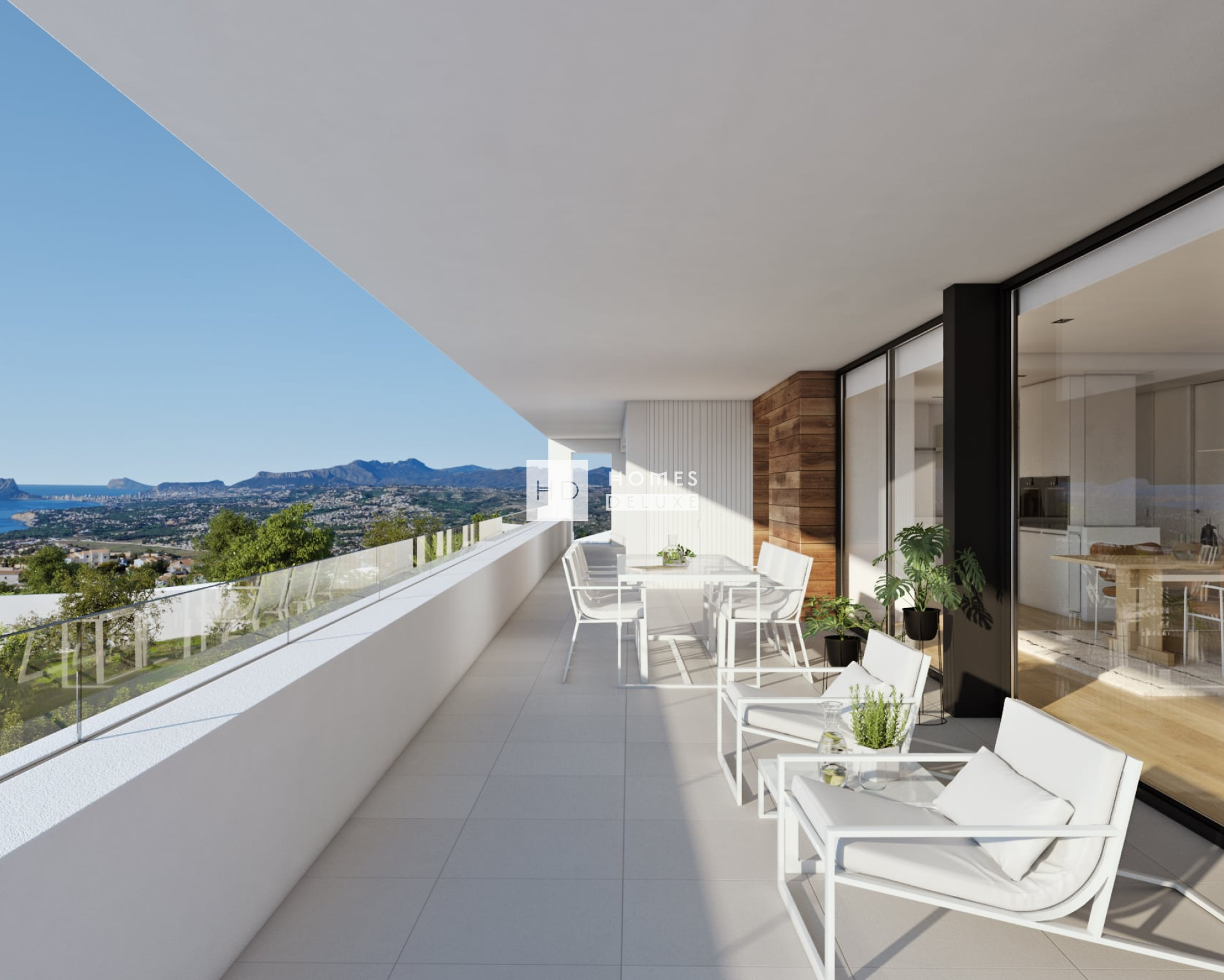 Villa Brisa del Mar, situated on a prime plot within the exclusive Residencial Jazmines, just a short drive from Moraira. This stunning propertyis distinguished by its modern architecture characterised by clean lines that blend seamlessly into the natural Mediterranean environment. The façade incorporates noble materials such as stone and wood, adding warmth and character that contrasts beautifully with the pristine white of its sleek volumes. The interior has been thoughtfully designed to maximise connection with the landscape and sea. The spacious open-plan living area—which includes the living room, dining space, and kitchen— provides access to a main terrace that spans the entire façade. Large sliding picture windows blur the boundary between indoors and outdoors, offering uninterrupted views of the sea and Peñón de Ifach from every part of the room. Interior finishes, with wooden floors, bespoke carpentry, and carefully selected furniture in neutral tones, evoke serenity, comfort, and sophistication. On the main floor, there are three double bedrooms, all with direct access to the terrace and built-in wardrobes, along with a master suite that boasts a generous dressing room and en-suite bathroom. Every element is crafted to create a spacious, functional, relaxed, and elegant environment. The outdoor area serves as a private sanctuary, featuring a Mediterranean garden, relaxation zones, and a stunning infinity pool with a curved design, which adds a sculptural element to the landscape and serves as the focal point for outdoor living. When illuminated at night, warm lighting accentuates the architecture and greenery, fostering a cosy and inviting atmosphere. Access from the street to Villa Brisa del Mar is straightforward via a smooth paved ramp leading directly to a covered porch that can accommodate two vehicles. This space is integrated into the side façade, blending seamlessly thanks to its stone cladding and cohesive architectural style. From the covered garage, you can enter the basement directly, connected internally to the house via a staircase, offering privacy, practicality, and protection from the weather.
