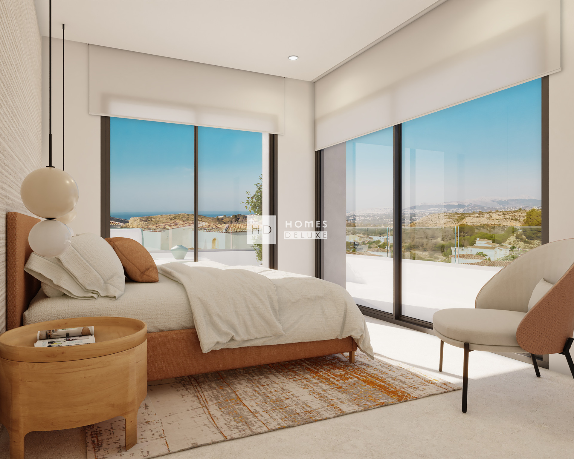 Villa Bianca, situated on plot 74 of Residencial Magnolias in Cumbre del Sol, stands out for its contemporary architecture, spacious interiors, and orientation towards the Mediterranean Sea. This exclusive development combines modern design, practicality, and sweeping horizon views, providing a lifestyle full of comfort and elegance. Villa Bianca is built on two floors and a basement. The main floor is the heart of the house: an open space where the kitchen, dining area, and living room merge, all with direct access to the terrace and infinity pool. This level also includes an en-suite bedroom and a guest WC. Upstairs are two generous bedrooms with en-suite bathrooms and access to a large private terrace, perfect for enjoying the weather and the views. The basement offers over 80 m² of open space, complete with a private terrace, and can be configured as a guest bedroom, gym, office, or any other space the future owner may require. The interior design has been carefully planned, using a palette of natural materials like wood, stone, and neutral colours that add warmth to the spaces. The kitchen stands out for its practicality and modern look, featuring top-brand appliances and a central island with a breakfast bar. The dining and living areas, filled with natural light thanks to large windows, are connected to the outside through decor that prioritises comfort without sacrificing elegance. Outside, the infinity pool becomes the focal point of outdoor life, with lounging areas, outdoor dining, and a garden terrace overlooking the sea. The entire project has been designed to be functional, efficient, and aesthetically pleasing, with particular attention to detail and finishes.