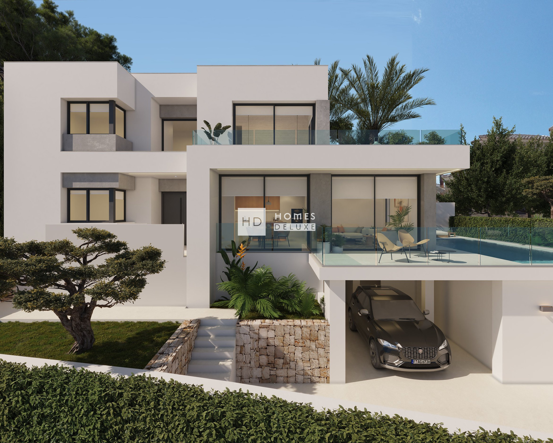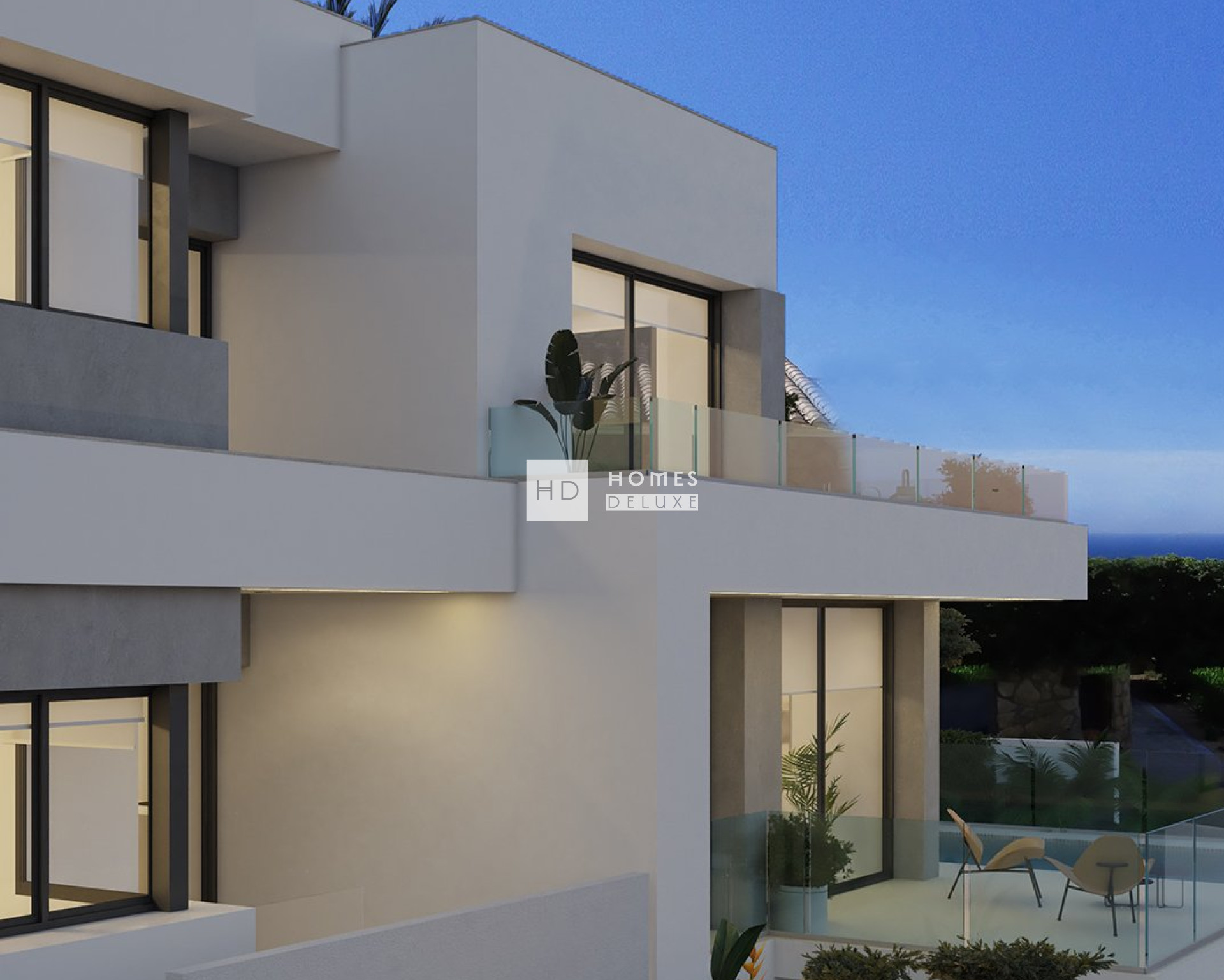 Villa Bianca, situated on plot 74 of Residencial Magnolias in Cumbre del Sol, stands out for its contemporary architecture, spacious interiors, and orientation towards the Mediterranean Sea. This exclusive development combines modern design, practicality, and sweeping horizon views, providing a lifestyle full of comfort and elegance. Villa Bianca is built on two floors and a basement. The main floor is the heart of the house: an open space where the kitchen, dining area, and living room merge, all with direct access to the terrace and infinity pool. This level also includes an en-suite bedroom and a guest WC. Upstairs are two generous bedrooms with en-suite bathrooms and access to a large private terrace, perfect for enjoying the weather and the views. The basement offers over 80 m² of open space, complete with a private terrace, and can be configured as a guest bedroom, gym, office, or any other space the future owner may require. The interior design has been carefully planned, using a palette of natural materials like wood, stone, and neutral colours that add warmth to the spaces. The kitchen stands out for its practicality and modern look, featuring top-brand appliances and a central island with a breakfast bar. The dining and living areas, filled with natural light thanks to large windows, are connected to the outside through decor that prioritises comfort without sacrificing elegance. Outside, the infinity pool becomes the focal point of outdoor life, with lounging areas, outdoor dining, and a garden terrace overlooking the sea. The entire project has been designed to be functional, efficient, and aesthetically pleasing, with particular attention to detail and finishes.