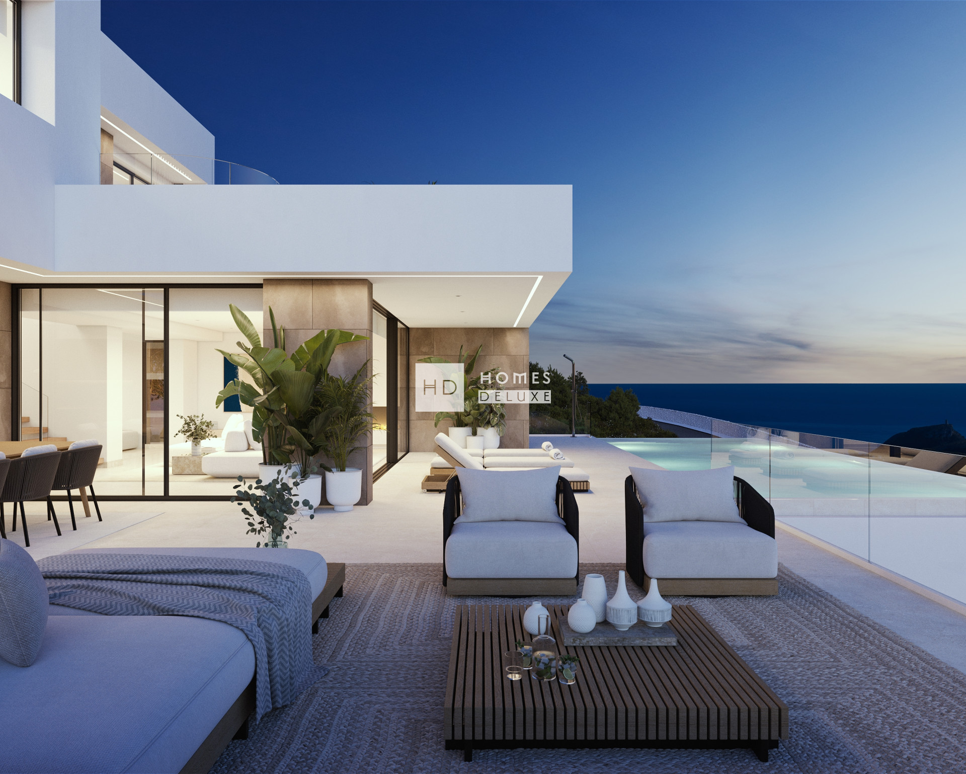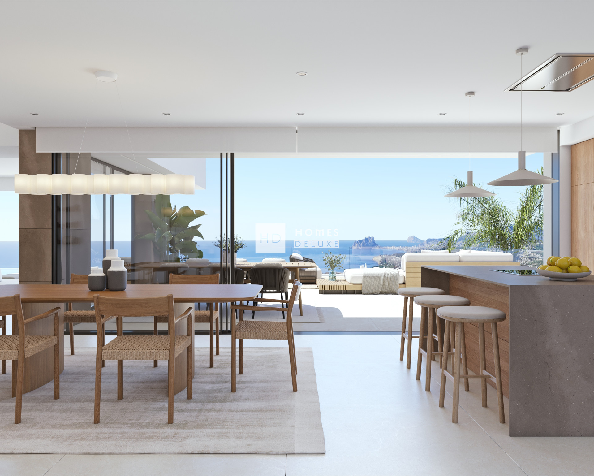Villa Lavanda, located on the exclusive plot 93 of Residencial Jazmines (Cumbre del Sol), embodies the perfect blend of modern design, comfort, and a privileged location overlooking the sea. It is a luxury home designed for those seeking the best of the northern Costa Blanca. The architectural design of Villa Lavanda is notable for its modern aesthetic featuring clean lines, horizontal forms, expansive glazed areas, and a palette of natural materials that blend seamlessly with the surrounding landscape. Each room has been positioned to maximise natural light and provide uninterrupted panoramic views of the sea and the iconic Peñón de Ifach. The house is built on three floors: Main floor: This level houses an impressive daytime area, with a large living room and open kitchen with central island, picture windows that connect to the outdoor terrace, the outdoor dining area, and an infinity pool. The master bedroom is also located on this floor, featuring a dressing room, an en-suite bathroom with a free-standing bathtub, rain shower, and direct access to the terrace. Top floor: An area designated for secondary bedrooms, all featuring en-suite bathrooms and terraces with spectacular sea views. Basement: An open space with natural light suitable for multiple purposes – gym, leisure area, cinema room, or guest apartment. It also features a laundry room and storage room. Villa Lavanda is fitted with top-quality materials and finishes, intended to provide elegance, practicality, and durability, including: Large-format porcelain stoneware flooring. A designer kitchen with luxury furnishings and built-in appliances. Countertops in neutral and warm colours, illuminated softly by indirect LED lighting. Contemporary bathroom designs featuring suspended toilets, recessed taps, and backlit mirrors. Underfloor heating and air conditioning with a zoning system Home automation to control lighting, air conditioning, and blinds The exterior of the house offers a quintessential Mediterranean experience. The infinity pool seamlessly blends with the sea, while the terrace, furnished with chill-out areas, outdoor dining, and sun loungers, invites you to enjoy every sunset. The upper floor also features a sun terrace with a private jacuzzi, perfect for unwinding while taking in panoramic views of the coastline. Villa Lavanda is part of Residencial Jazmines, a luxury area within the Cumbre del Sol estate, in Benitachell, situated between Jávea and Moraira. It is one of the most desirable locations in the Mediterranean, offering private security, exclusive services, an international school, restaurants, sports facilities, and access to the stunning Cala del Moraig. Villa Lavanda is ideal for those seeking a luxury primary residence, a second home to enjoy the Mediterranean climate all year round, or an exclusive investment property in a prime location with substantial appreciation potential.