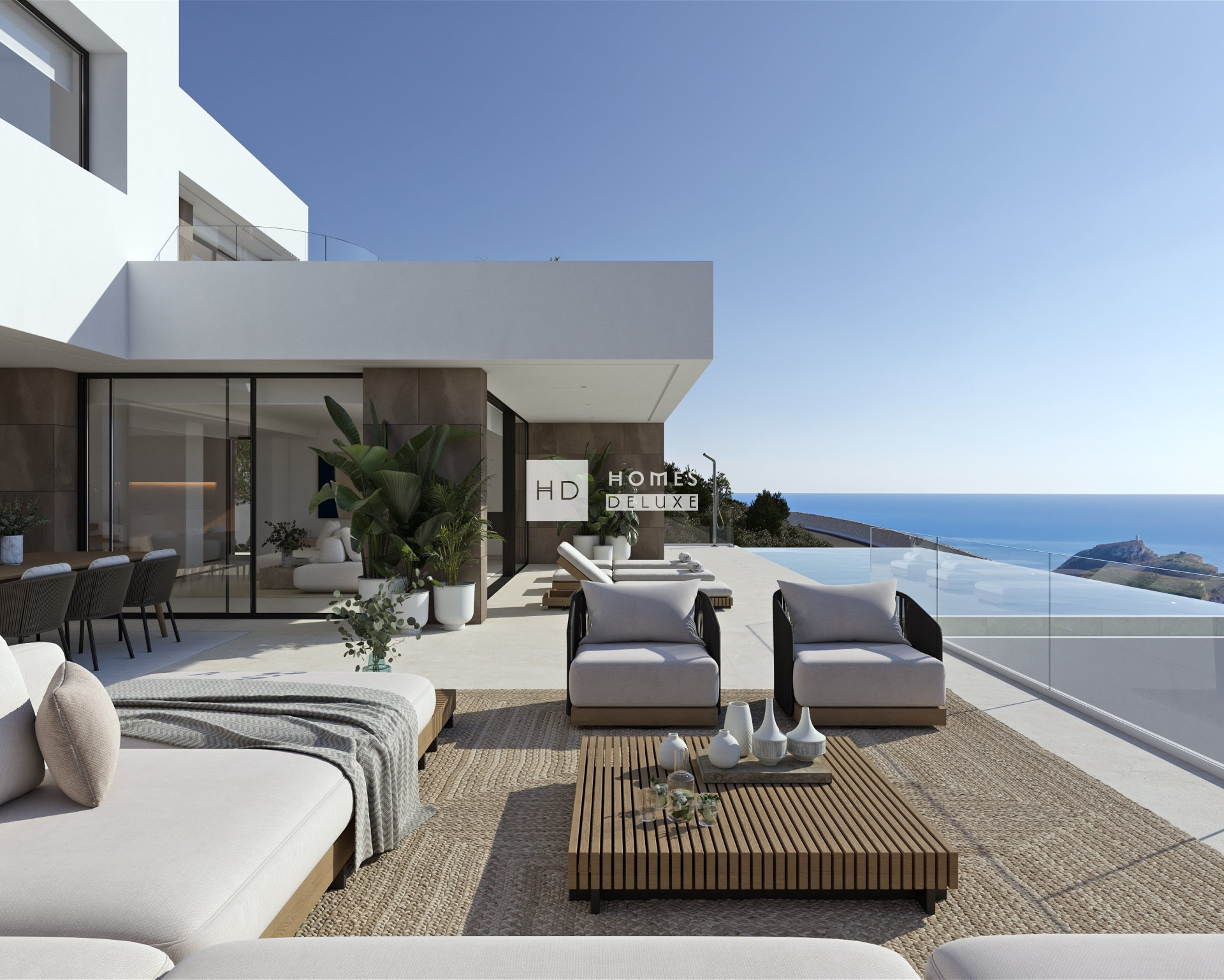 Villa Lavanda, located on the exclusive plot 93 of Residencial Jazmines (Cumbre del Sol), embodies the perfect blend of modern design, comfort, and a privileged location overlooking the sea. It is a luxury home designed for those seeking the best of the northern Costa Blanca. The architectural design of Villa Lavanda is notable for its modern aesthetic featuring clean lines, horizontal forms, expansive glazed areas, and a palette of natural materials that blend seamlessly with the surrounding landscape. Each room has been positioned to maximise natural light and provide uninterrupted panoramic views of the sea and the iconic Peñón de Ifach. The house is built on three floors: Main floor: This level houses an impressive daytime area, with a large living room and open kitchen with central island, picture windows that connect to the outdoor terrace, the outdoor dining area, and an infinity pool. The master bedroom is also located on this floor, featuring a dressing room, an en-suite bathroom with a free-standing bathtub, rain shower, and direct access to the terrace. Top floor: An area designated for secondary bedrooms, all featuring en-suite bathrooms and terraces with spectacular sea views. Basement: An open space with natural light suitable for multiple purposes – gym, leisure area, cinema room, or guest apartment. It also features a laundry room and storage room. Villa Lavanda is fitted with top-quality materials and finishes, intended to provide elegance, practicality, and durability, including: Large-format porcelain stoneware flooring. A designer kitchen with luxury furnishings and built-in appliances. Countertops in neutral and warm colours, illuminated softly by indirect LED lighting. Contemporary bathroom designs featuring suspended toilets, recessed taps, and backlit mirrors. Underfloor heating and air conditioning with a zoning system Home automation to control lighting, air conditioning, and blinds The exterior of the house offers a quintessential Mediterranean experience. The infinity pool seamlessly blends with the sea, while the terrace, furnished with chill-out areas, outdoor dining, and sun loungers, invites you to enjoy every sunset. The upper floor also features a sun terrace with a private jacuzzi, perfect for unwinding while taking in panoramic views of the coastline. Villa Lavanda is part of Residencial Jazmines, a luxury area within the Cumbre del Sol estate, in Benitachell, situated between Jávea and Moraira. It is one of the most desirable locations in the Mediterranean, offering private security, exclusive services, an international school, restaurants, sports facilities, and access to the stunning Cala del Moraig. Villa Lavanda is ideal for those seeking a luxury primary residence, a second home to enjoy the Mediterranean climate all year round, or an exclusive investment property in a prime location with substantial appreciation potential.
