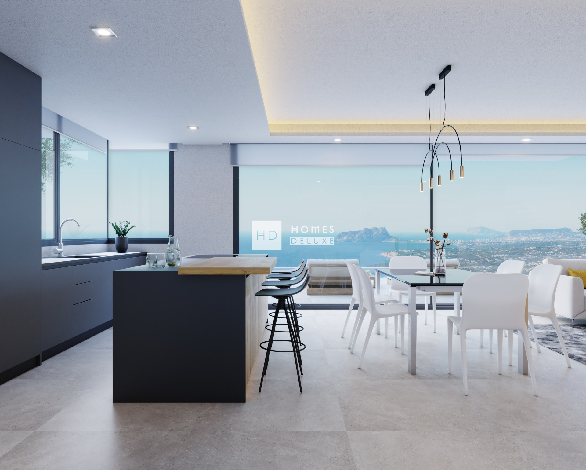Located in the prestigious Jazmines residential area, within Cumbre del Sol, Villa Rubik represents the essence of modern architecture on the northern Costa Blanca. A new-build property designed for those seeking design, comfort and spectacular sea views in an incomparable natural setting. Its location, between Moraira and Jávea, allows you to enjoy the tranquillity of an exclusive residential area with all amenities just a few minutes away: international school, sports facilities, restaurants and crystal-clear coves. The architectural design of Villa Rubik stands out for its minimalist aesthetics and its balance between volumes and materials. Clean-lined façades, large windows and a careful combination of natural stone and light tones enhance the light and the connection with the landscape. Each element has been designed to integrate the house into the slope of the land and make the most of the panoramic views of the Mediterranean. Spread over three levels, Villa Rubik offers a functional and elegant layout. The main floor houses the living room, dining room and open-plan kitchen with central island, all in a single space that opens onto the terrace and infinity pool. On this same level is the master bedroom with en-suite bathroom and dressing room. On the lower floor are two additional bedrooms, both with private bathrooms and access to the garden, while the upper level has a suite with a private terrace, ideal as a guest room or relaxation space. The landscape design completes the experience, combining Mediterranean vegetation with landscaped areas, stone walls and terraces that frame the stunning sea views. The infinity pool becomes the visual focal point of the complex, merging with the horizon. Villa Rubik incorporates the latest technologies in energy efficiency and comfort: underfloor heating, aerothermal system, high-quality carpentry, home automation, solar panels and pre-installation for electric vehicles. A modern, bright and sustainable home that redefines Mediterranean luxury.