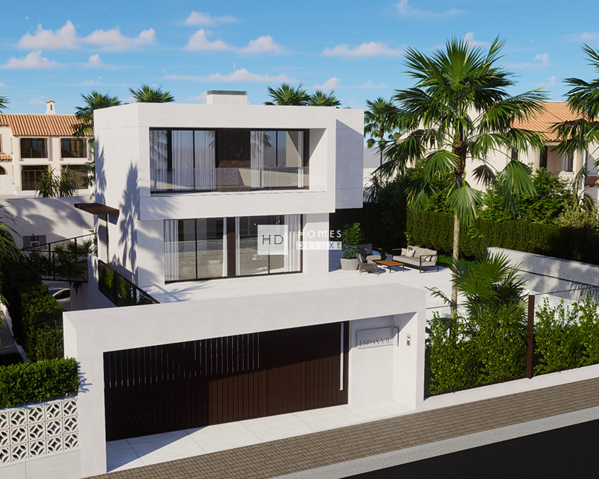 A brand new spectacular modern luxury detached villa with 5 bedrooms 5 bathrooms in the in the prestigious neighbourhood of La Zenia - Orihuela Costa (Alicante), within walking distance to all amenities, just 750 meters from the paradisiacal beaches of Cala Capitán and Cala de la Caleta, and close to several golf courses in the area.
