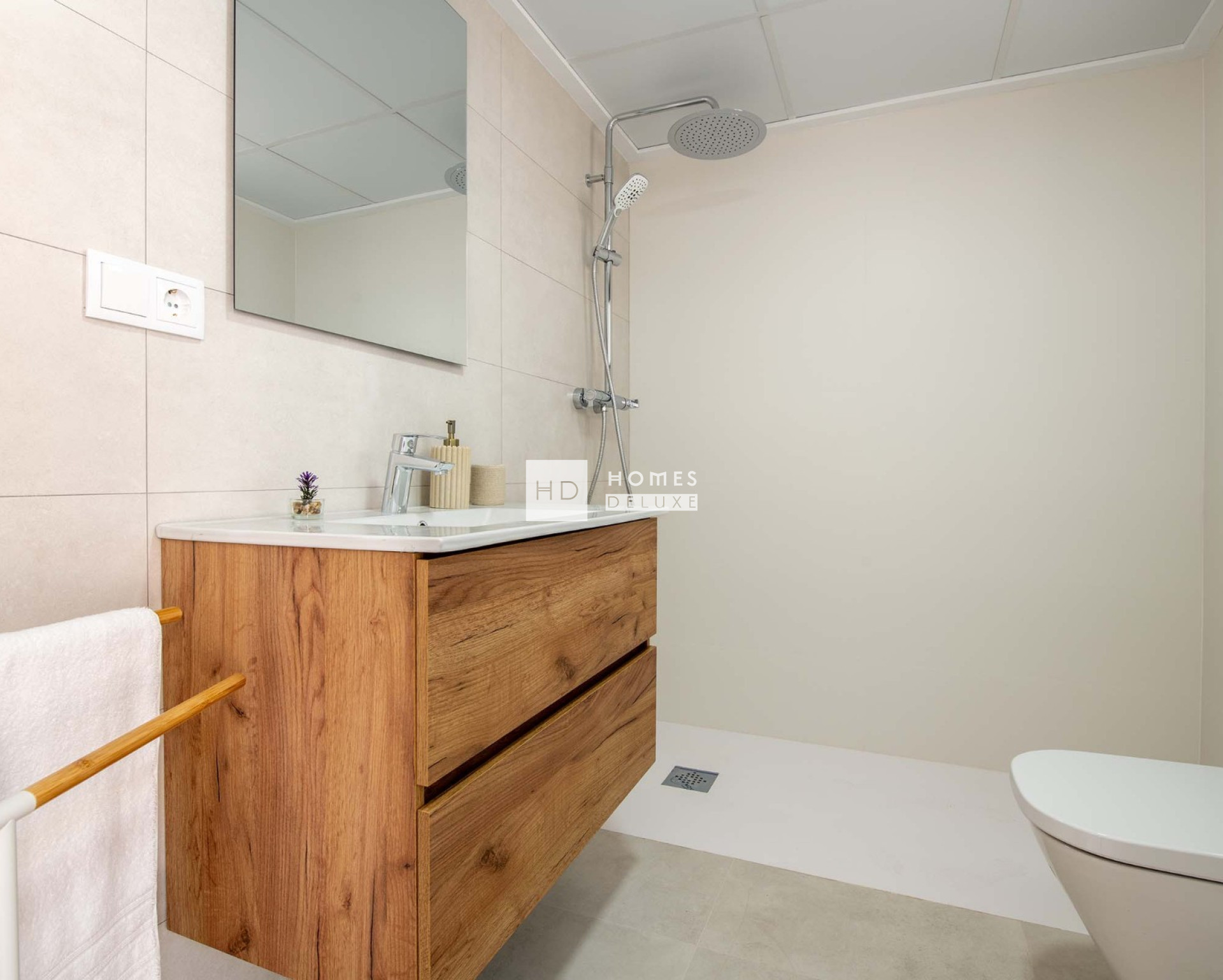 Each property enjoys plenty outdoor living space, the apartments have the choice of ground floors with a private garden or top floors with a private rooftop solarium. The townhouses boast an ample private garden and a rooftop solarium making the most of outdoor living in Spain. In addition, the residents have the enjoyment of the lovely landscaped communal areas with artificial grass, and a large communal swimming pool.