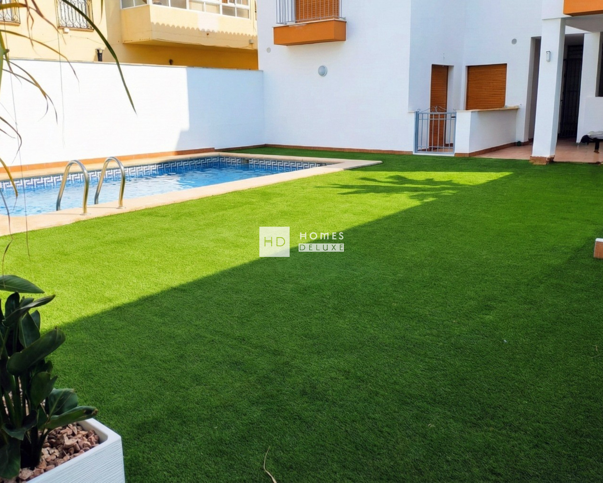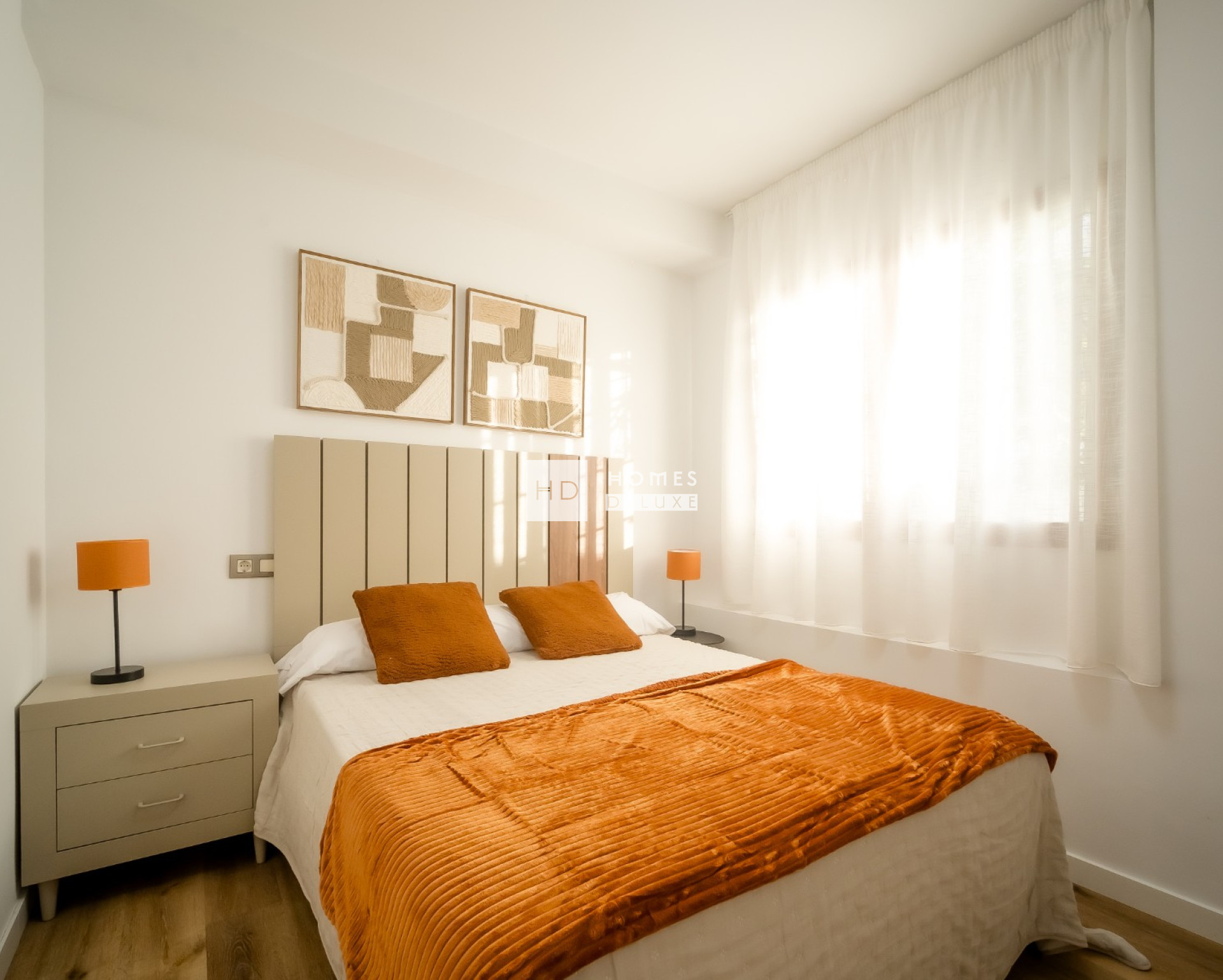 The project offers the choice of ground floor apartments or top floor apartments all with 2 bedrooms and 2 bathrooms and a large rooftop solarium to enjoy the sun and open views every day of the year, as well as underground parking and a storage room. The residents have the enjoyment of a communal swimming pool and relaxation area with artificial grass.