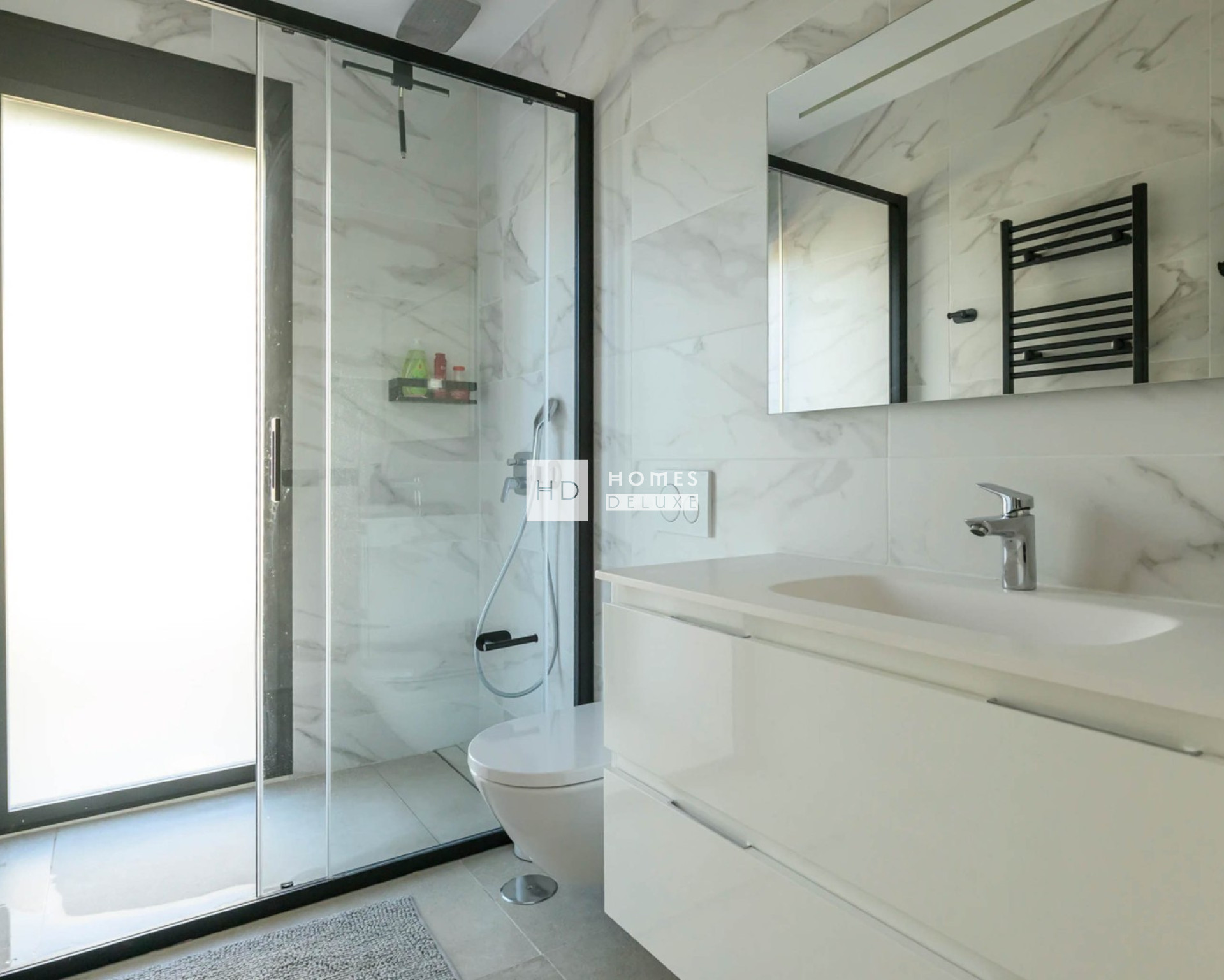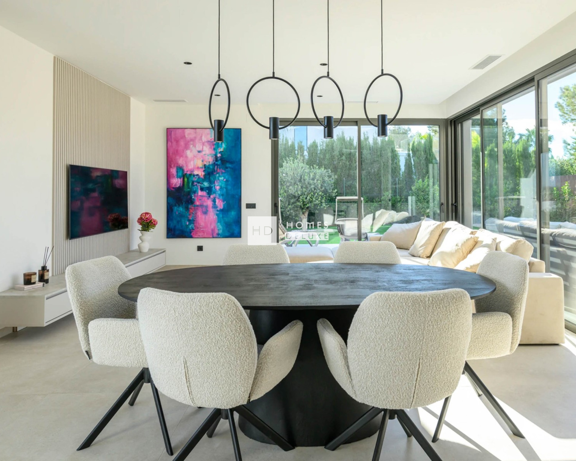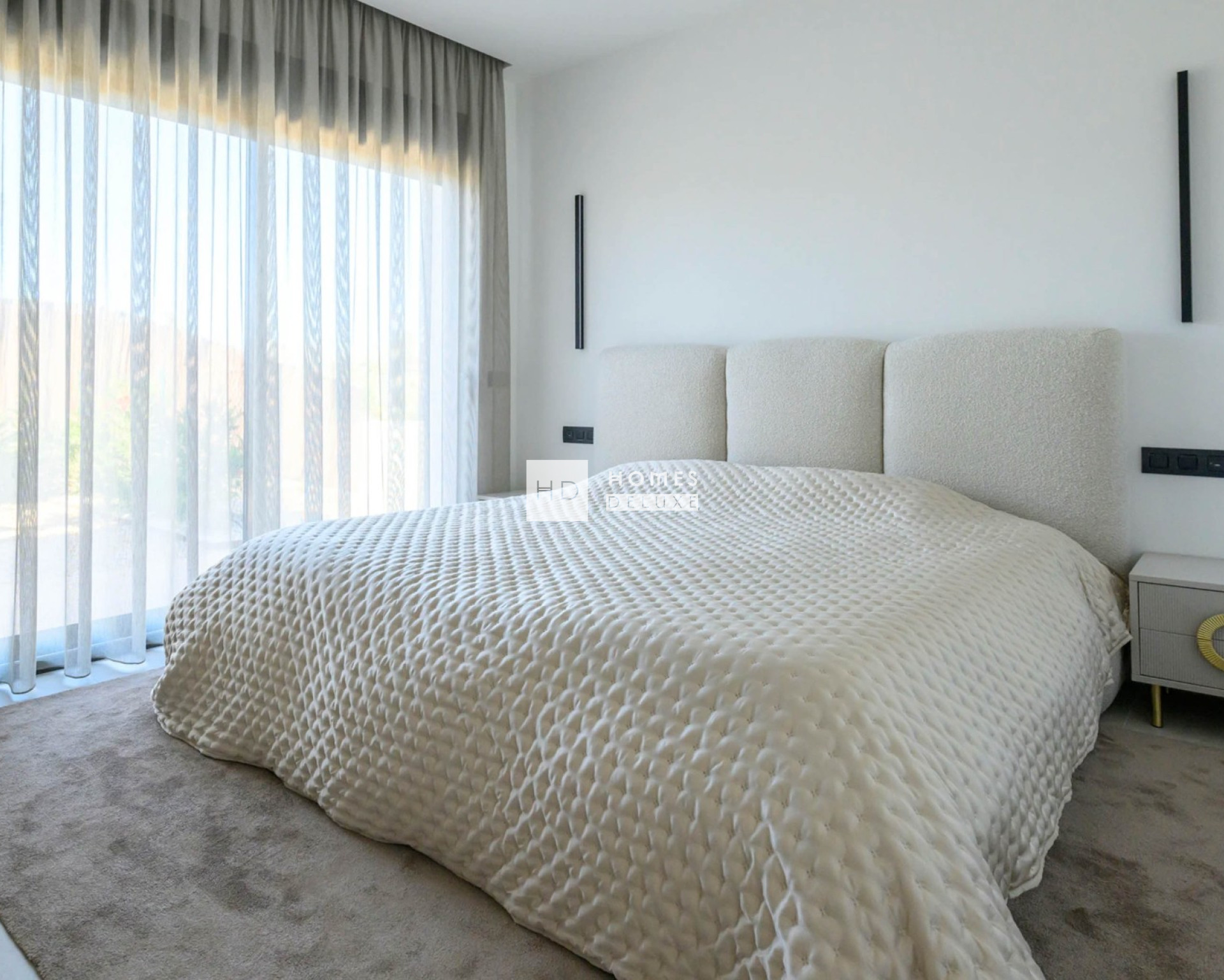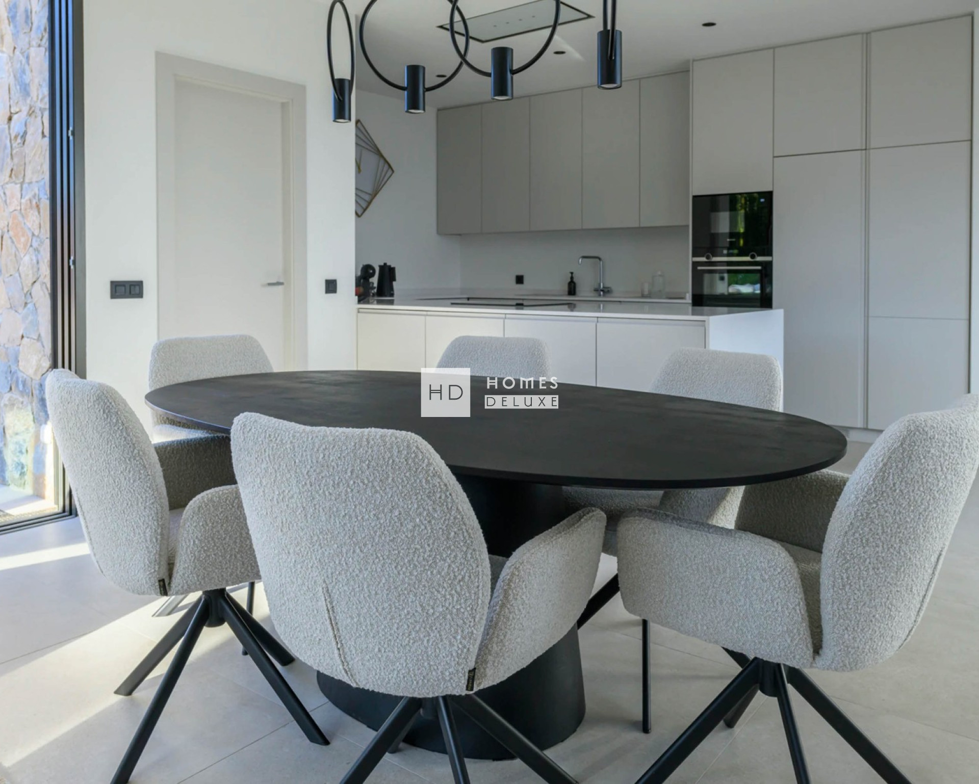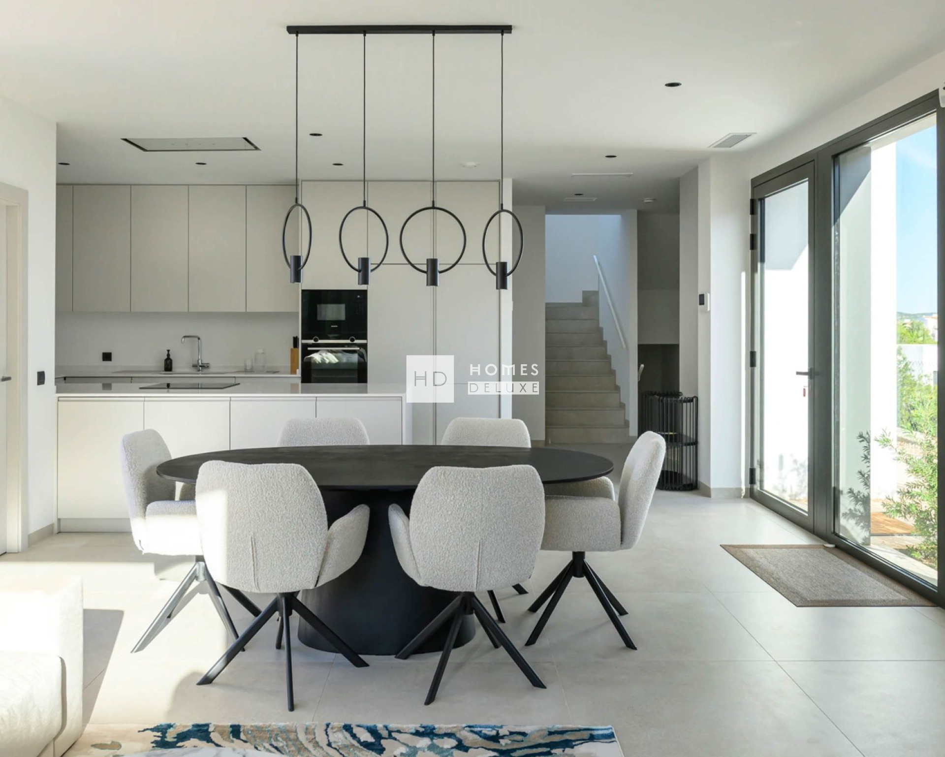 Modern detached Villa with 3 bedrooms and private pool situated in community Orquidea in Las Colinas Golf. Available fully furnished, build on two levels with spacious terraces and open views. Huge garage/basement and perfect orientation for the winter sun.