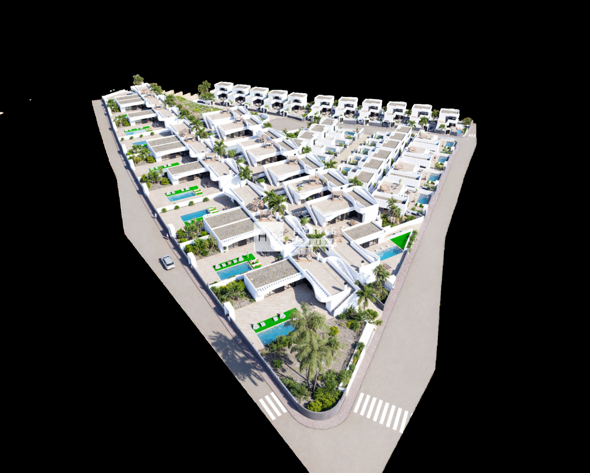 A brand new project of 53 semi detached and detached villas with 3 bedrooms 2 bathrooms and private swimming pool located in La Finca Golf Resort - Algorfa (Alicante), an exclusive resort with a large selection of amenities and facilities, and only a 20 minutes from the beautiful sandy beaches in Guardamar del Segura.