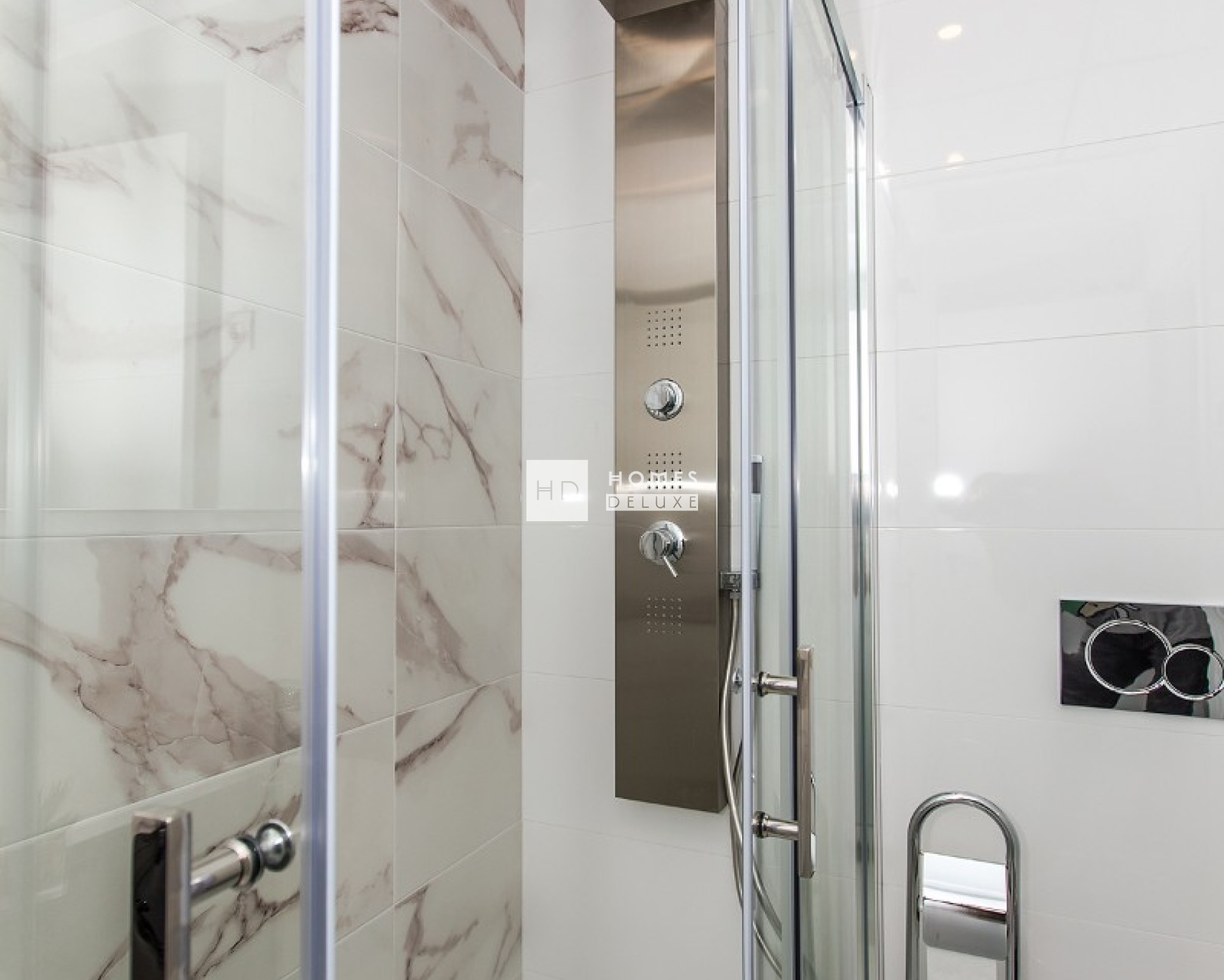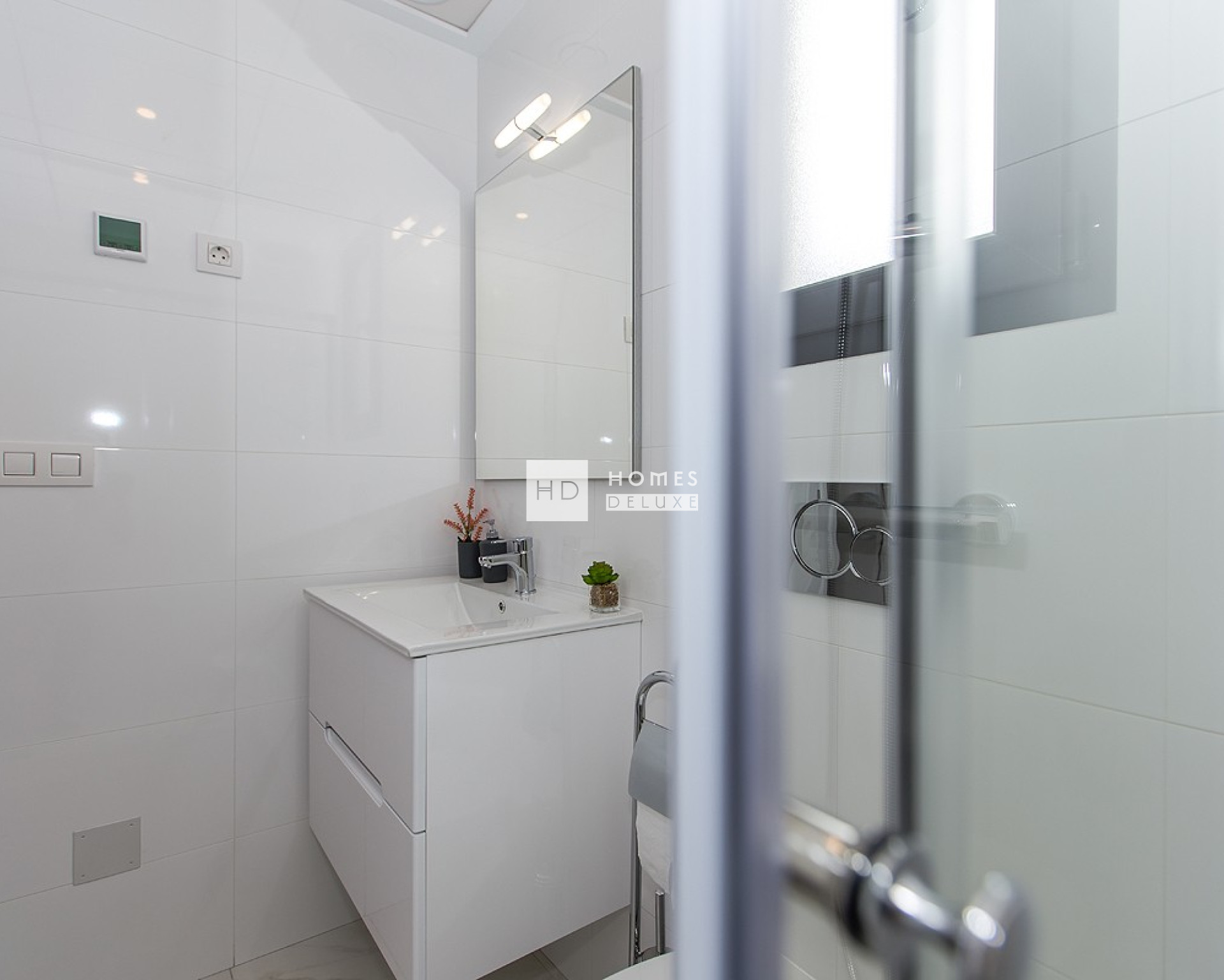 The interior layout comprises of an entrance hallway leading to the spacious open plan lounge and dining area with patio windows opening onto the terrace. Within the main living space is a large American style kitchen in a gloss finish with low and high storage cupboards and a separate utility area. The ground floor level also has a useful guest toilet located near the front entrance. The interior staircase leads you to the first floor level with the Primary bedroom with en-suite bathroom, dressing area, and patio door access onto a private terrace. There are a further two good sized double bedrooms and a family bathroom. The interior staircase of the property also gives access to the extensive rooftop solarium and the basement level with parking for a vehicle with a remote control access door. The standard qualities and finishes are excellent: all the properties include pre-installation of ducted air conditioning, electric blinds in lounge and bedrooms, built in wardrobes in all bedrooms, intercom system and a private garage.