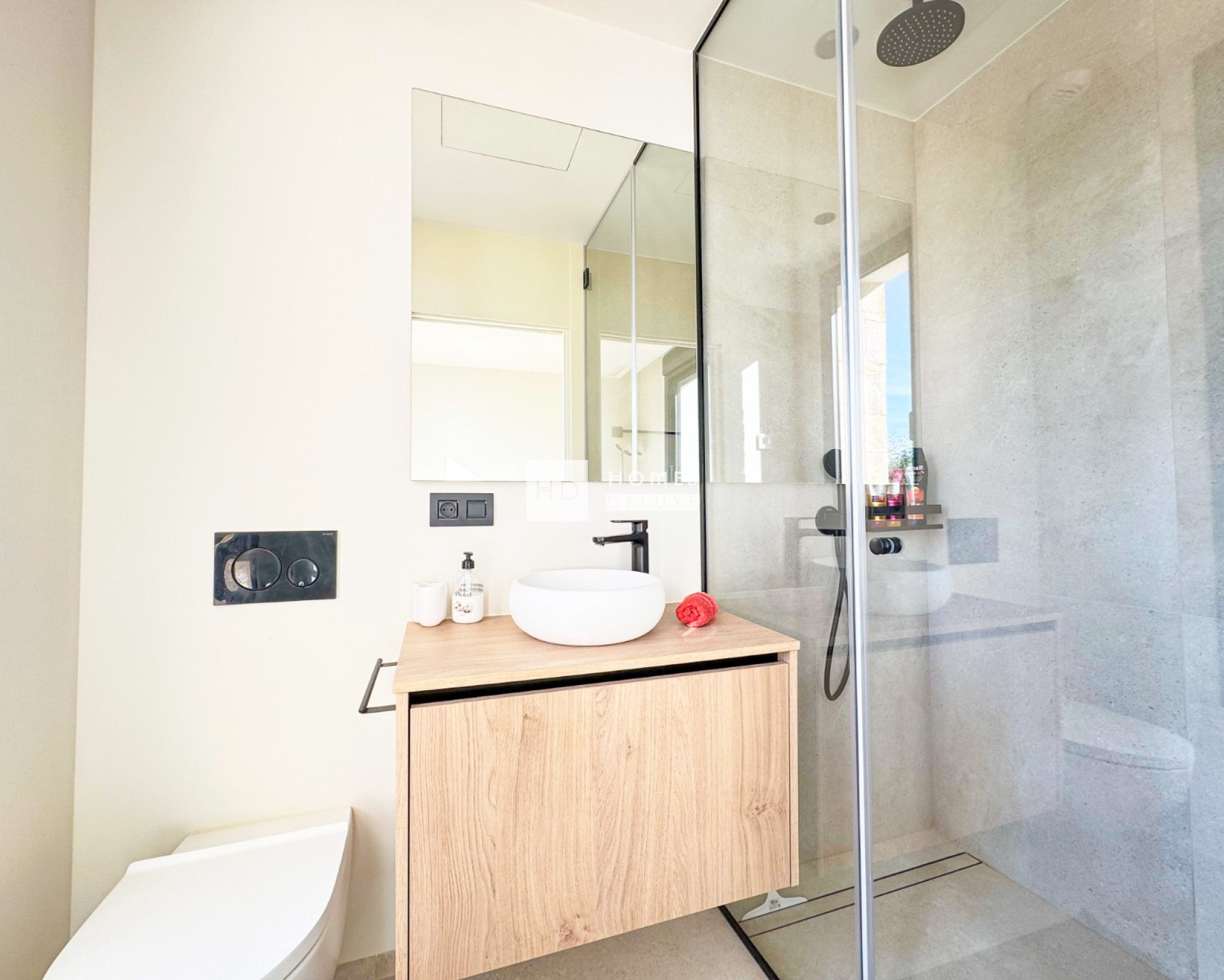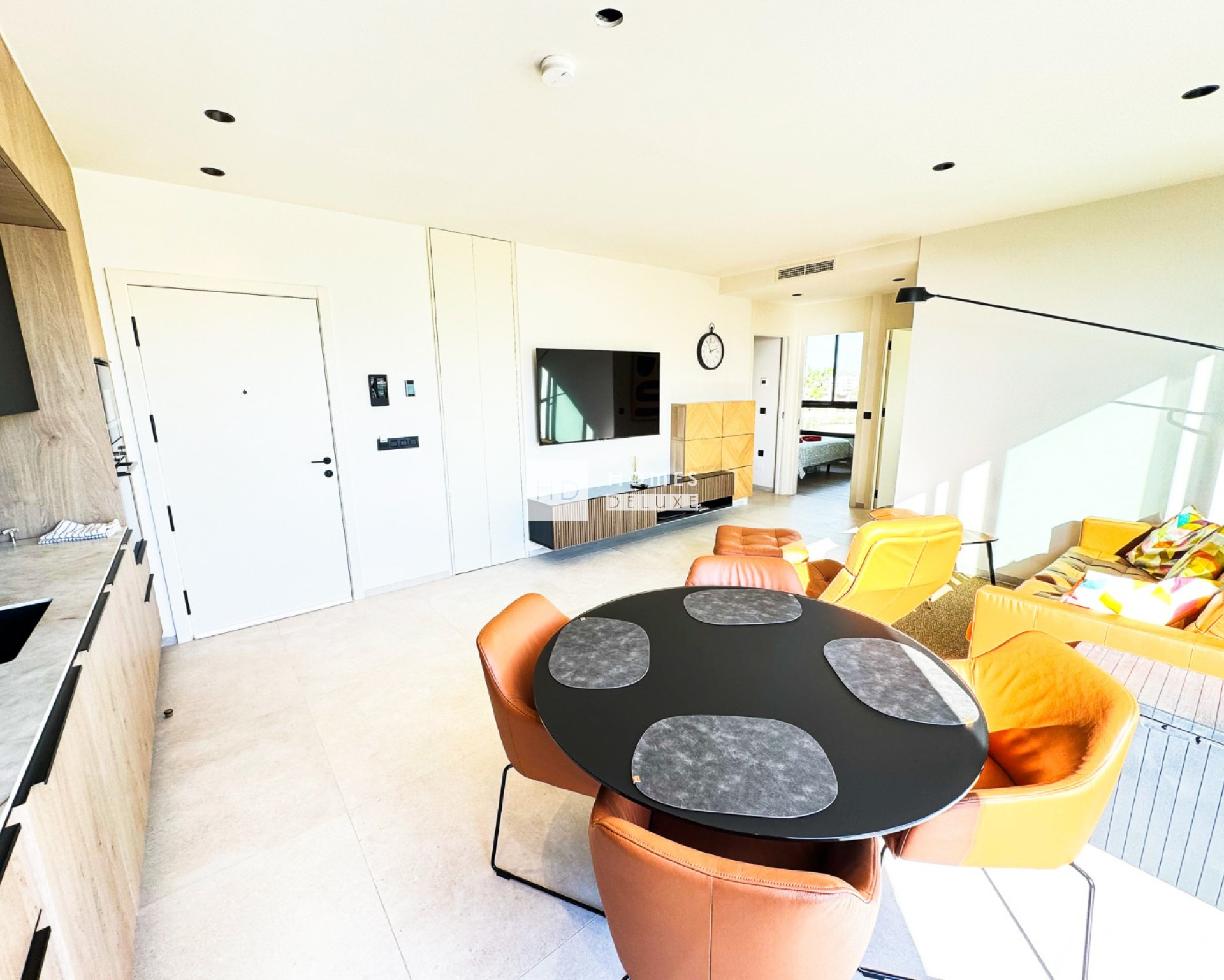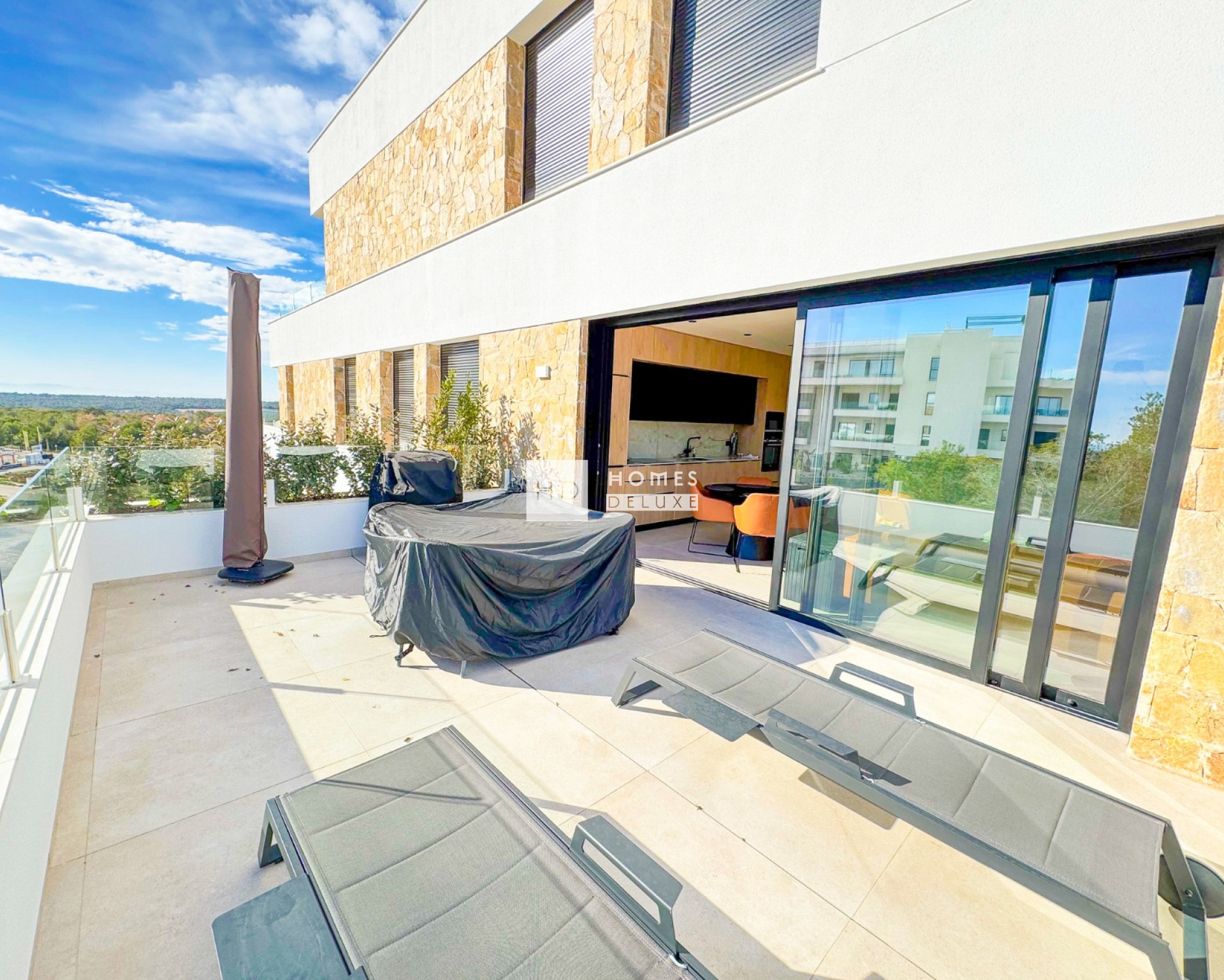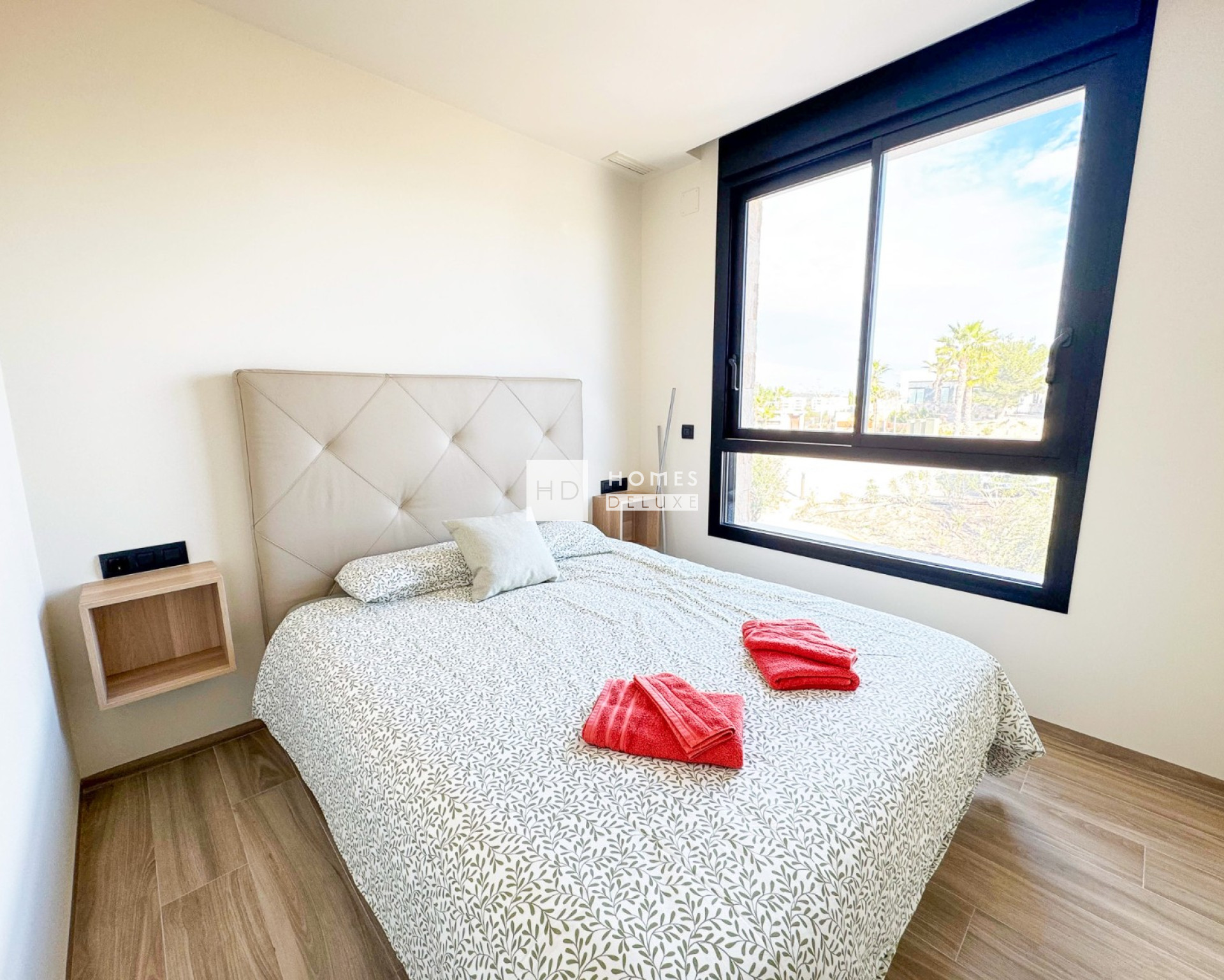 Modern apartment on the 1st floor of community Kumquat in Las Colinas Golf & Country Cub. With 2 bedrooms 2 bathrooms, spacious terrace and open views to the surrounding forest and green areas. This fully furnished property provides quality white goods in the kitchen, A/C (hot/cold) as well as electric floor heating in the bathrooms, electric shutters in all rooms. Underground garage parking and storage room as well as access to the communal swimming pool. Easy lift access to the pool, garage, property and main entrance. You can easily reach the club house (golf course) and all local services by walking about 15 minutes or 2 min drive in the car. The beaches of Campoamor "La Glea" where you can find the private beach club "wow beach" from las colinas is also just 15 min drive away as well as many more white sandy beaches and of course shopping centres, restaurants/bars, supermarkets and entertainment.
