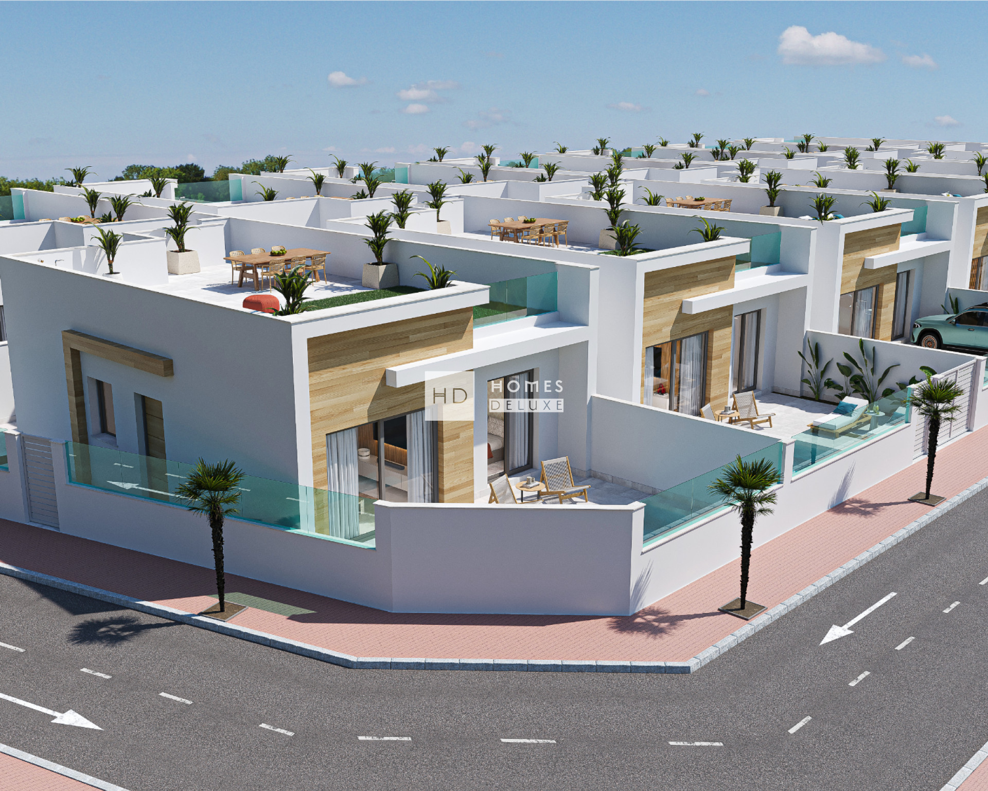 A brand new project of 6 contemporary style detached villas with 3 bedrooms 2 bathrooms and private swimming pool located in El Jimenado - Torre Pacheco (Murcia), just under 15 minutes drive from Murcia International Airport and 20 minutes from the beautiful beaches. Close all services, parks, sports facilities and several golf courses.