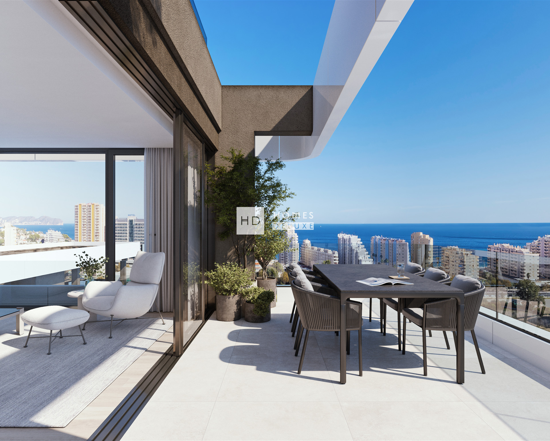 Allure is much more than a housing development; it is a new residential concept in Calpe: Allure – Luxury Urban Resort. A project that combines the comfort of living in a unique location with the comforts of a luxury resort. Located just a few minutes from the sea and all the amenities, this exclusive residential complex redefines urban lifestyle on the Costa Blanca. The two or three-bedroom apartments stand out for their contemporary design, open and bright spaces, large private terraces and a functional layout designed for daily well-being. Each home incorporates state-of-the-art technology to offer maximum comfort, efficiency and safety: Smart Apartments equipped with home automation, climate control, motorised shutters and video surveillance systems. One of the attractive features of Allure is its spectacular common areas; more than 3,500 m² designed to enjoy the Mediterranean lifestyle with a sophisticated touch. Residents can relax in the stylish outdoor pool with a solarium, swim in the heated outdoor pool, play paddle tennis, train in the fully equipped gym, or meet friends and neighbours in the pool bar, garden spaces, and lounge areas. The attention to detail inclusdes controlled access and a parking space and storage room for each home. Allure combines the best of an urban environment with the exclusive atmosphere of a resort. It is an ideal choice for a habitual residence or a holiday home, with all the amenities and in an excellent location.