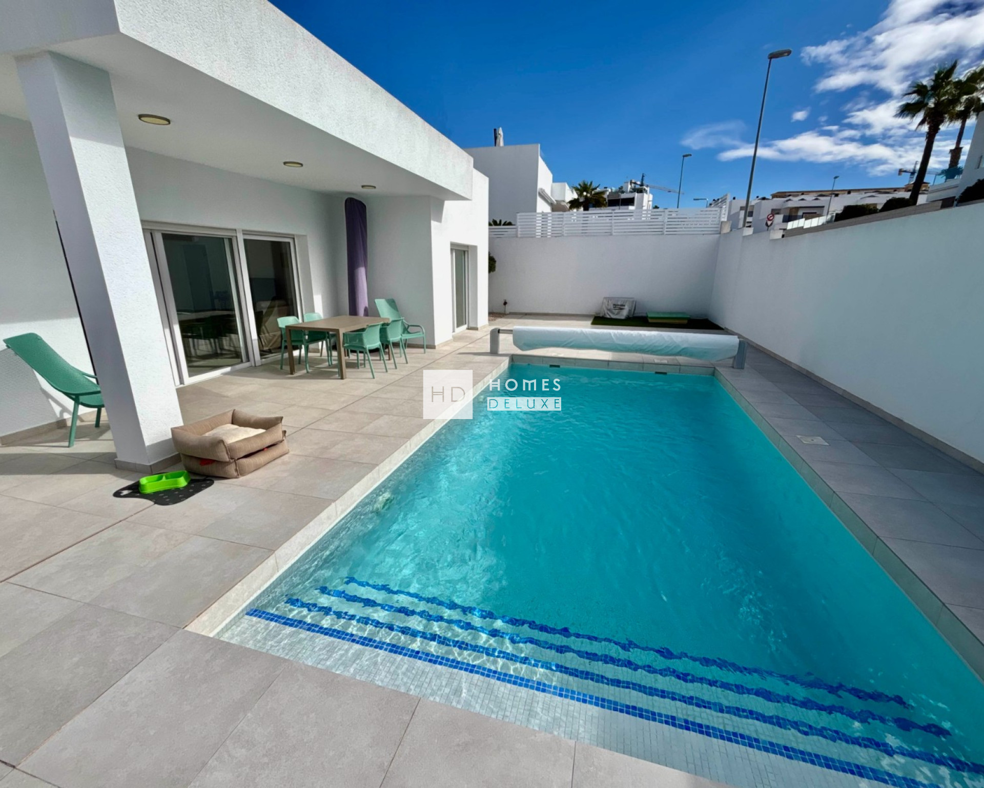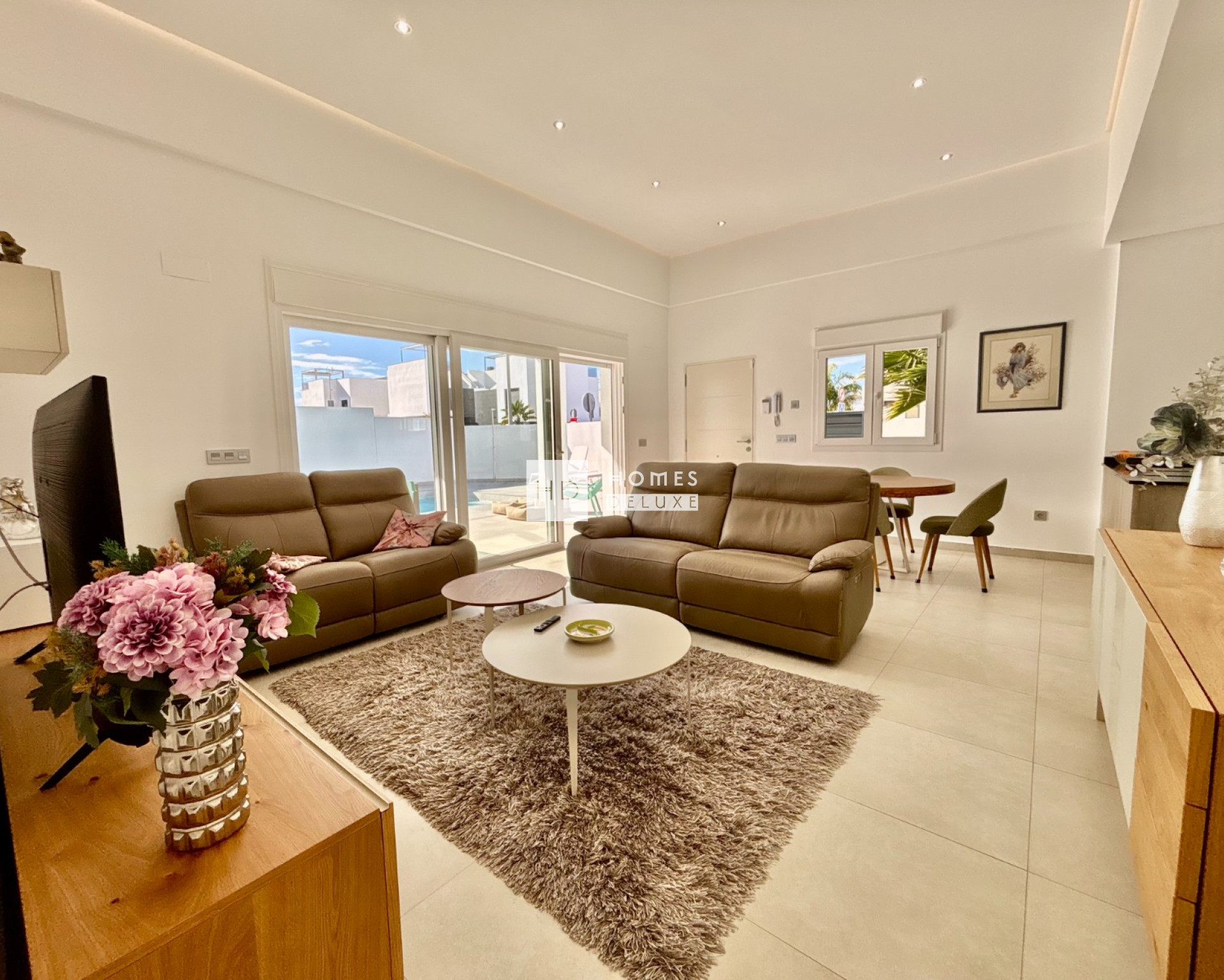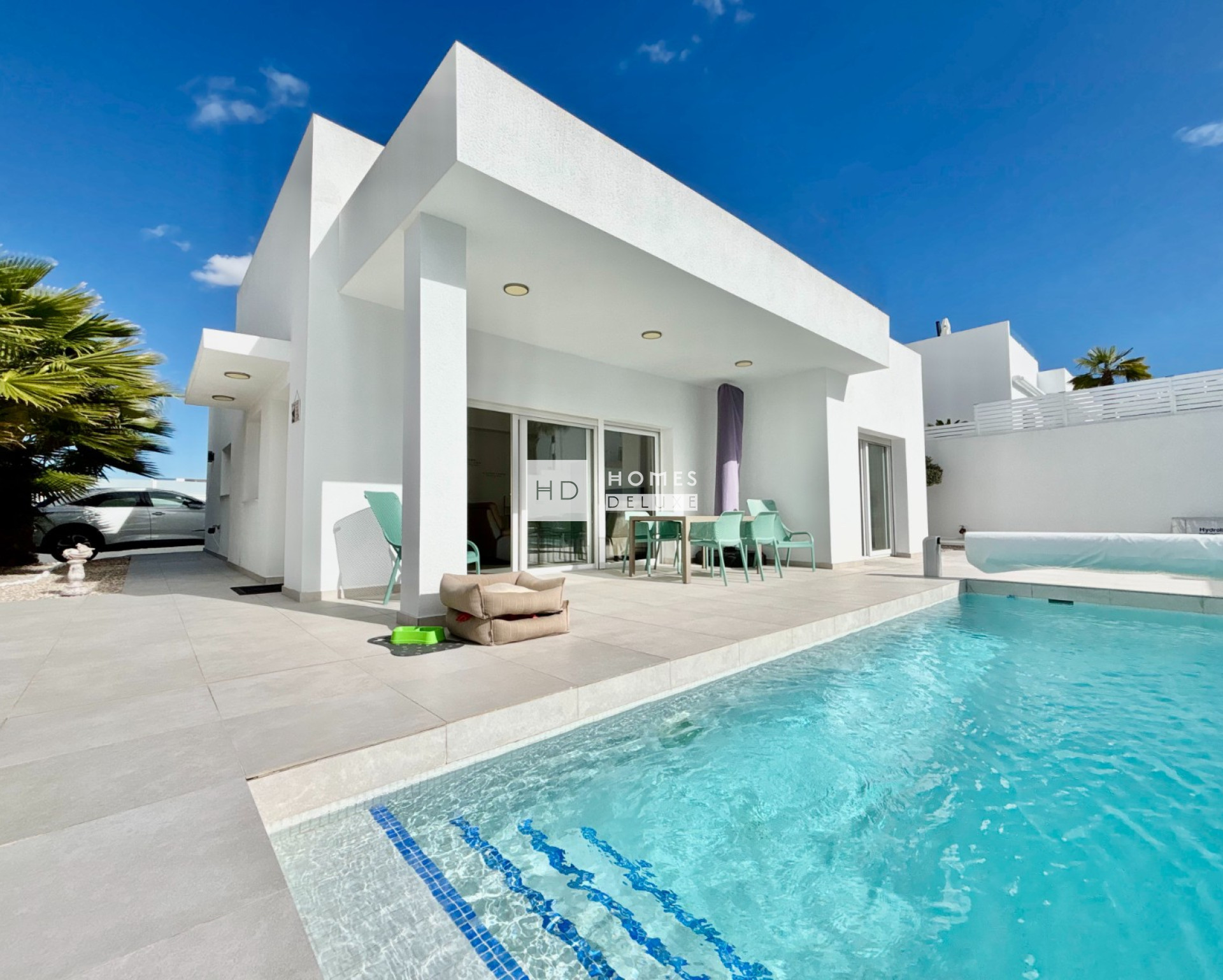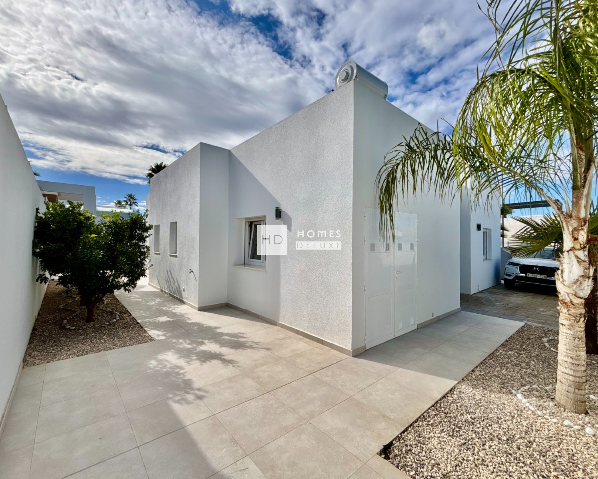 This almost-new, single-level detached villa on a corner plot offers a rare combination of modern design, generous outdoor space, and exceptional comfort. Positioned on a spacious corner plot of more than 400 square metres, the property provides both privacy and openness, making it an ideal home for year-round living, a stylish holiday retreat, or a high-quality investment in one of the Costa Blanca’s most desirable residential areas. From the moment you arrive, the villa’s contemporary architecture sets the tone. Cleanlines, large windows, and a harmonious blend of materials create a bright, elegant aesthetic that continues throughout the interior.