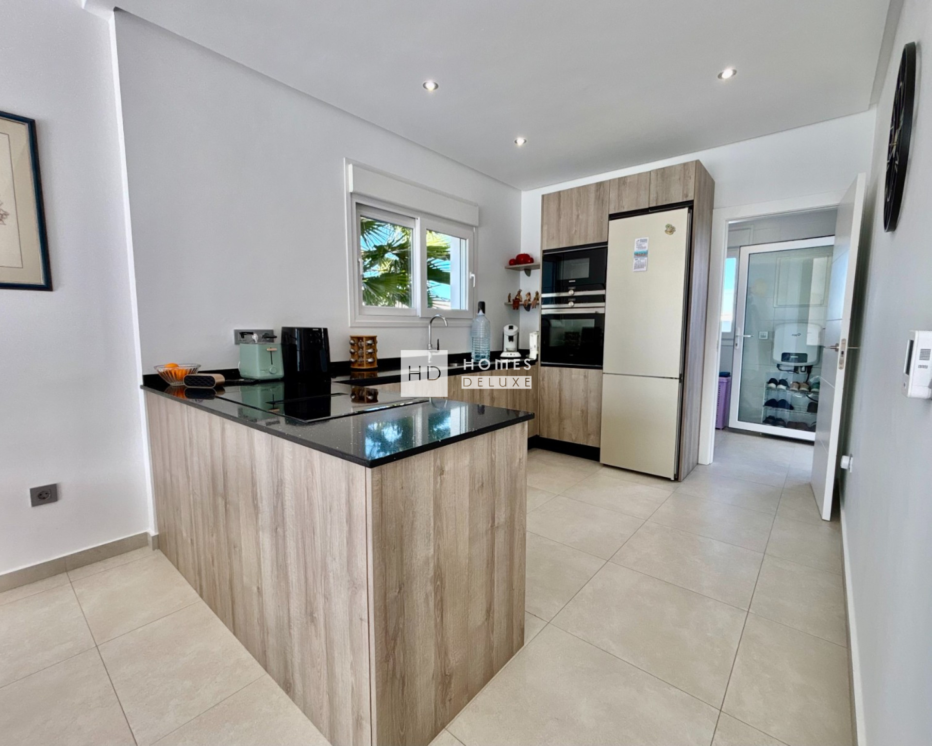 The home is thoughtfully designed on one level, ensuring easy access and a seamless flow between indoor and outdoor living spaces. This layout is especially appealing for those seeking comfort, convenience, and a modern Mediterranean lifestyle. The villa features three well-proportioned bedrooms, each offering ample natural light and built-in storage. The Primary suite stands out with its direct access to the garden and pool area, creating a peaceful retreat where you can wake up to the gentle Spanish sunlight. The two stylish bathrooms are finished with high-quality materials and contemporary fixtures, offering a sleek, spa-like feel that enhances the home’s overall sense of luxury. At the heart of the property is the open-plan living area, designed to maximise space and light. The modern kitchen, equipped with premium finishes and generous work surfaces, flows effortlessly into the dining and lounge areas. Large sliding doors open directly onto the terrace, allowing the interior to merge beautifully with the outdoor environment. Whether you’re entertaining guests, enjoying a quiet evening, or simply relaxing with family, this space adapts perfectly to every occasion.