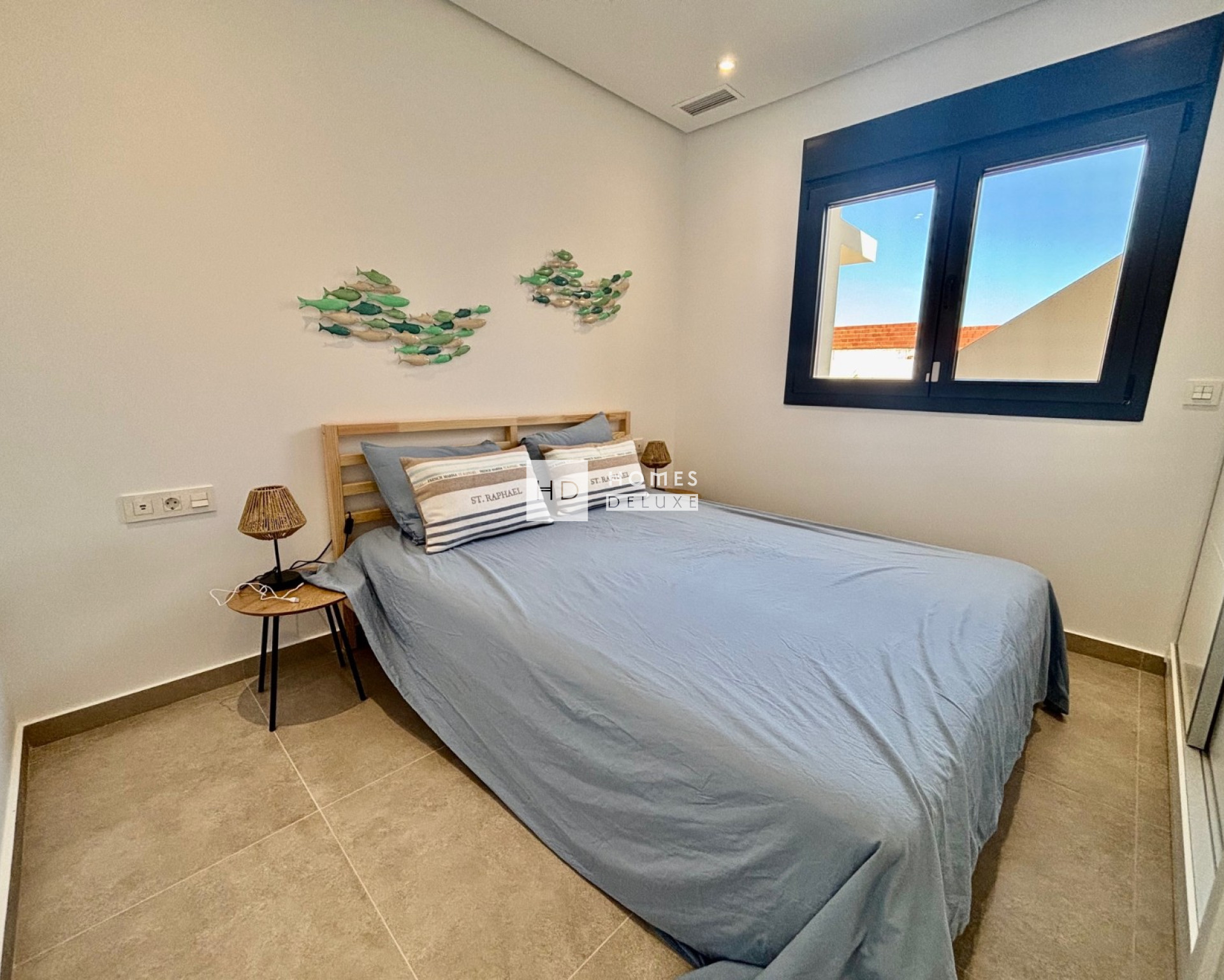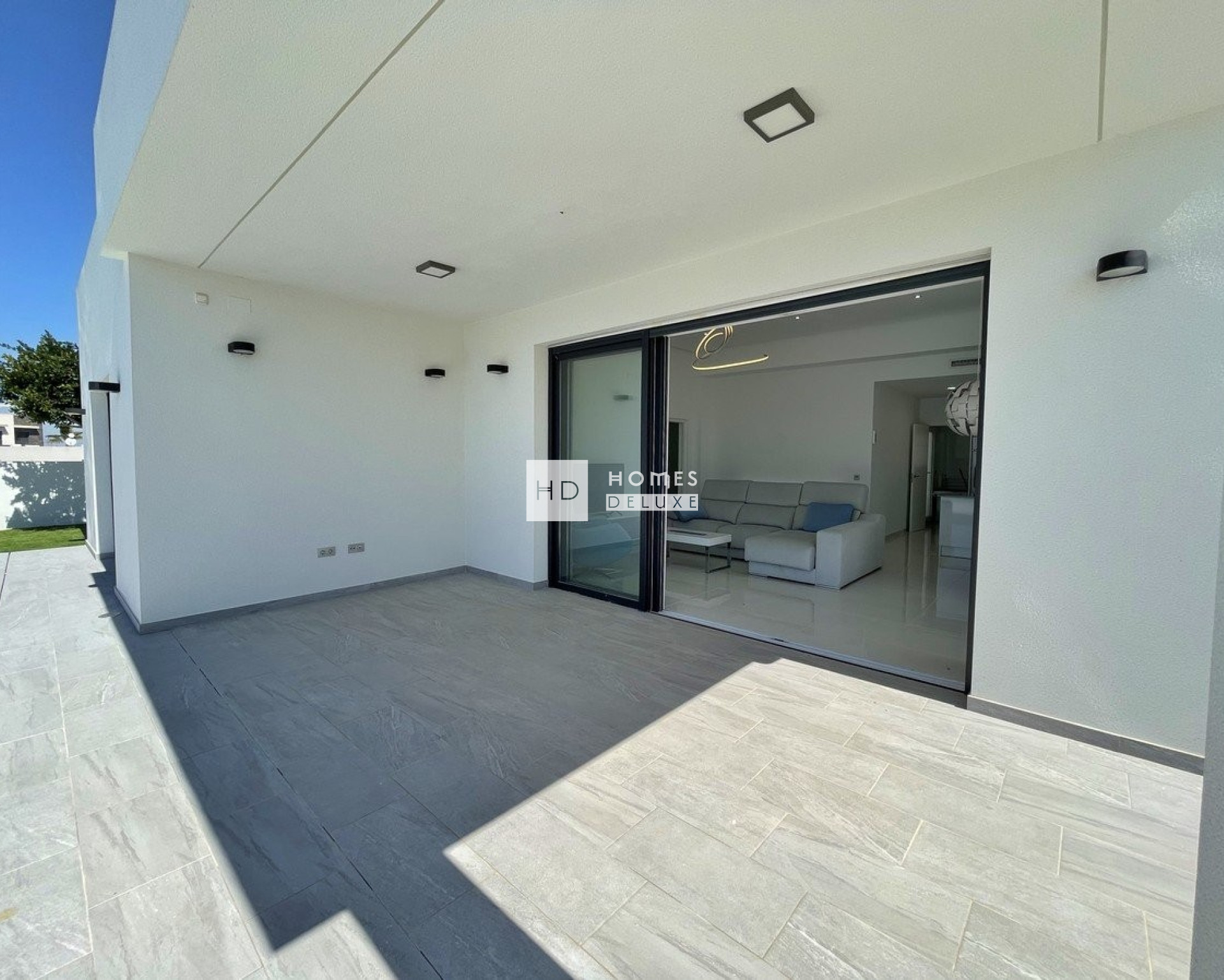 The interior layouts comprise of a bright and spacious open plan lounge and dining area with large windows opening onto the terrace, within the main living space is a modern American style kitchen with breakfast bar and there is a useful separate utility room. The large Primary bedroom is located at the front of the property with patio doors opening onto the main terrace, and includes an en-suite bathroom. There are a further two good sized double bedrooms and a separate guest bathroom. The interior features include modern carpentry throughout the house, a choice of floor tiles and wall tiles in the bathrooms and kitchen, and large high quality picture windows and patio doors from the company Schuco. The properties come including pre-installation for ducted air conditioning, a photovoltaic solar panel system, underfloor heating in the bathrooms, built in wardrobes in all bedrooms, electric blinds, landscaped garden including automatic watering system and finished with gravel, and private parking on the plot with motorised entrance gate.