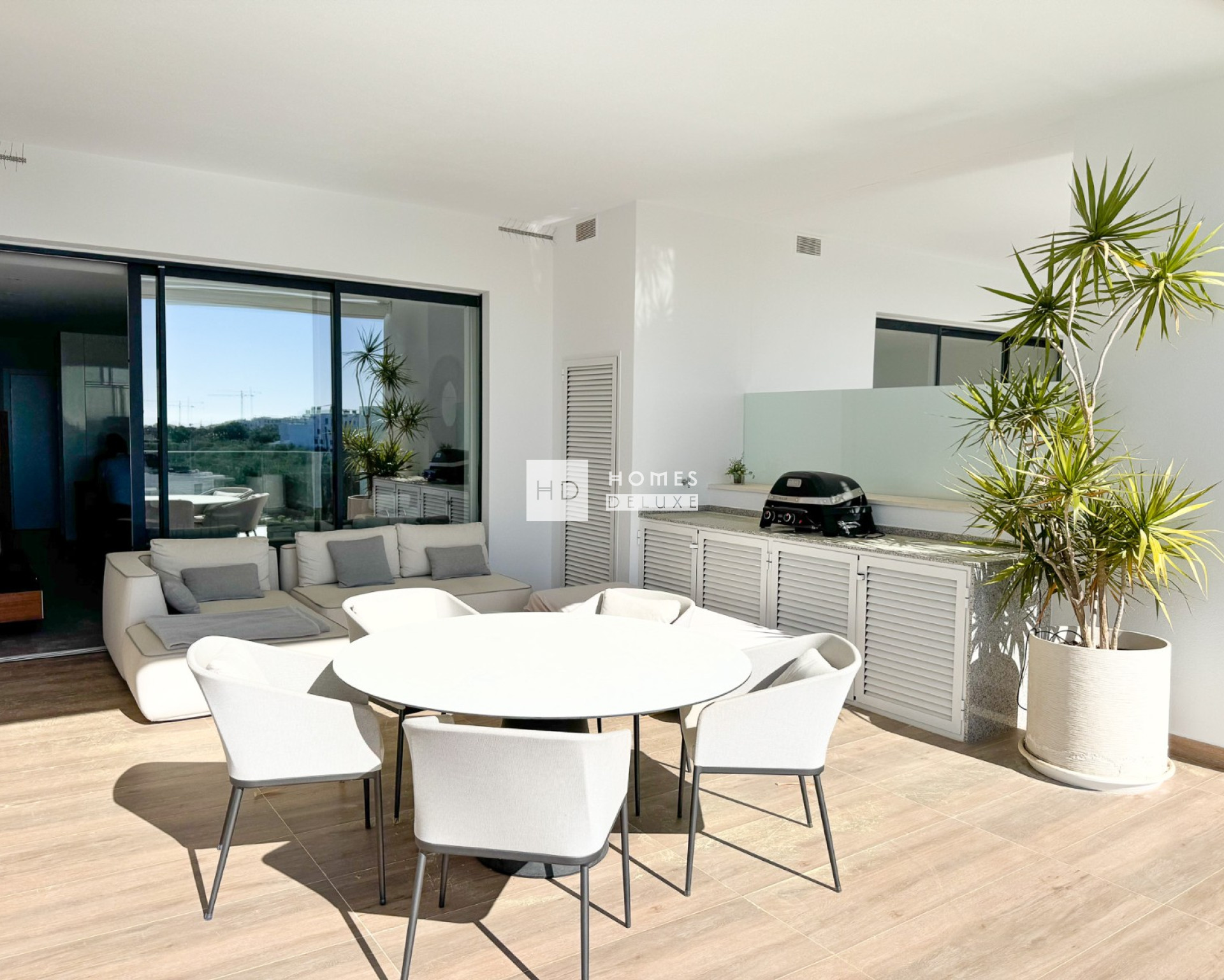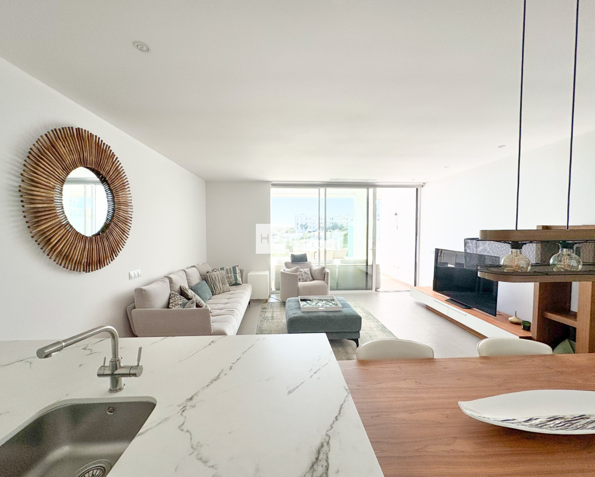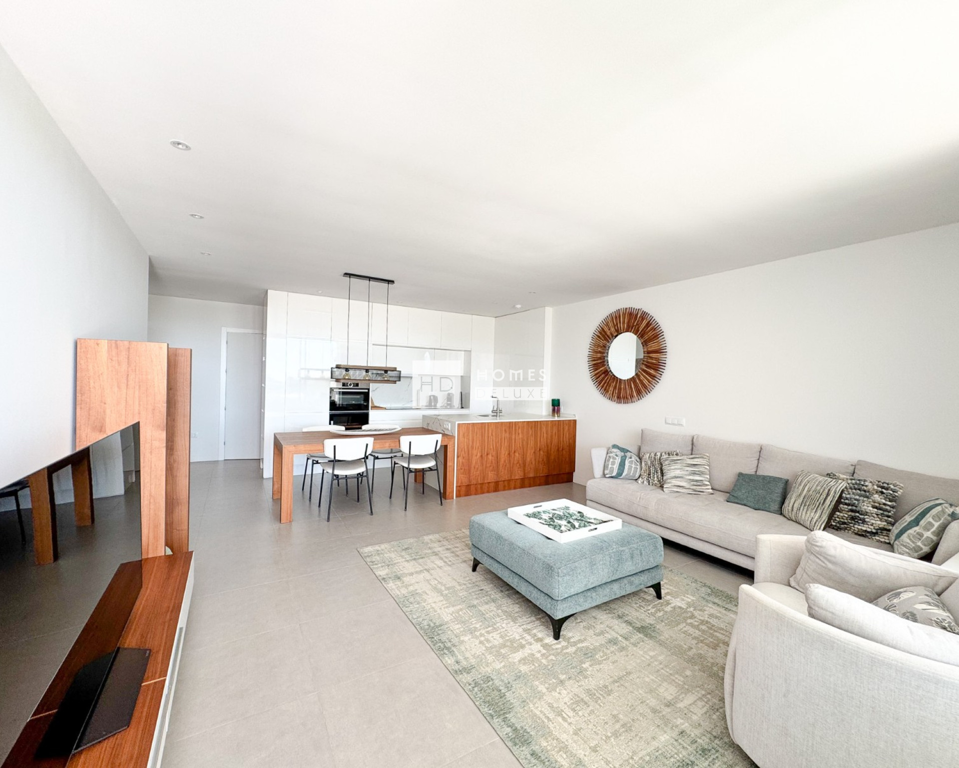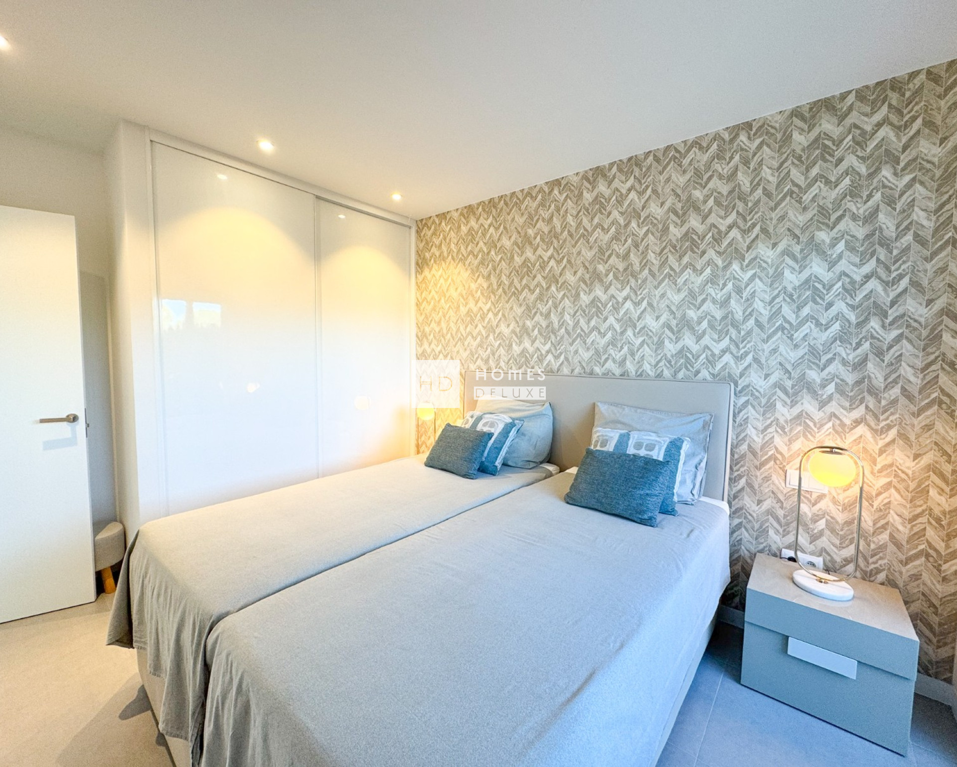 Modern ground floor apartment with 2 bedrooms 2 bathrooms and 2 terraces in community Naranjo, Las Colinas Golf. Spacious front terrace with nice views to the communal green area and the sea and private garden/back terrace for extra privacy and some shade in the summer. Underground garage space and storage as well as nicely designed communal gardens and pool. The building naranjo has recently been painted (2025) and is in very good condition. The property is being sold with all furniture.