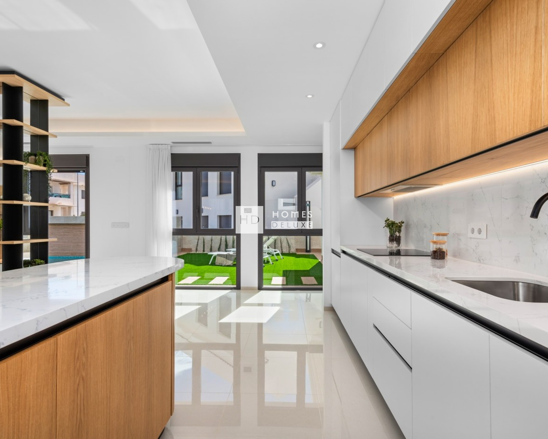The villa is situated on a 500m2 plot allowing you to enjoy a large private garden with an inviting 8 x 4m private swimming pool, as well as a covered terrace with feature arches giving full Mediterranean vibes. Extending the exterior space further is the extensive rooftop solarium of 150m2 to make the most of outdoor living in Spain.
