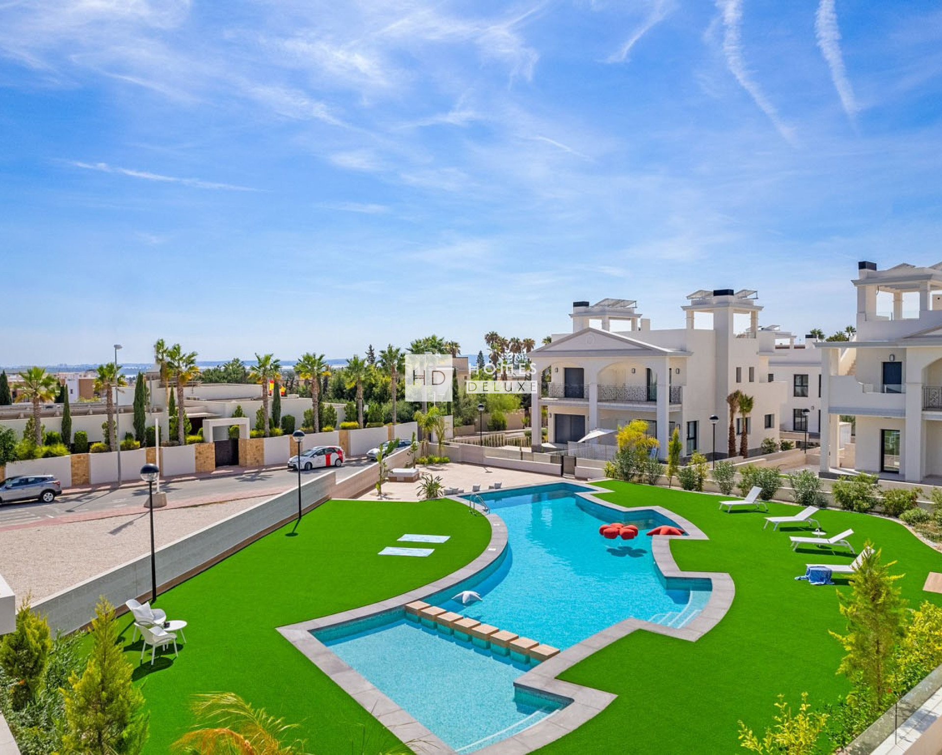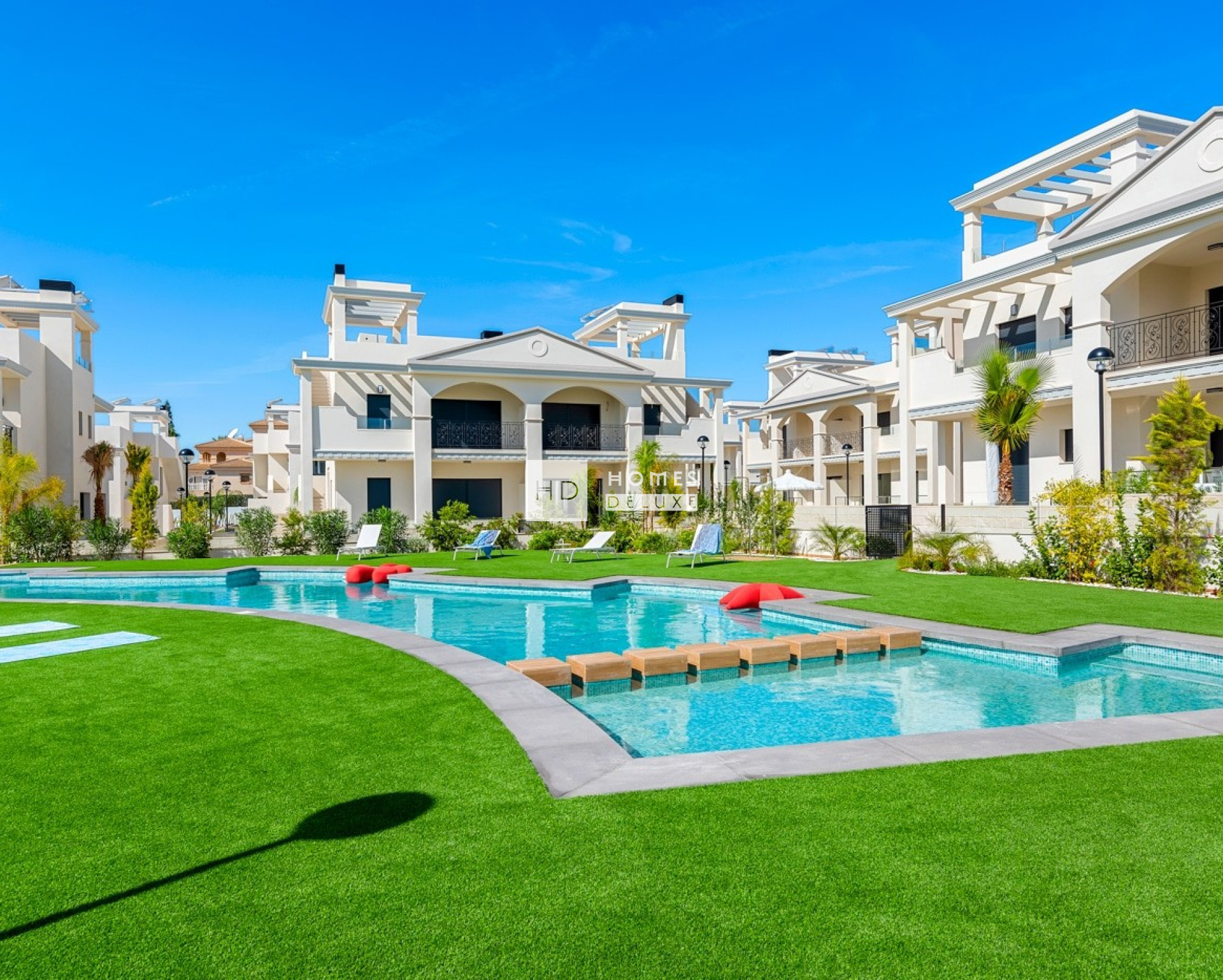 This stunning residential complex made up of different types of housing: apartments and semi-detached villas. The apartments have 2 bedrooms and 2 bathrooms and 3 bedrooms and 2 bathrooms models, as well as an open plan kitchen and living-dining room. You can choose the option of ground floor with beautiful private garden or top floor with spacious rooftop solarium. The semi-detached villas have 3 bedrooms and 3 bathrooms, open plan kitchen, large lounge dining room, solarium and private garden. The residents have the enjoyment of lovely communal areas which are perfect to relax and unwind, with a large communal swimming pool and spacious green areas.