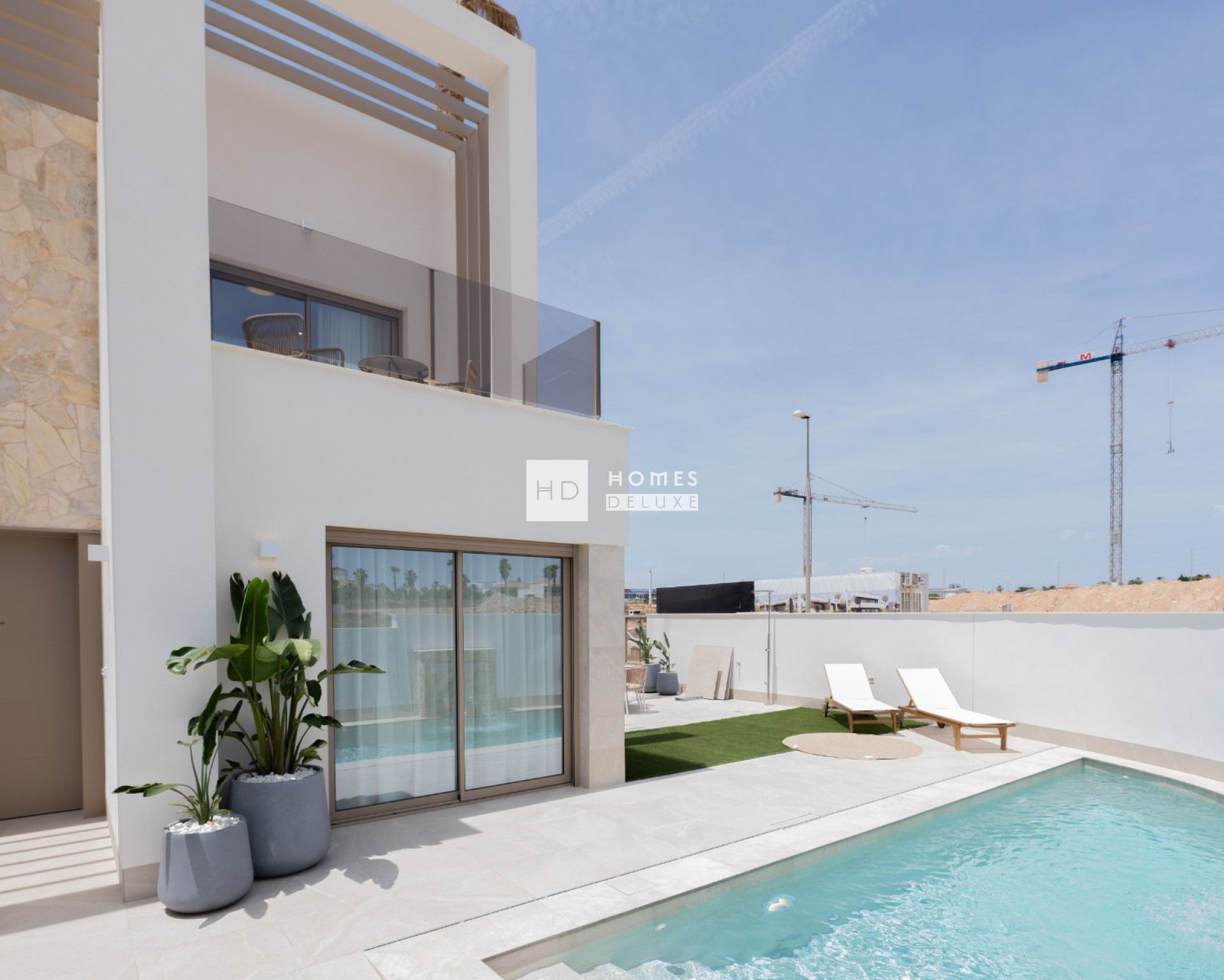 A brand new residential offering 37 contemporary style quad houses with 3 bedrooms 2 or 3 bathrooms and private swimming pool located in La Serena Golf - Los Alcazares (Murcia), one of the most desirable environments in the region. Its strategic location offers tranquility, quality of life and excellent connections to Alicante and Murcia airports, making it ideal year-round living or as a second residence.