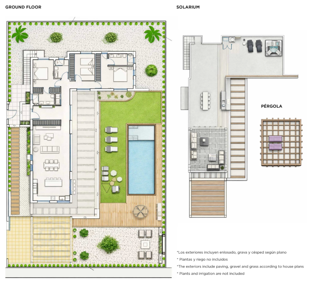 The exterior has been designed as a true oasis of privacy. A large plot surrounds the villa, featuring a beautiful garden, a large private swimming pool, and multiple outdoor living areas. Its covered terrace provides the perfect setting for relaxing afternoons, while the outdoor dining area and built-in barbecue invite you to enjoy long Mediterranean evenings with family and friends. One of the highlights of this villa is its stunning rooftop solarium with a pergola, an elevated space ideal for creating a relaxation area, installing a jacuzzi, or simply enjoying open views and sunsets in complete privacy. This villa represents the perfect balance between design, functionality, and lifestyle.