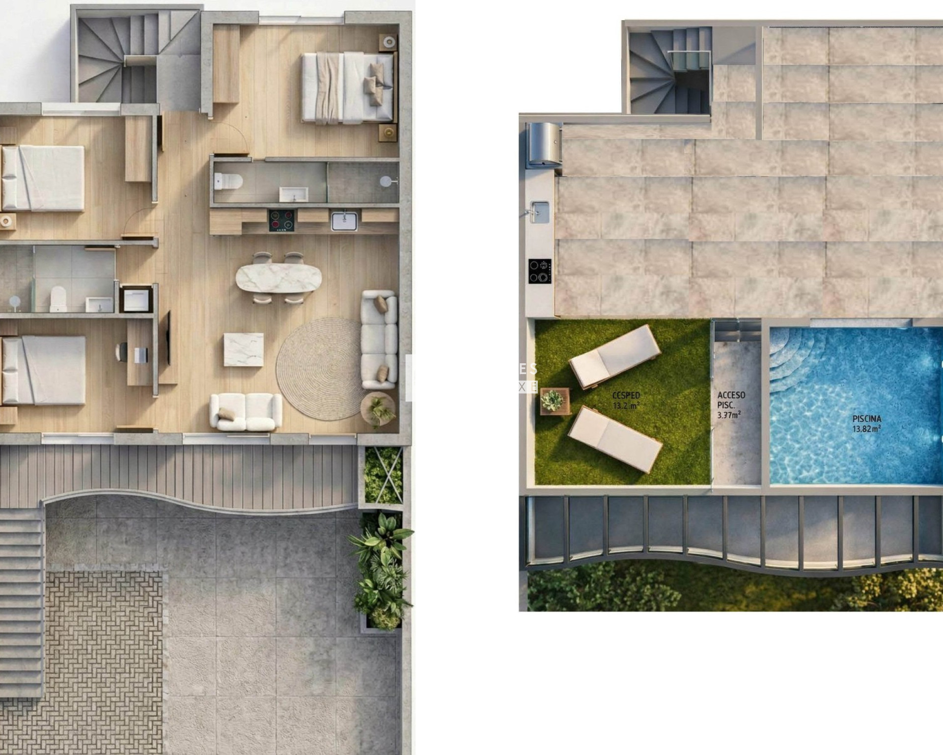 The project is a limited boutique development of just six residences, offering modern architecture, a wonderful South facing orientation, all homes including a private swimming pool, and an unbeatable location in Pilar de la Horadada. Each home offers 3 bedrooms, spacious open-plan living areas, and a seamless connection between indoor living and outdoor terrace spaces, all designed for modern Mediterranean living. There are the choice of the following apartments: