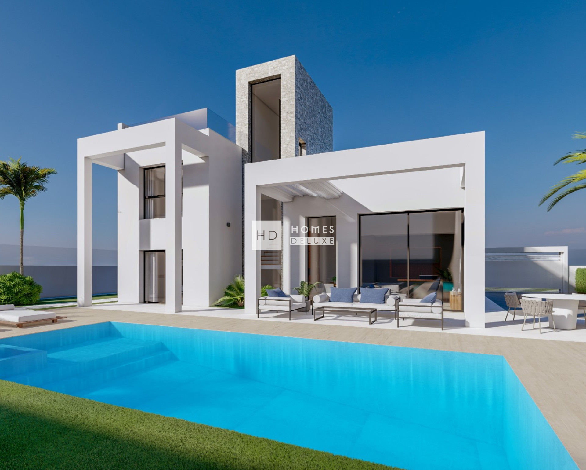 The villa is in a residential complex of 28 luxury villas in a privileged location next to the Mediterranean Sea with unparalleled views. The resort includes great facilities with a beautiful communal swimming pool, padel and tennis courts, and large green areas for walking and outdoor activities, all for the residents enjoyment.