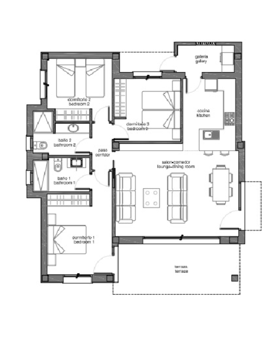 A brand new project consisting of 7 detached villas with 3 bedrooms 2 bathrooms and private swimming pool located in Ciudad Quesada (Alicante), less than 10 minutes walk from the main street of this bustling and very popular Costa Blanca town. Here, you can find all the services you would need for day to day living and fantastic holidays, including a huge choice of quality restaurants, bars, supermarkets, entertainment and other services. It is only 10 minutes drive from the beautiful beaches of Guardamar del Segura, and only 30 minutes from Alicante airport and very close to cities such as Torrevieja.
